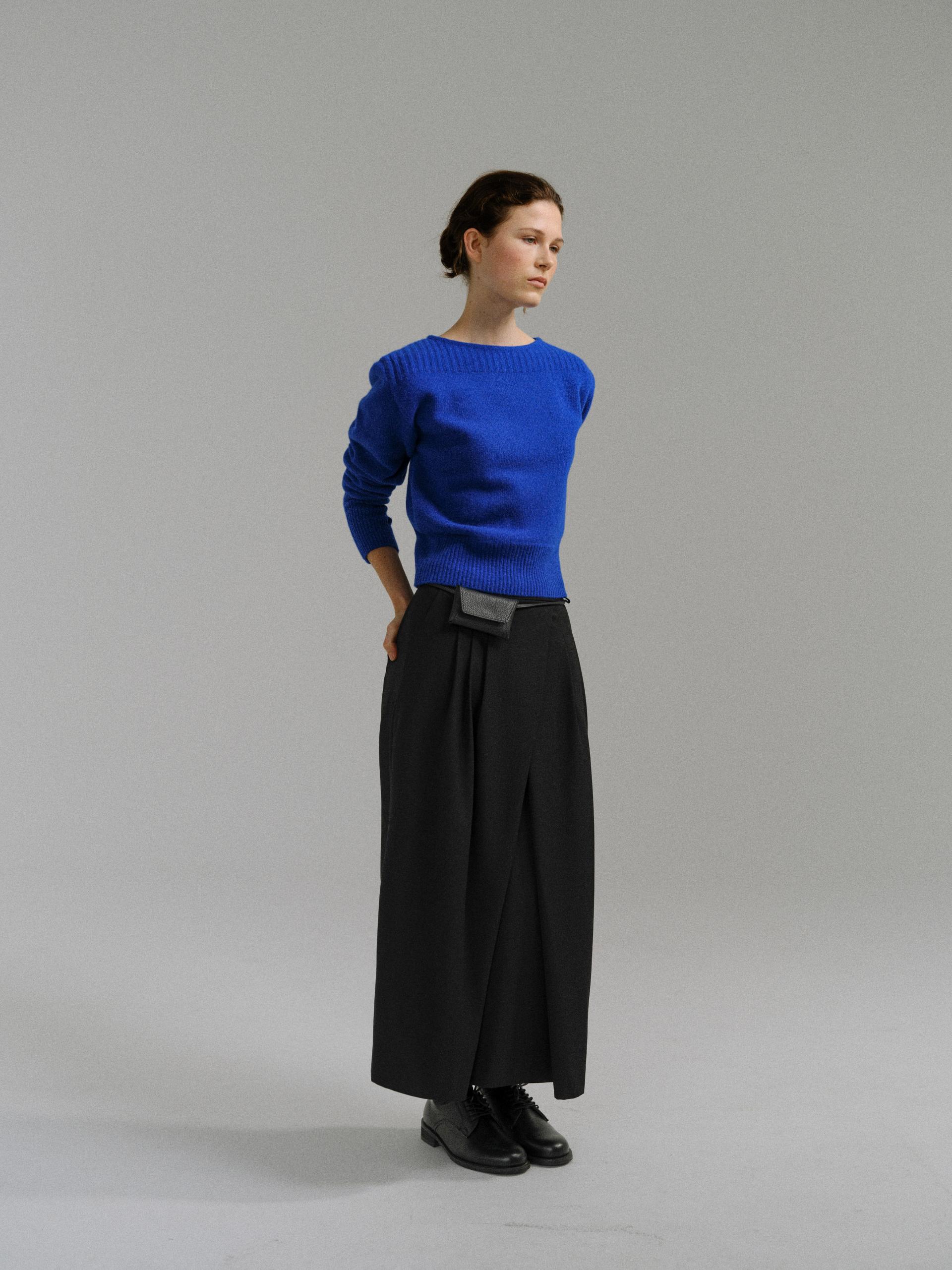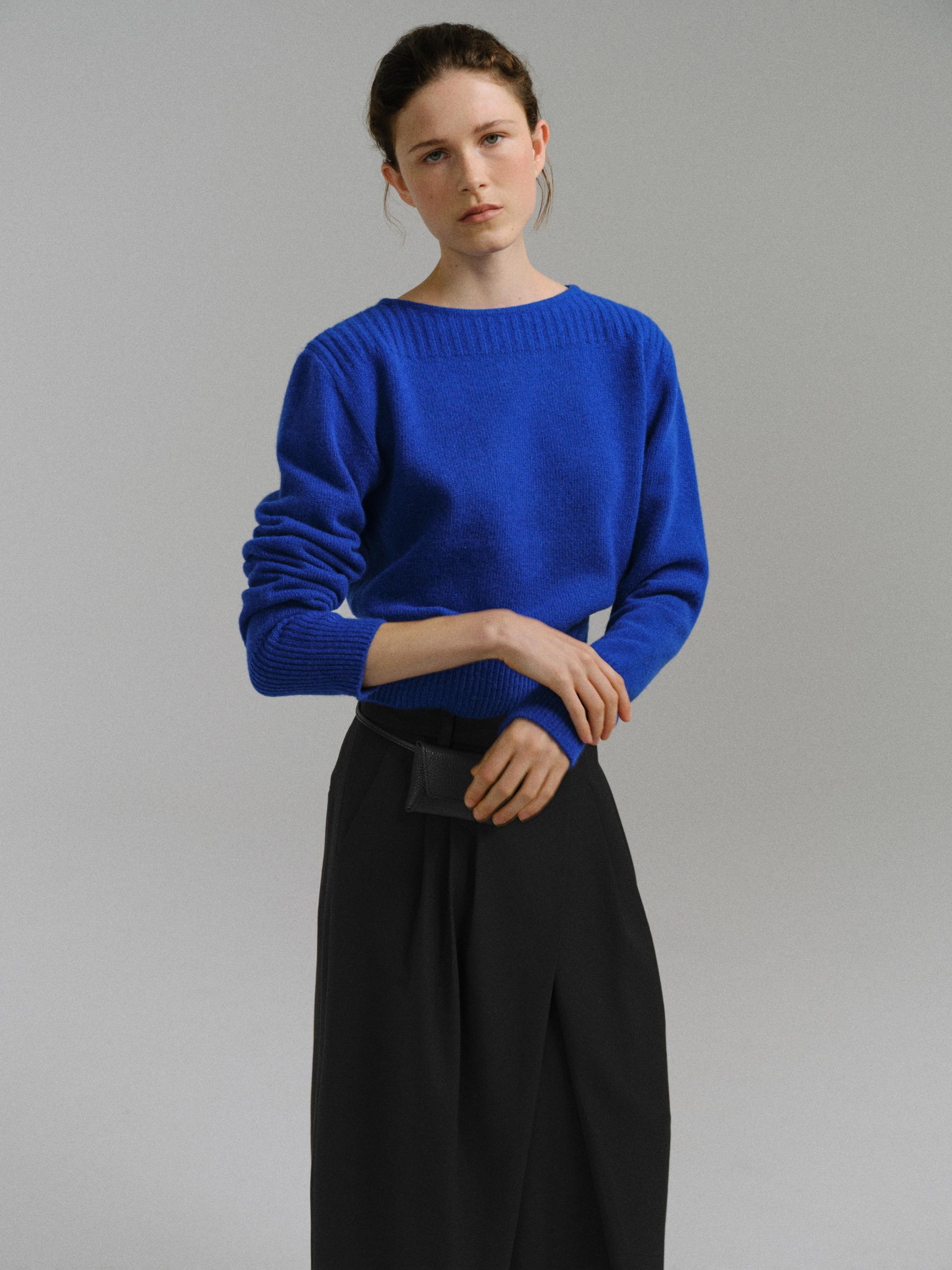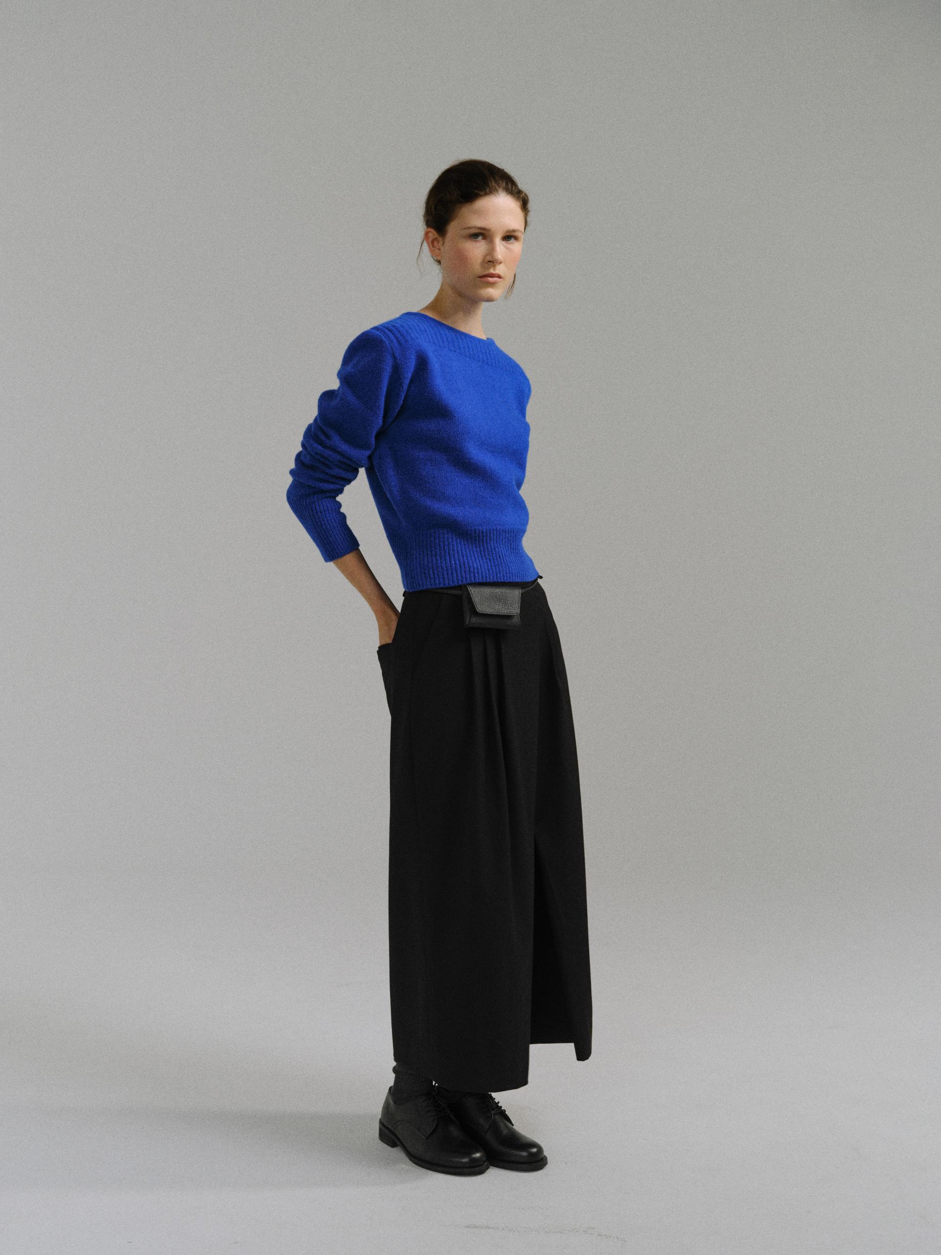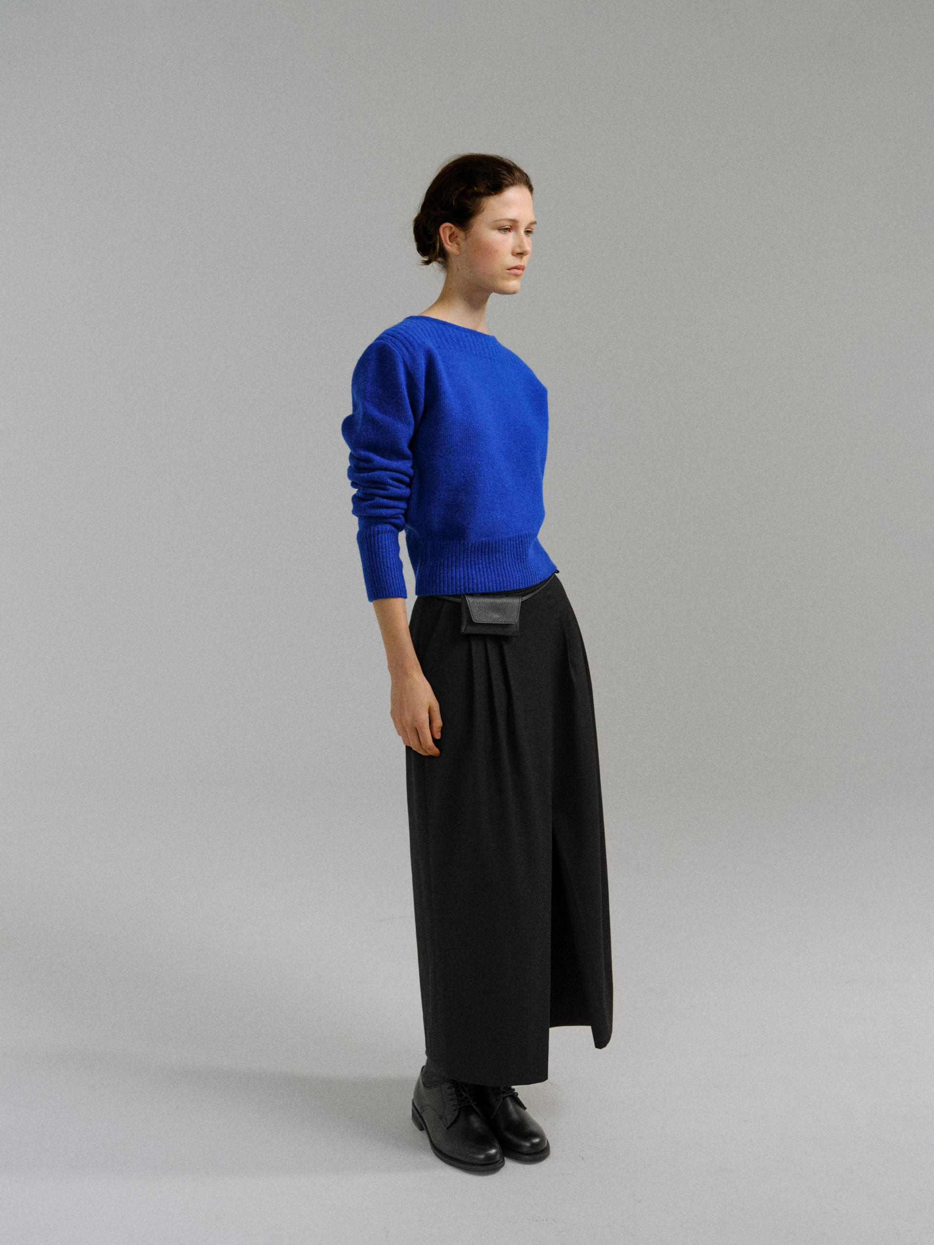 - 더블 파이핑 편직한 보트넥라인은 미니멀한 무드를 드러내며 제품의 완성도를 높여줍니다.