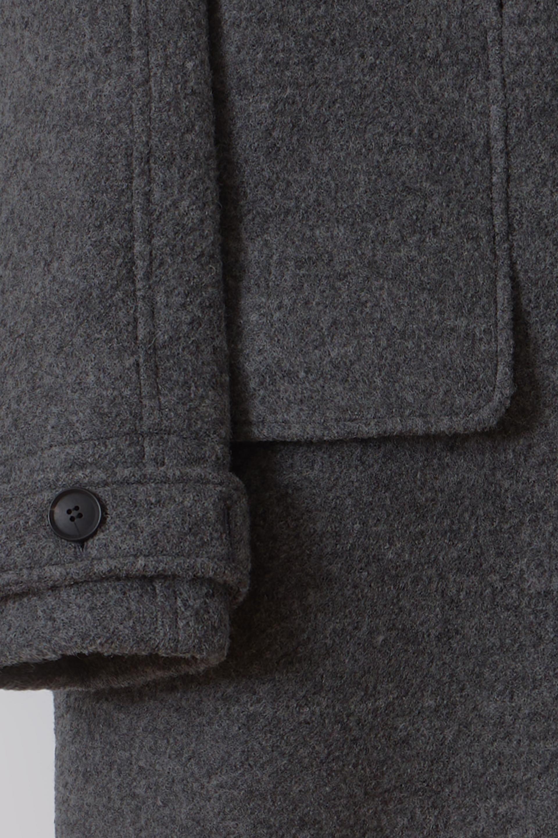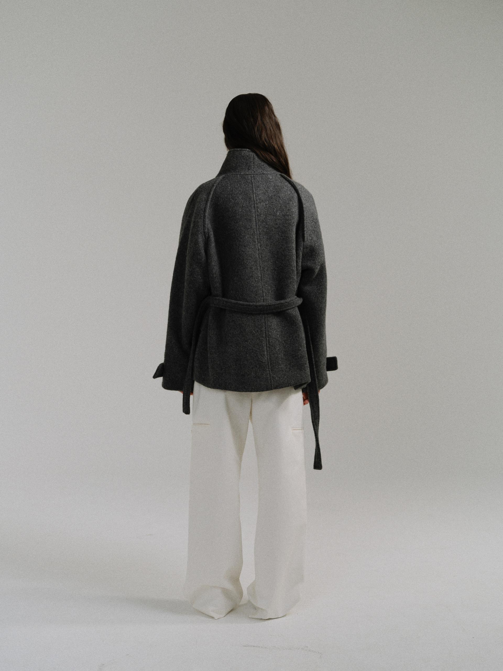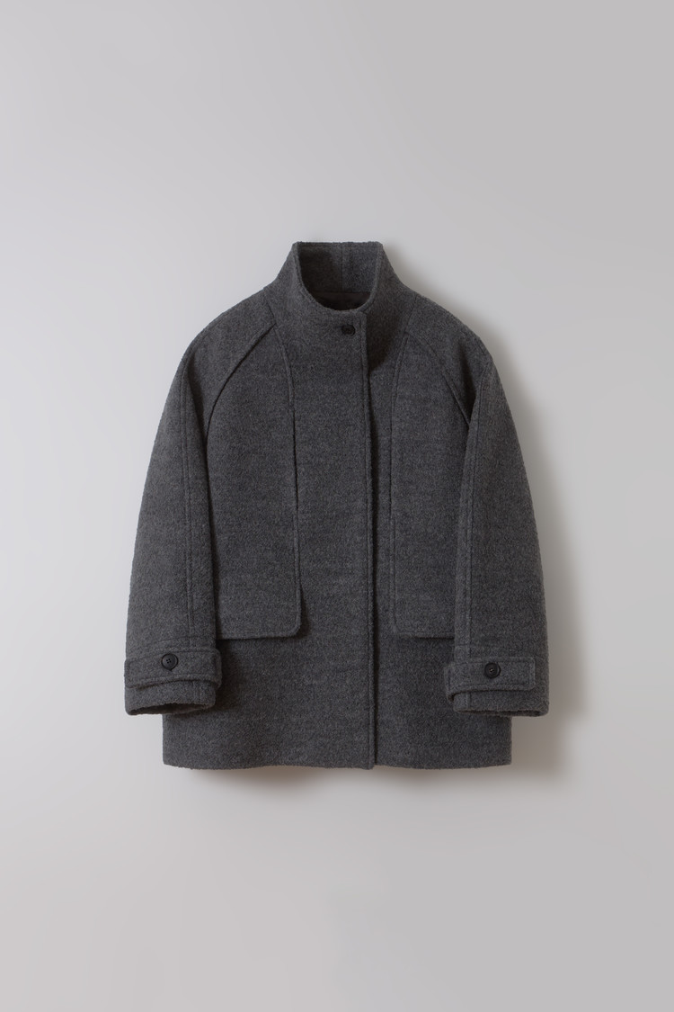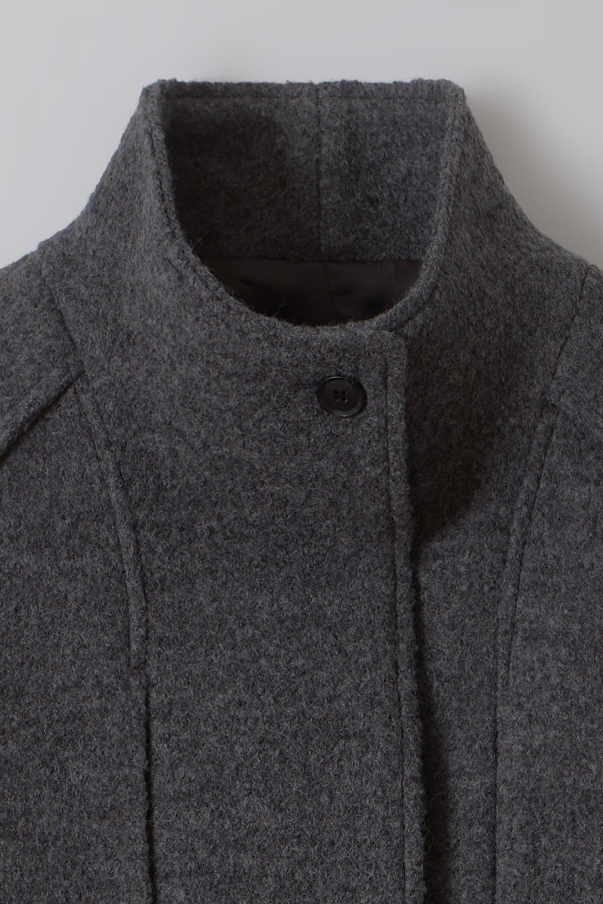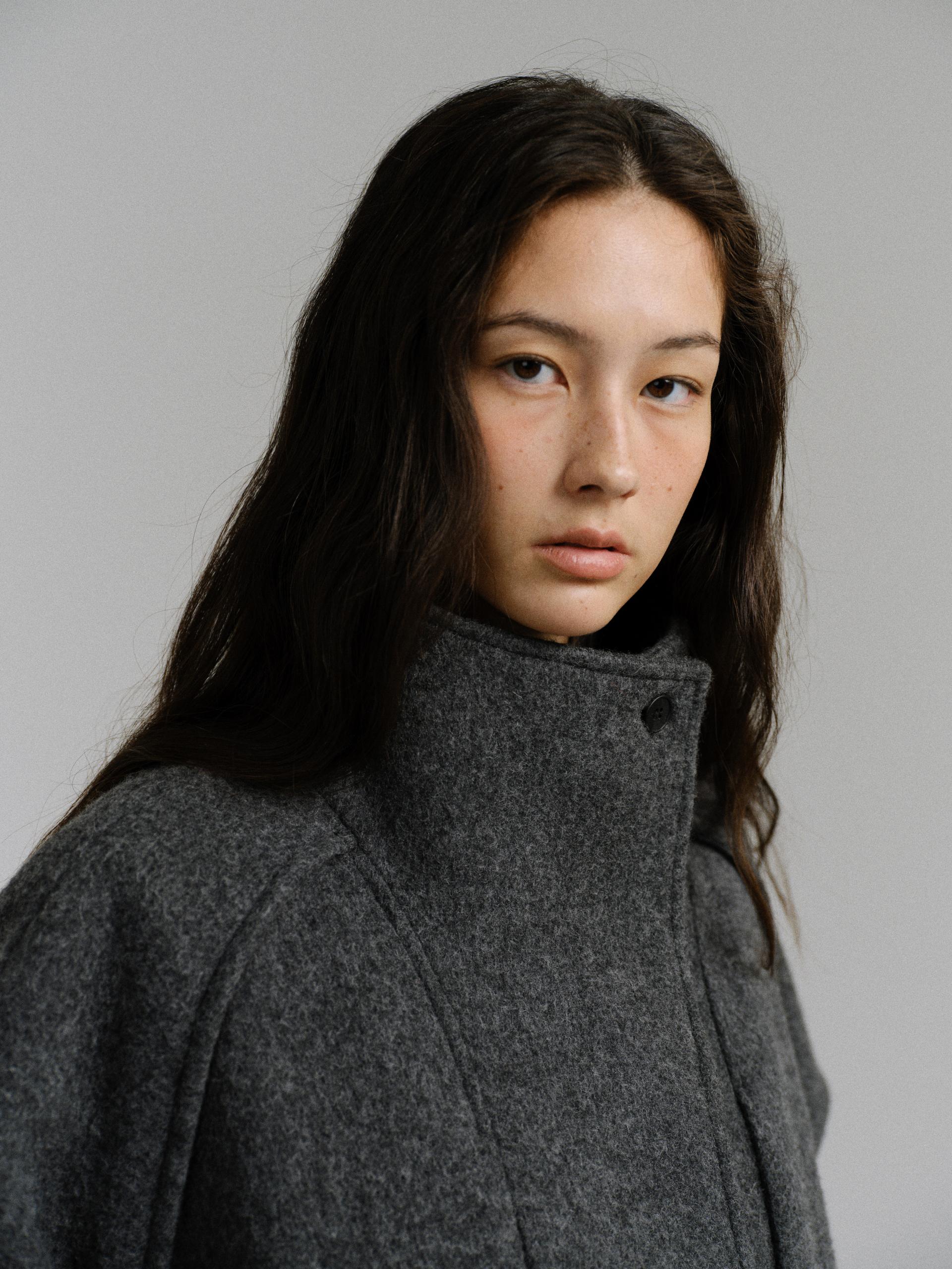 -울 원단 특유의 헤어리한 텍스처가 돋보이며, 차분하게 톤 다운된 컬러가 특징입니다.