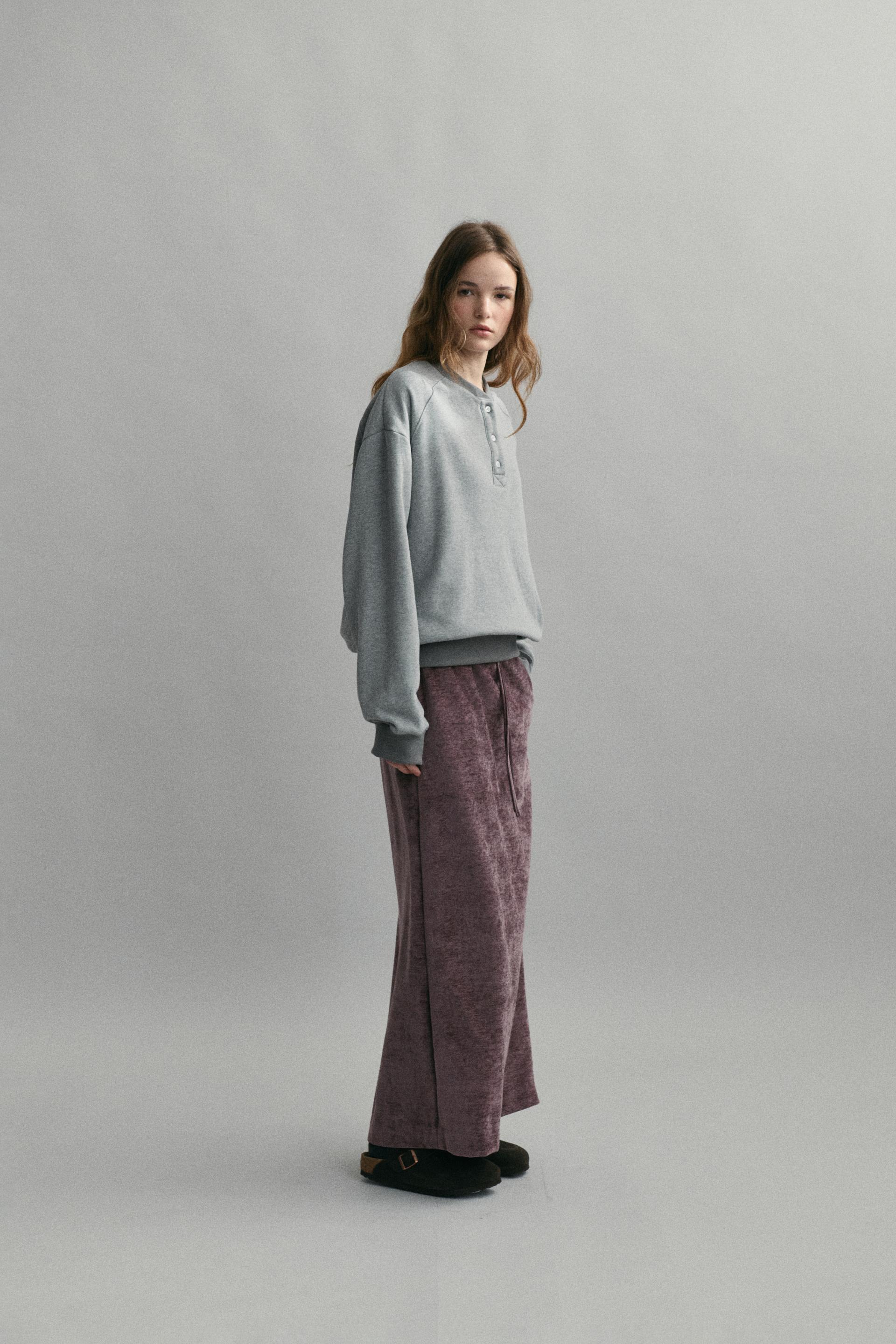 - 신축성 있는 벨루어 원단으로 움직임이 편안하며, 부드럽고 포근한 터치감이 느껴집니다.