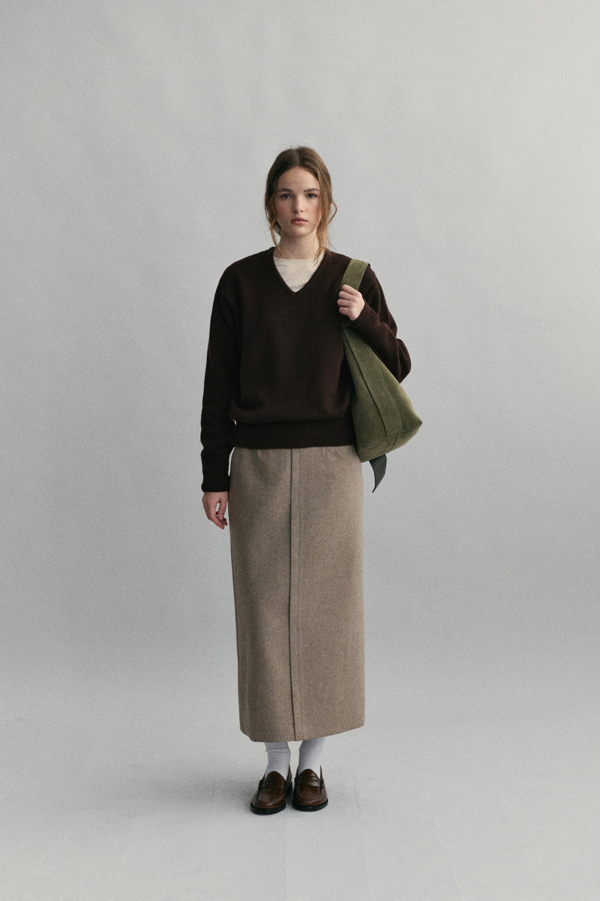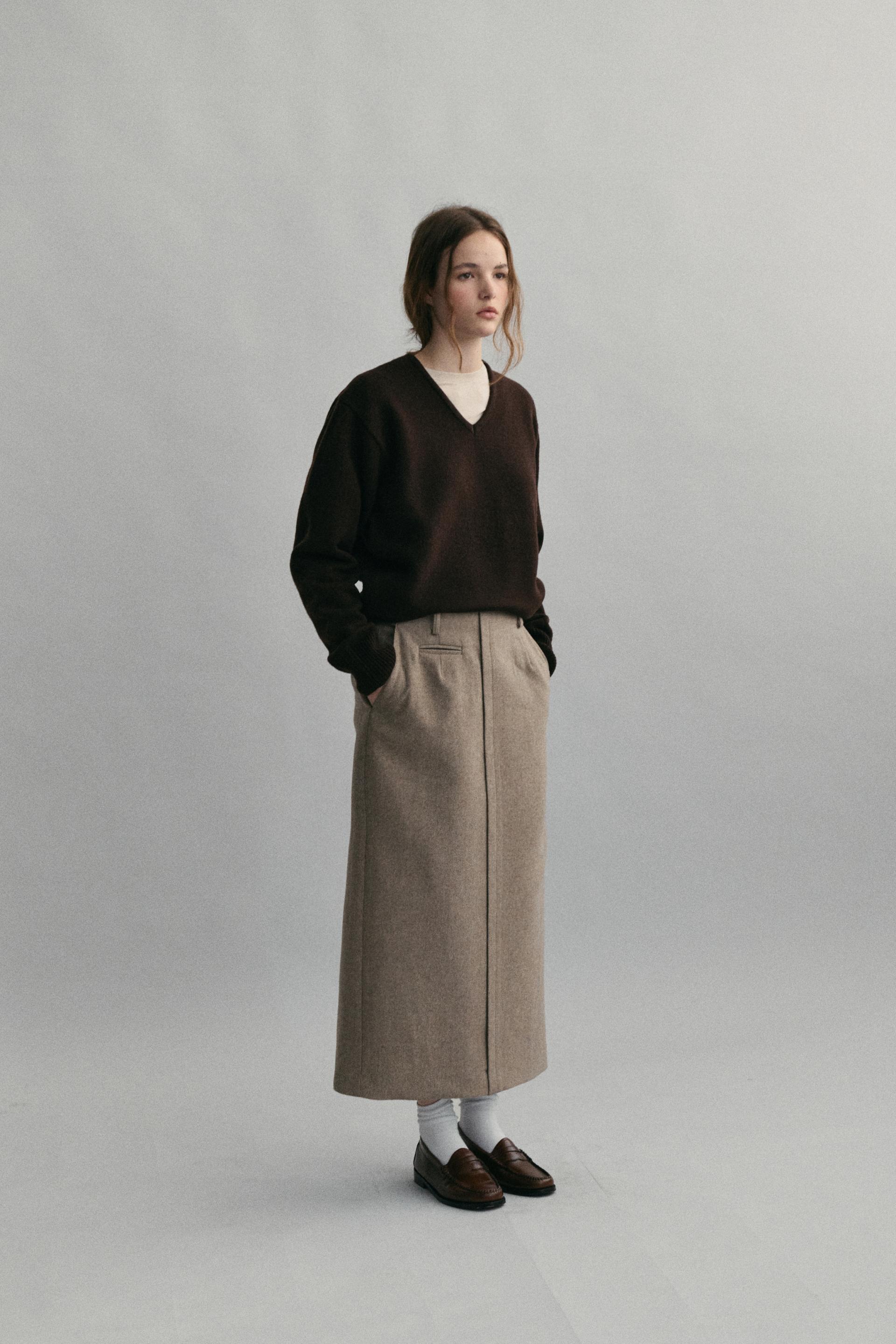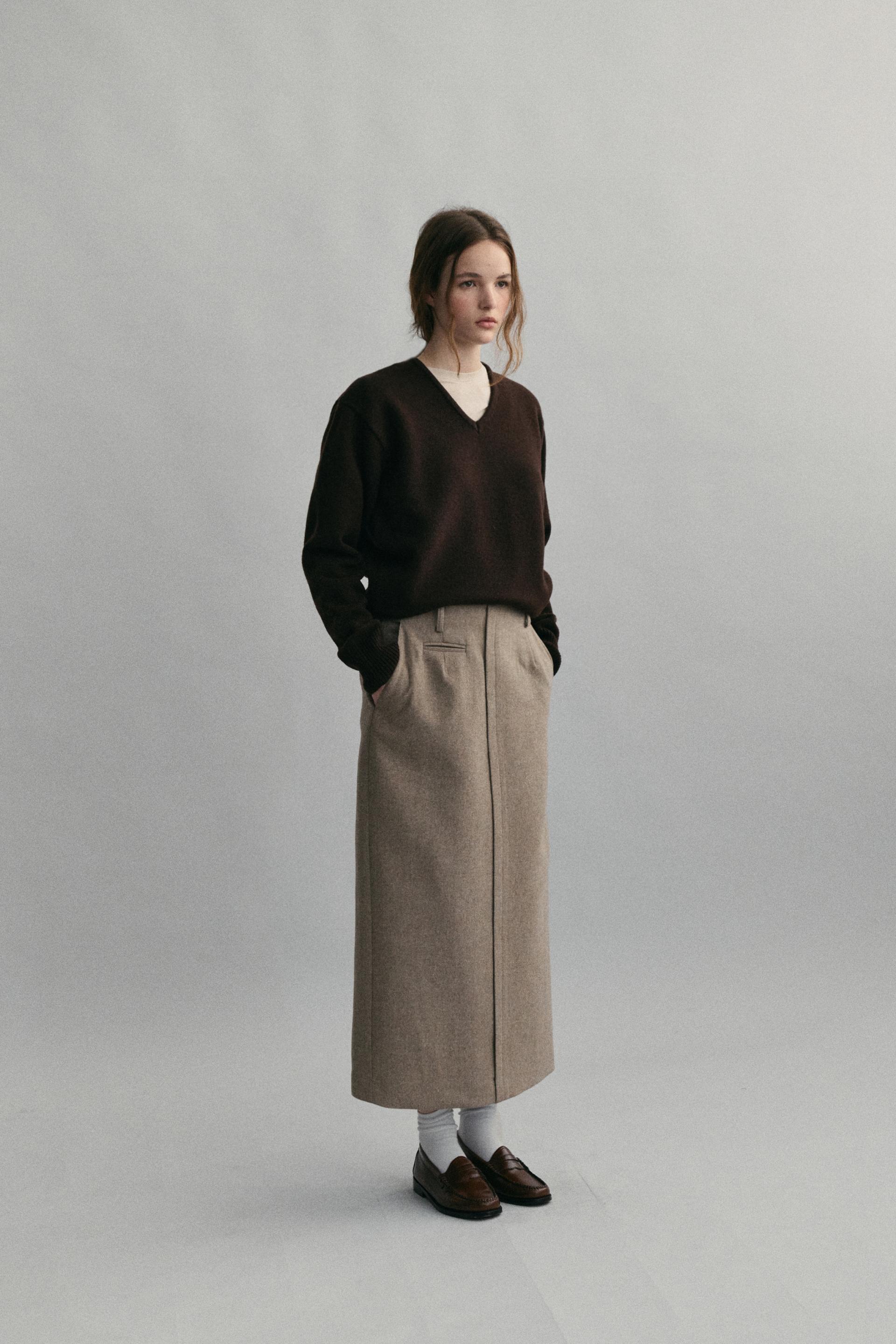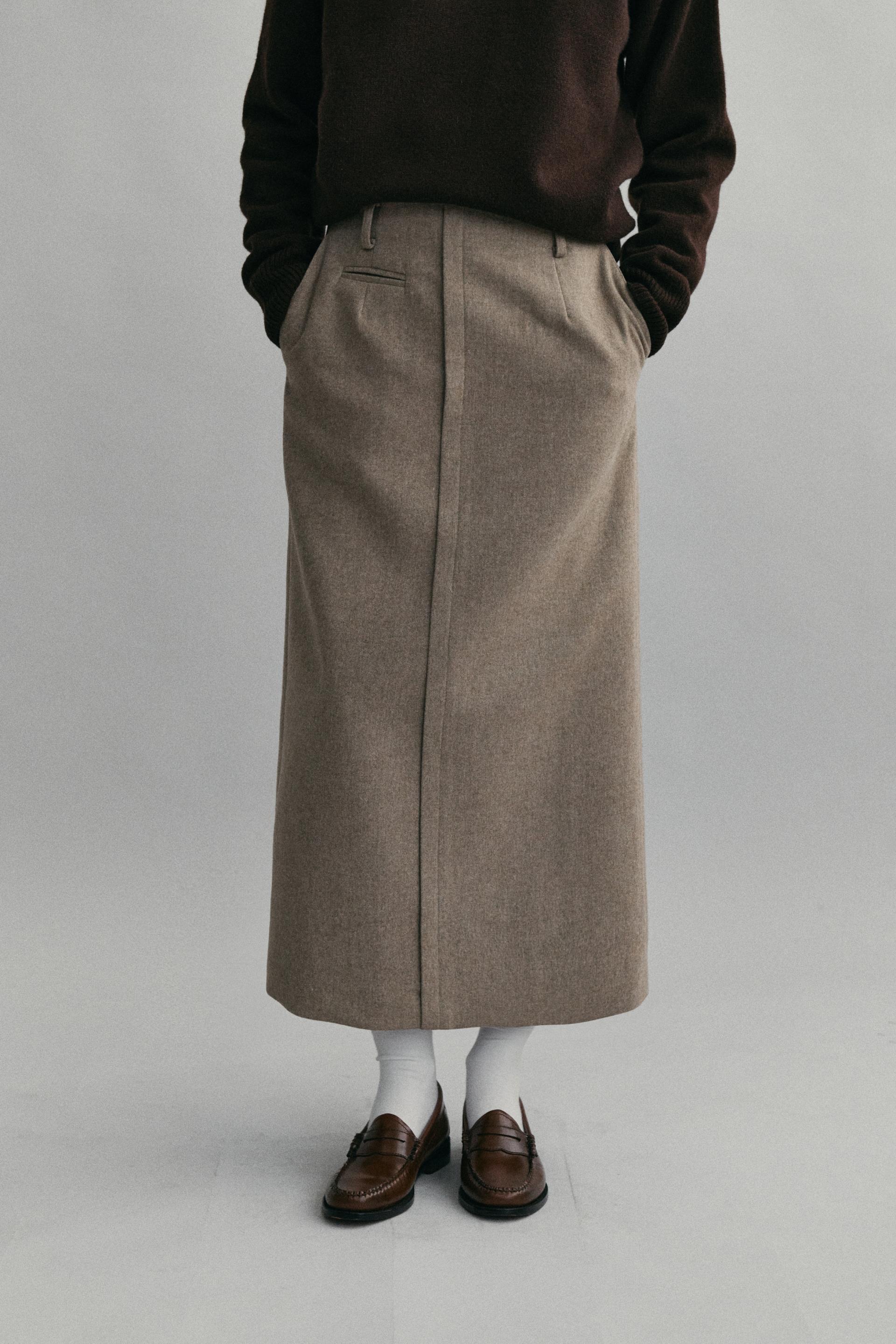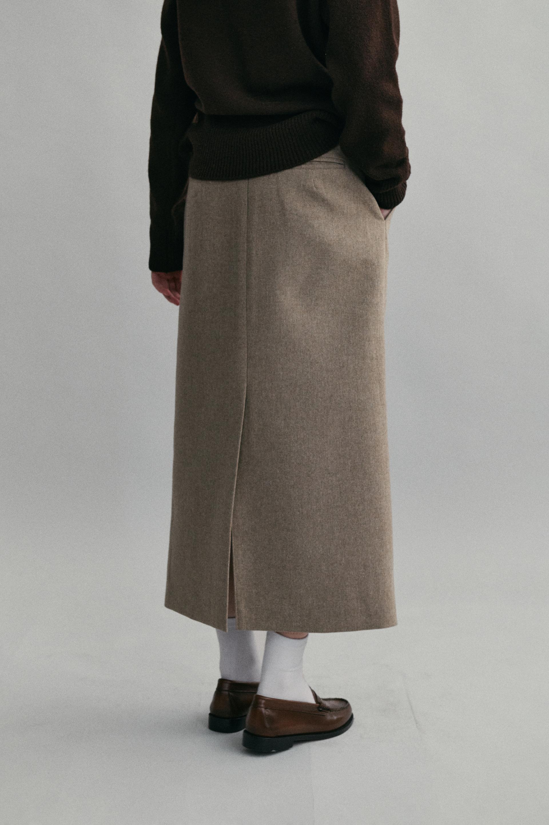 - 아우브아워의 시그니처 아이템인 lip pencil skirt 의 겨울 버전으로 기획한 제품입니다.