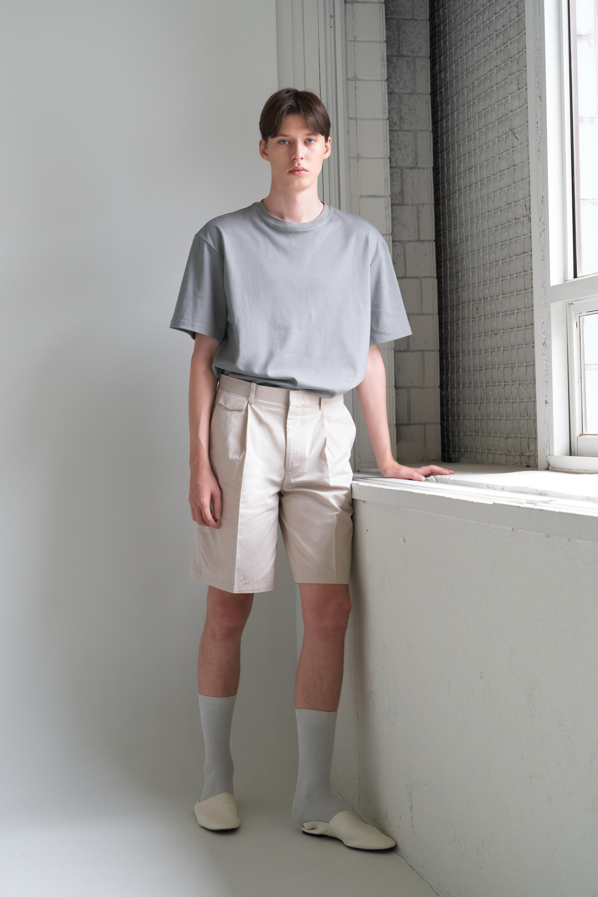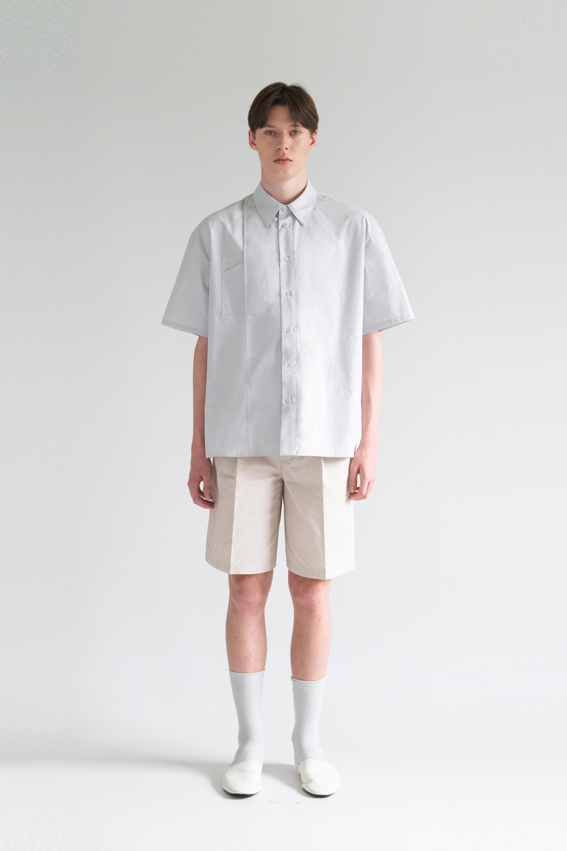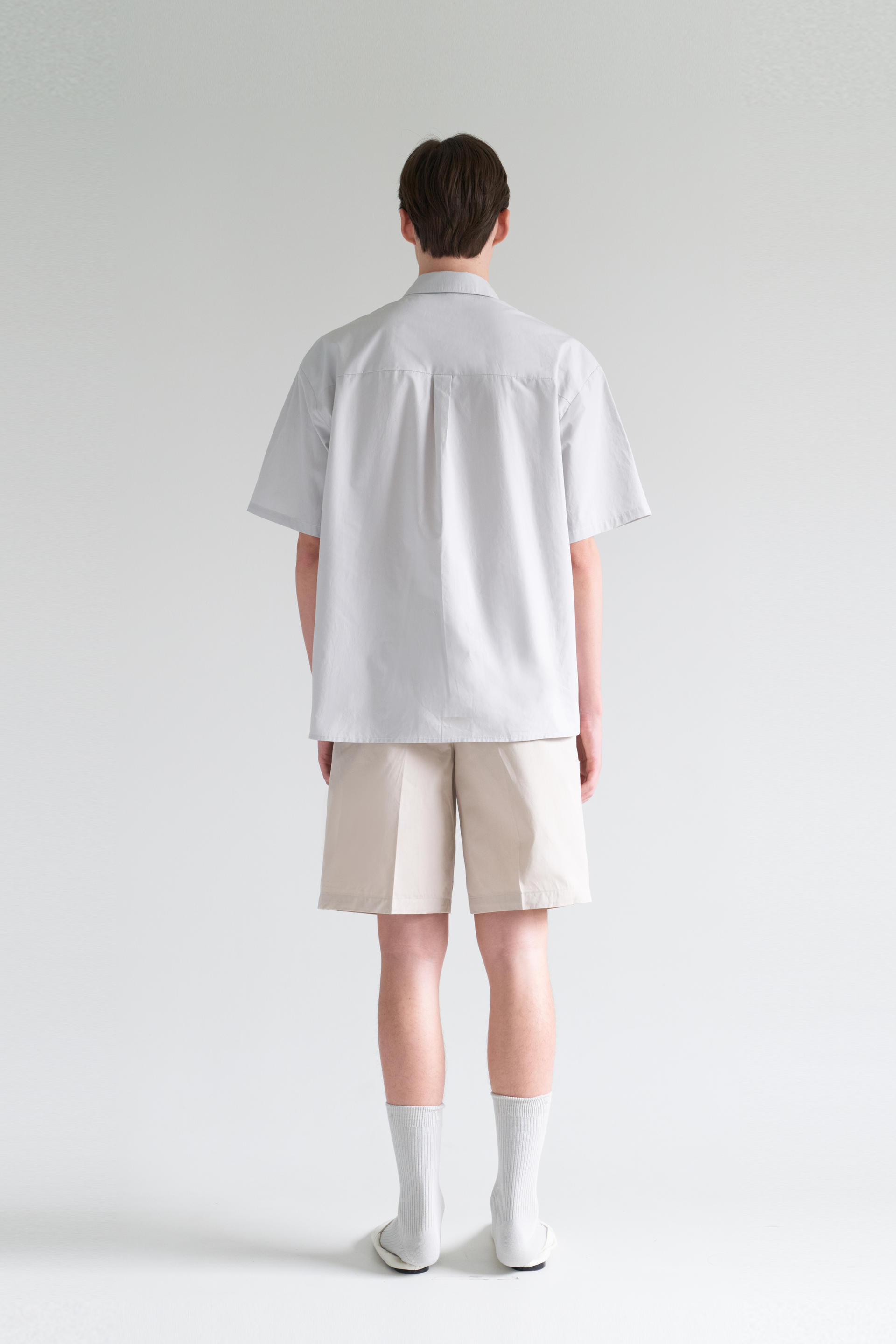 - 허리에서 밑단까지 자연스럽게 이어지며 루즈한 실루엣을 유지하기위해 수 차례 패터닝을 거듭했습니다. 턱을 잡아주어 한층 더 여유있는 실루엣을 보여줍니다.