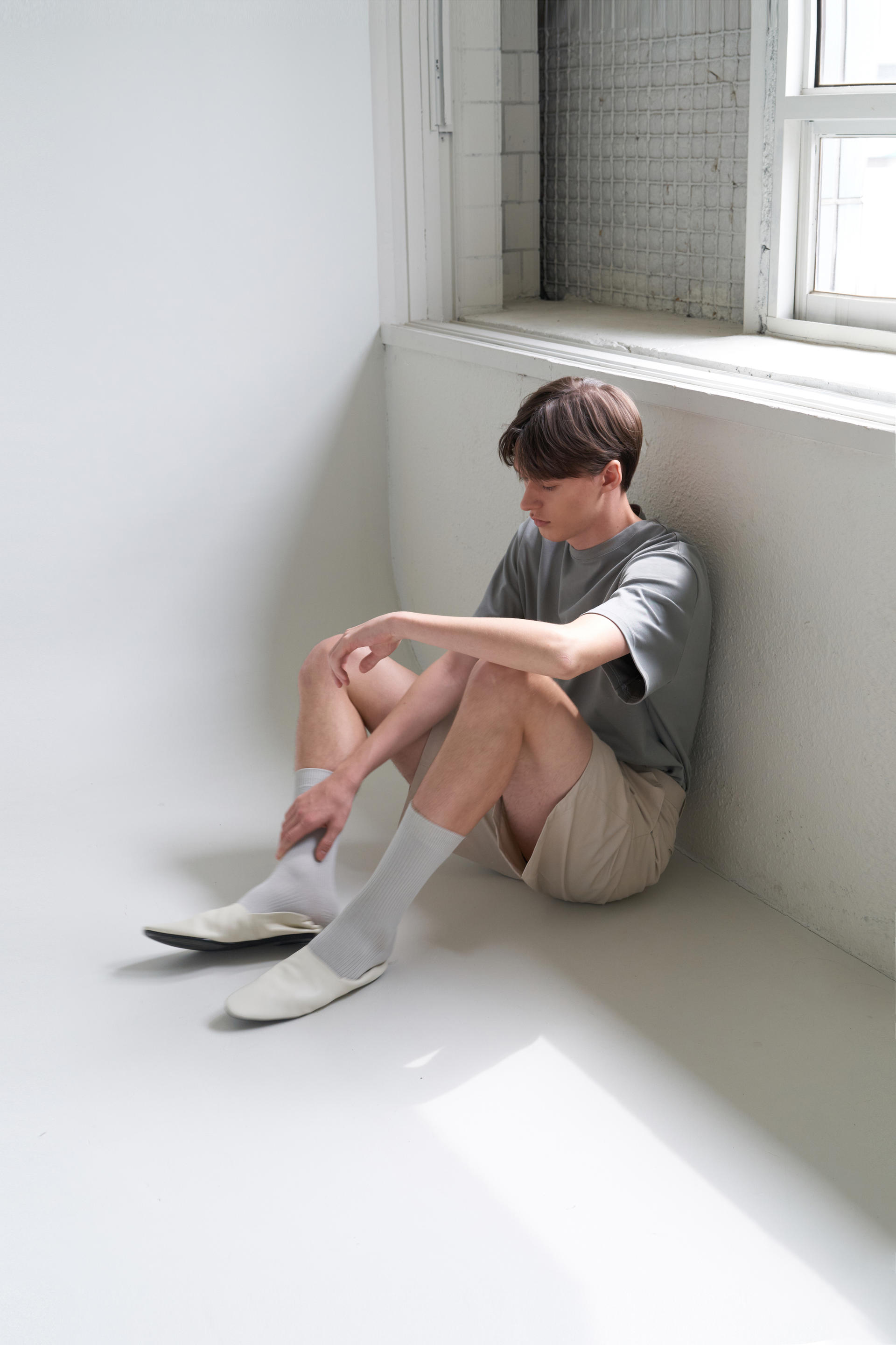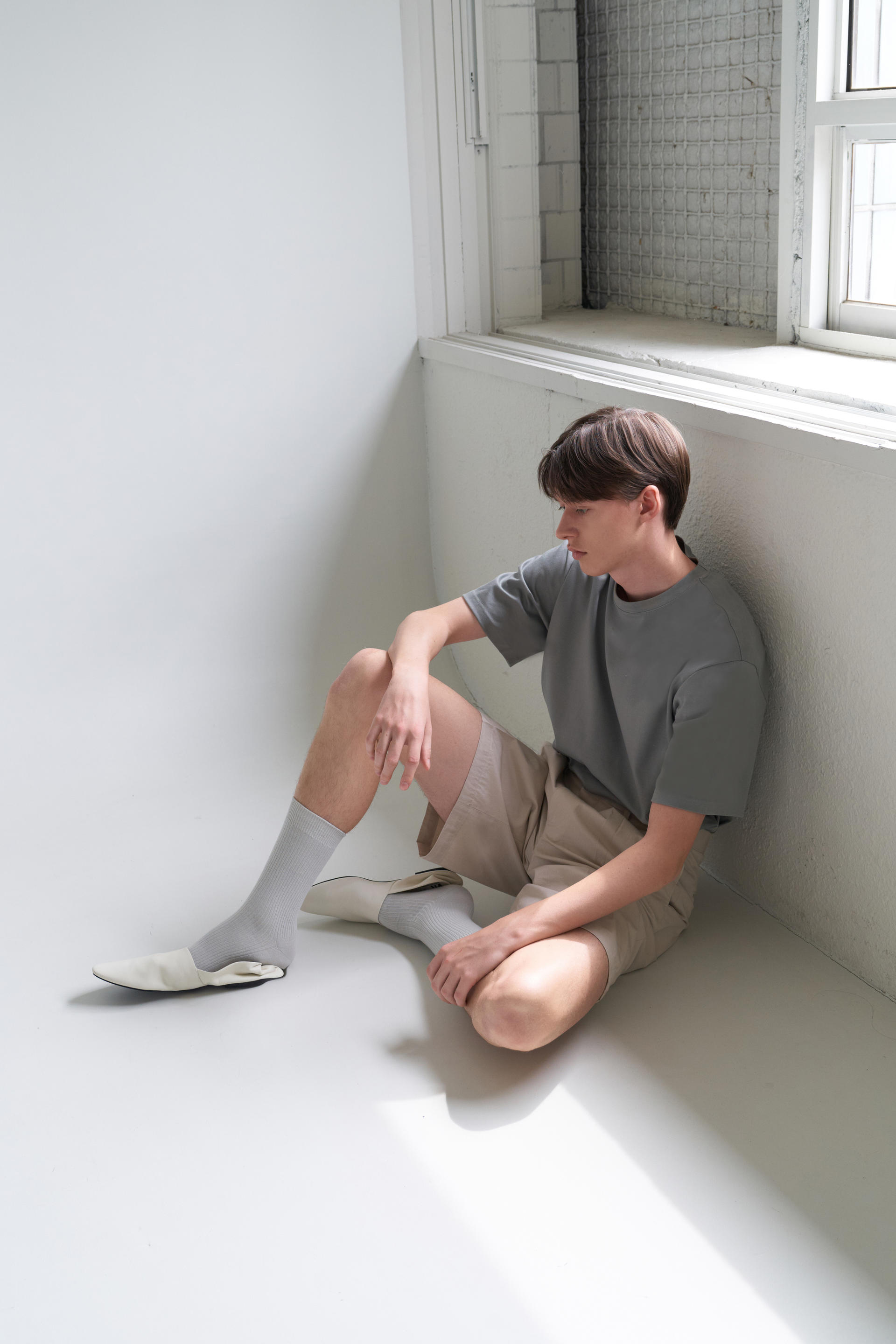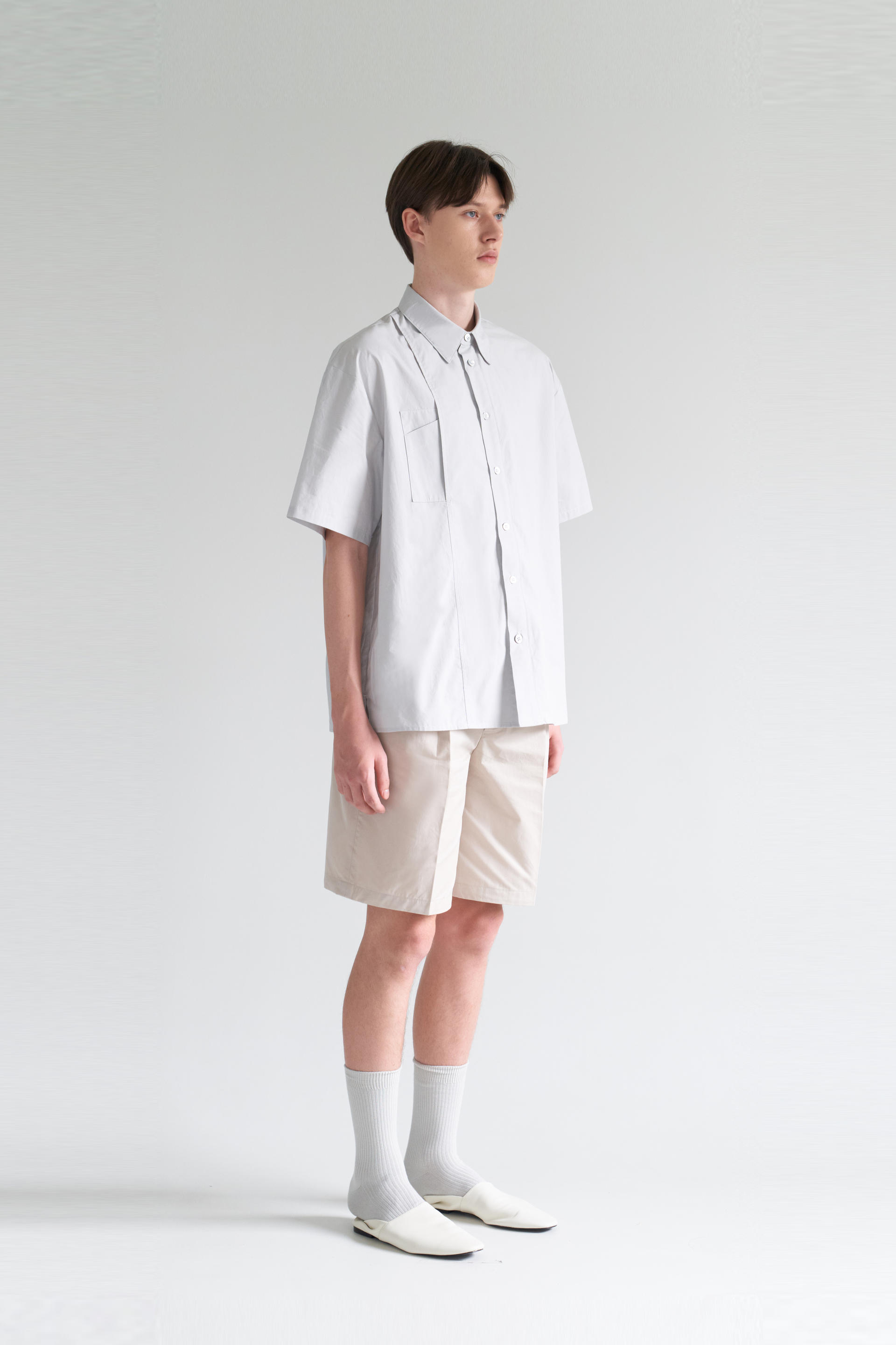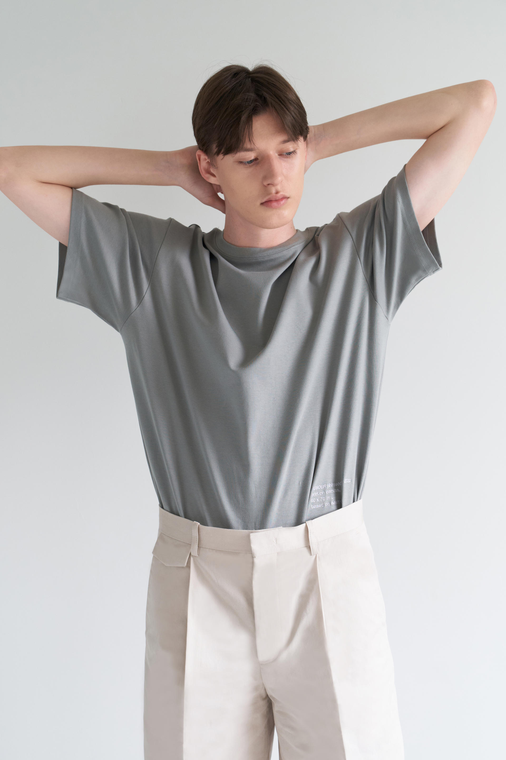 - 허리에서 밑단까지 자연스럽게 이어지며 루즈한 실루엣을 유지하기위해 수 차례 패터닝을 거듭했습니다. 턱을 잡아주어 한층 더 여유있는 실루엣을 보여줍니다.