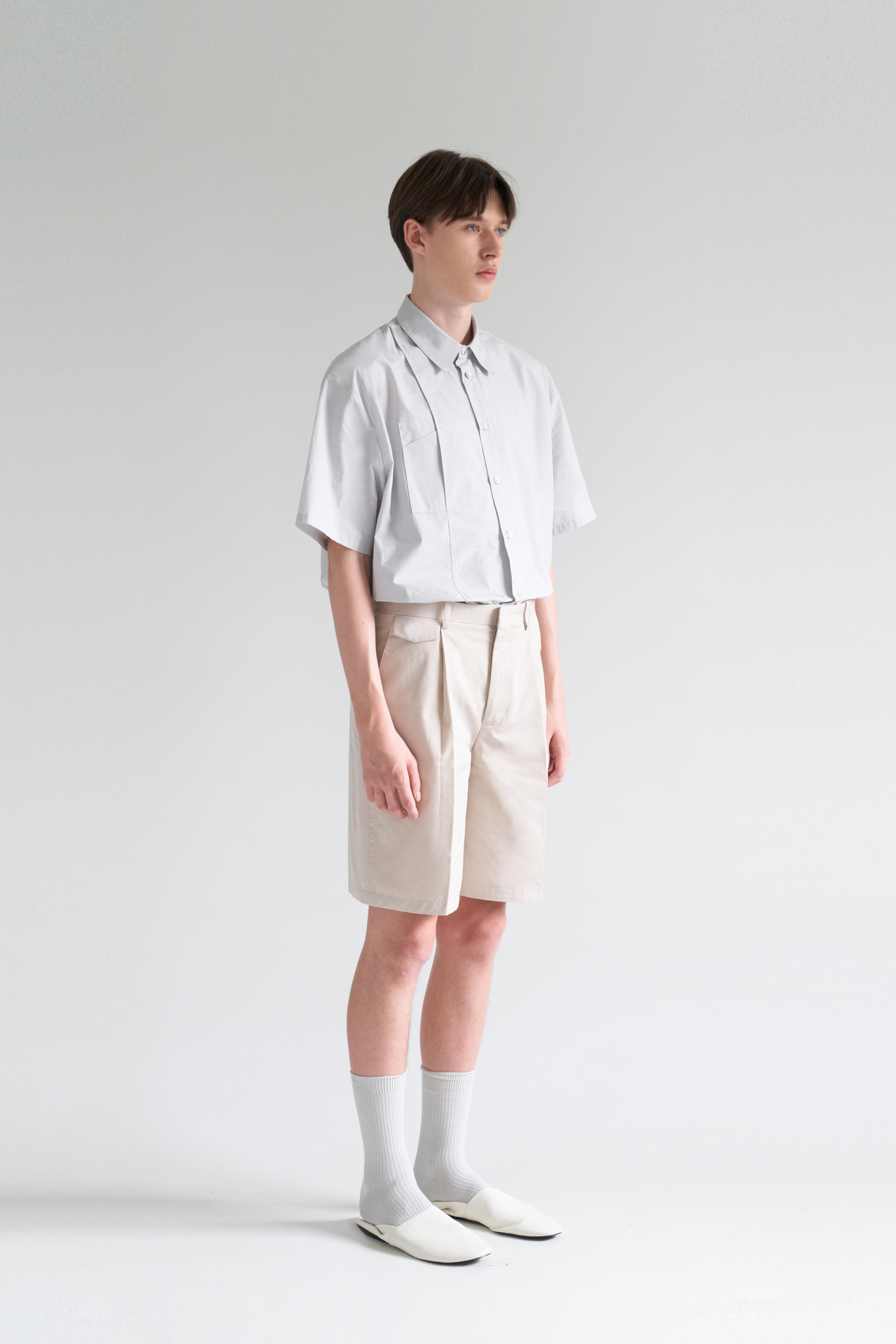 one tuck cinch back half pants beigeTIME SALE