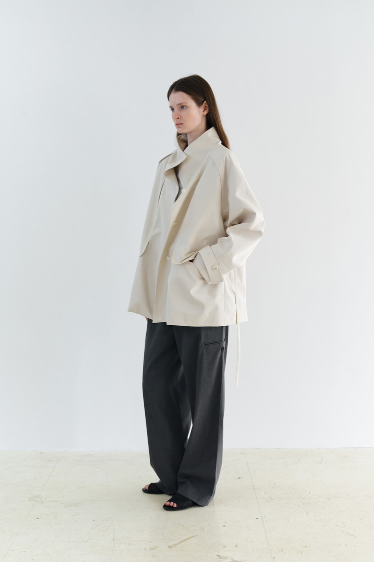 - 자연스럽게 올라오는 하이넥 칼라는 차분하고 미니멀한 인상을 주며, 풀어 입었을 때는 또 다른 매력을 보여줍니다.