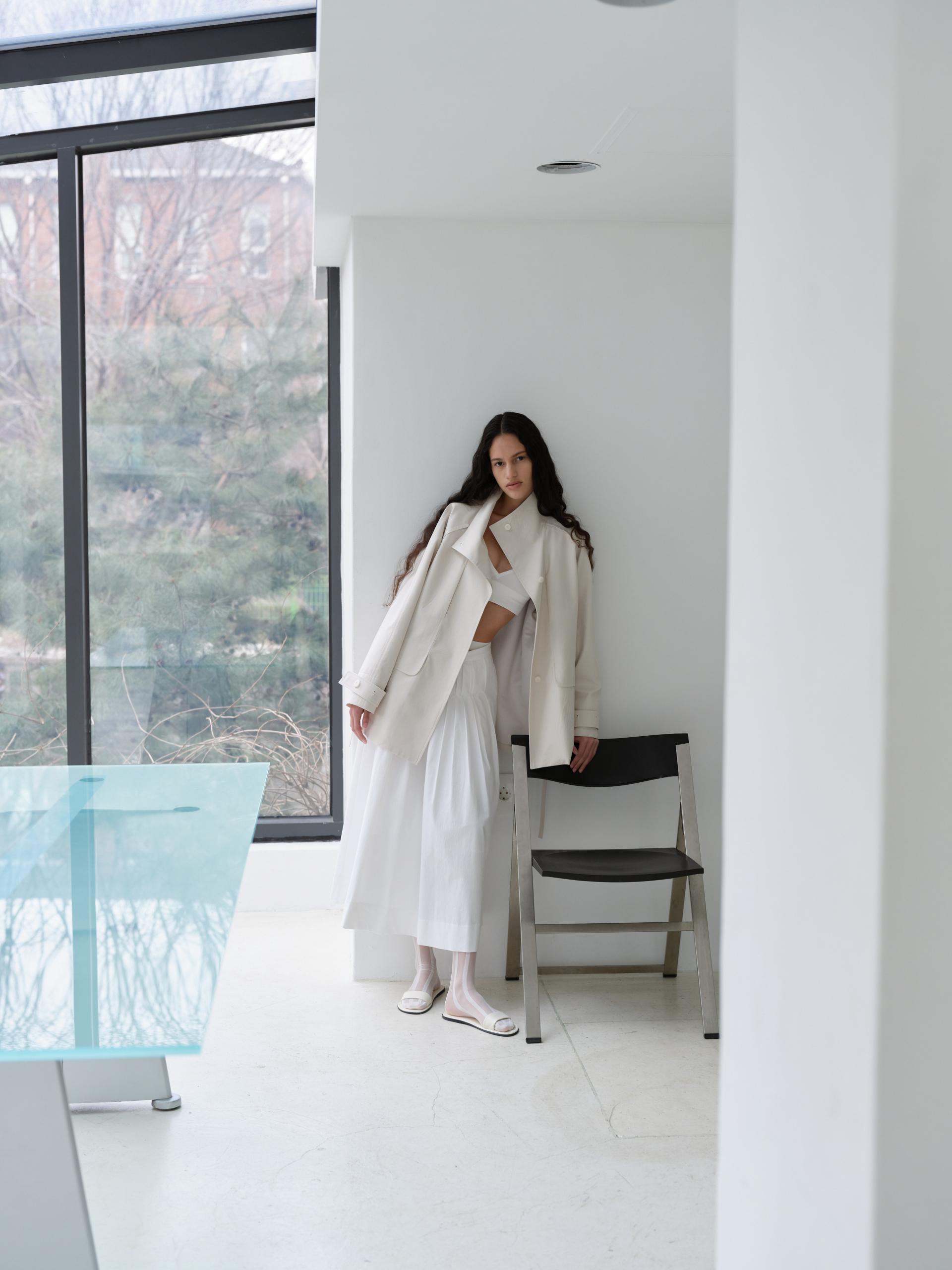 - 여러 차례의 패터닝과 샘플링을 거쳐 착용 시 균형 잡힌 실루엣을 구현했습니다.