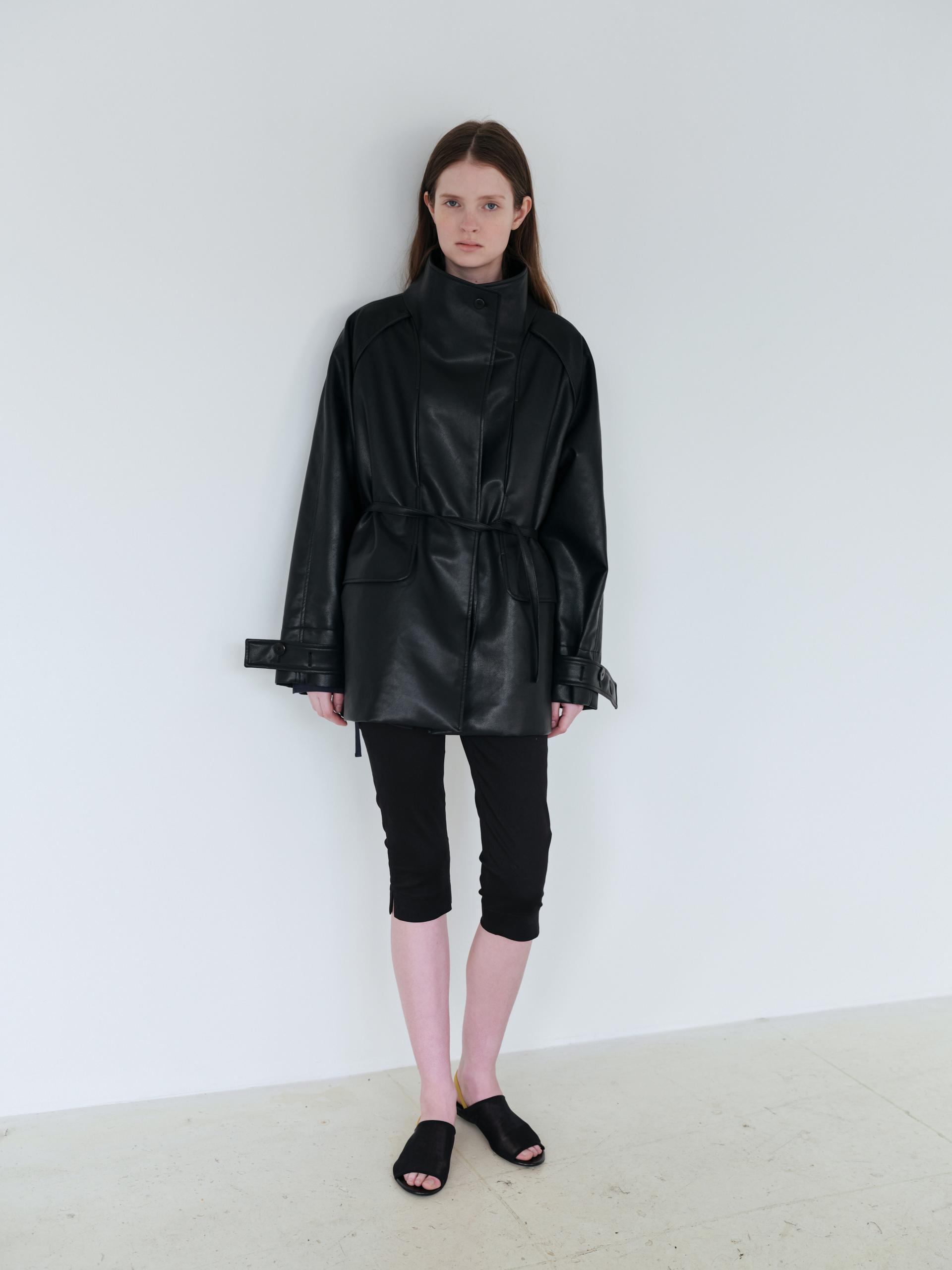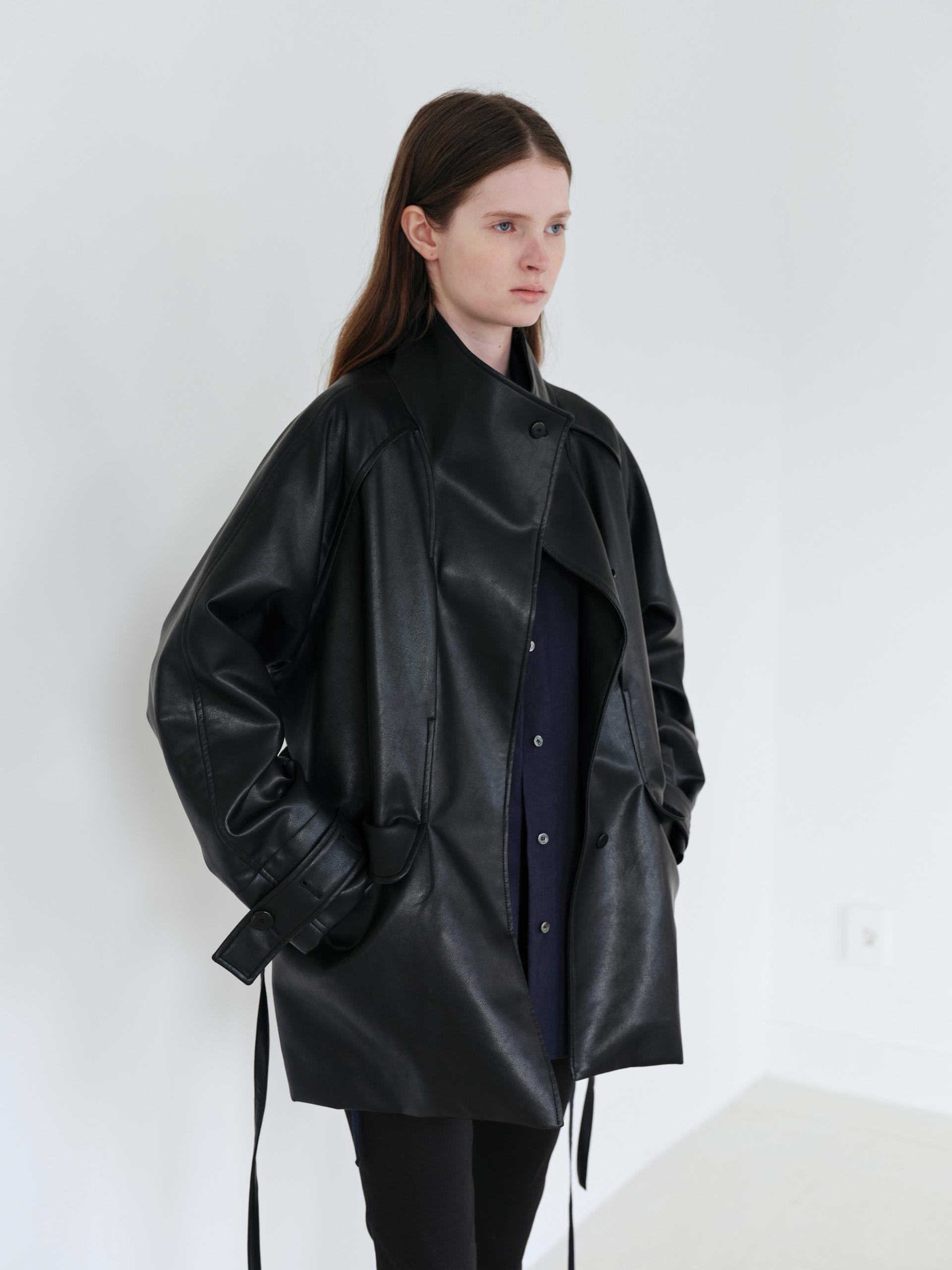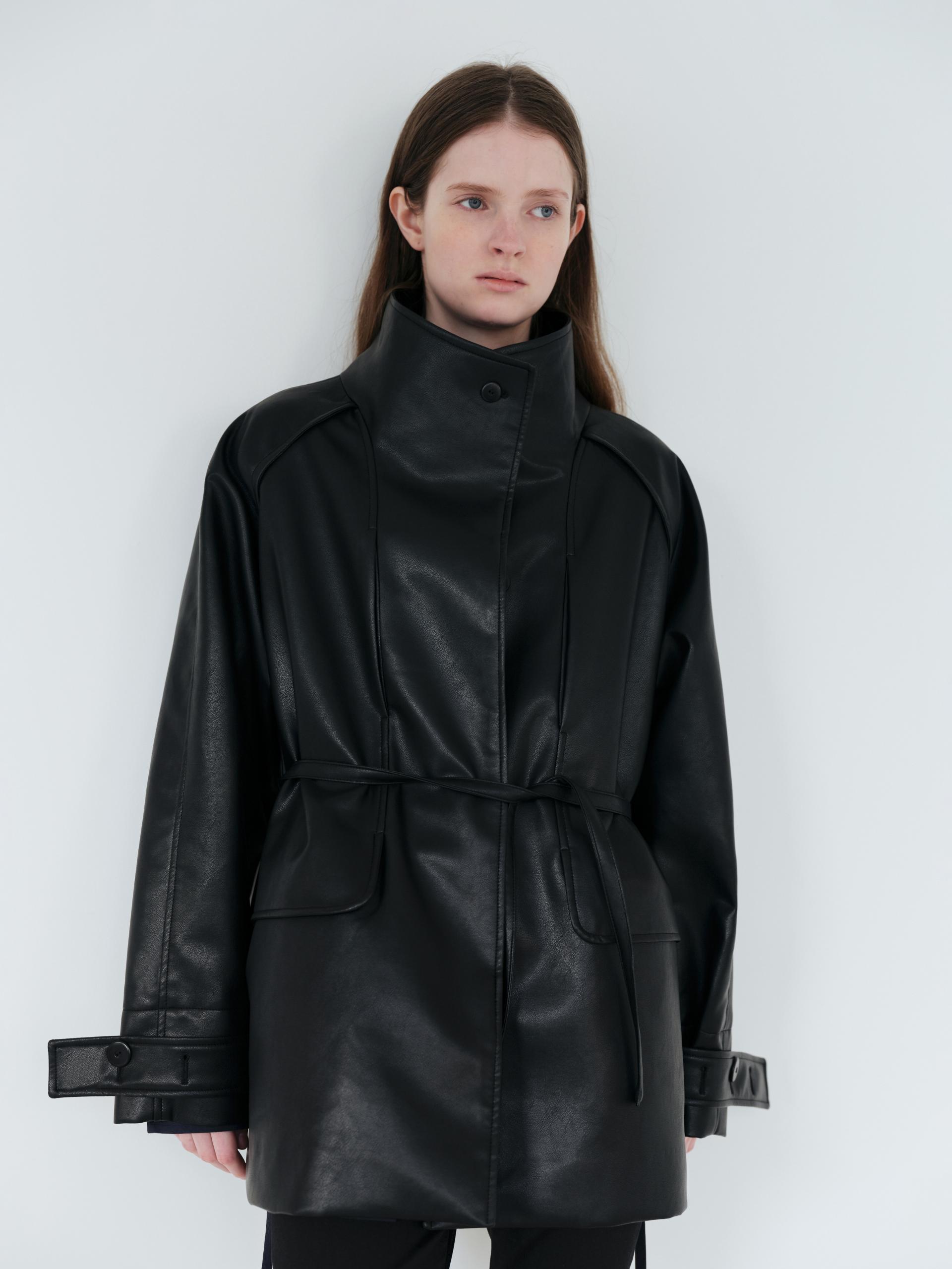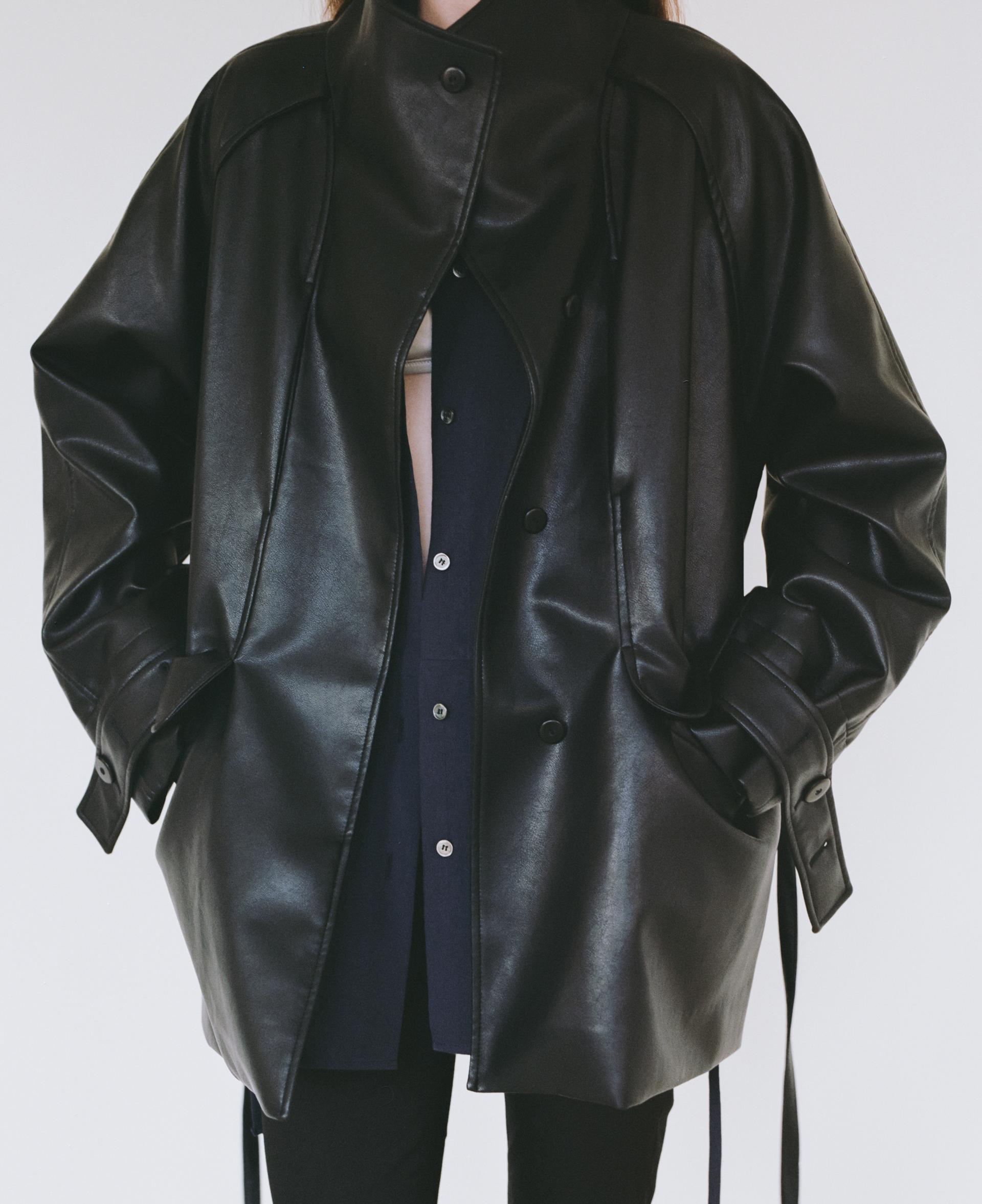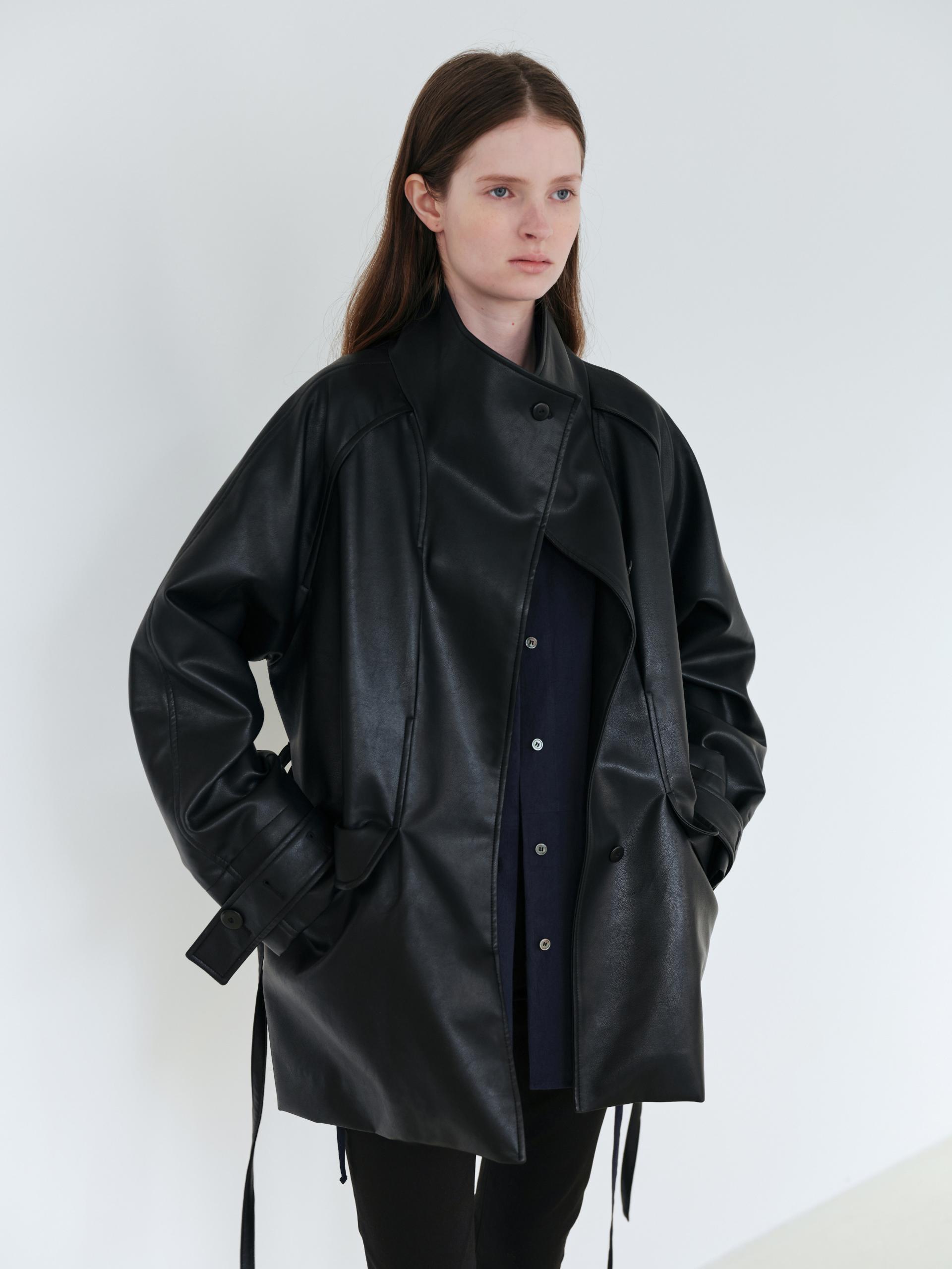 vent half trench coat (leather black)