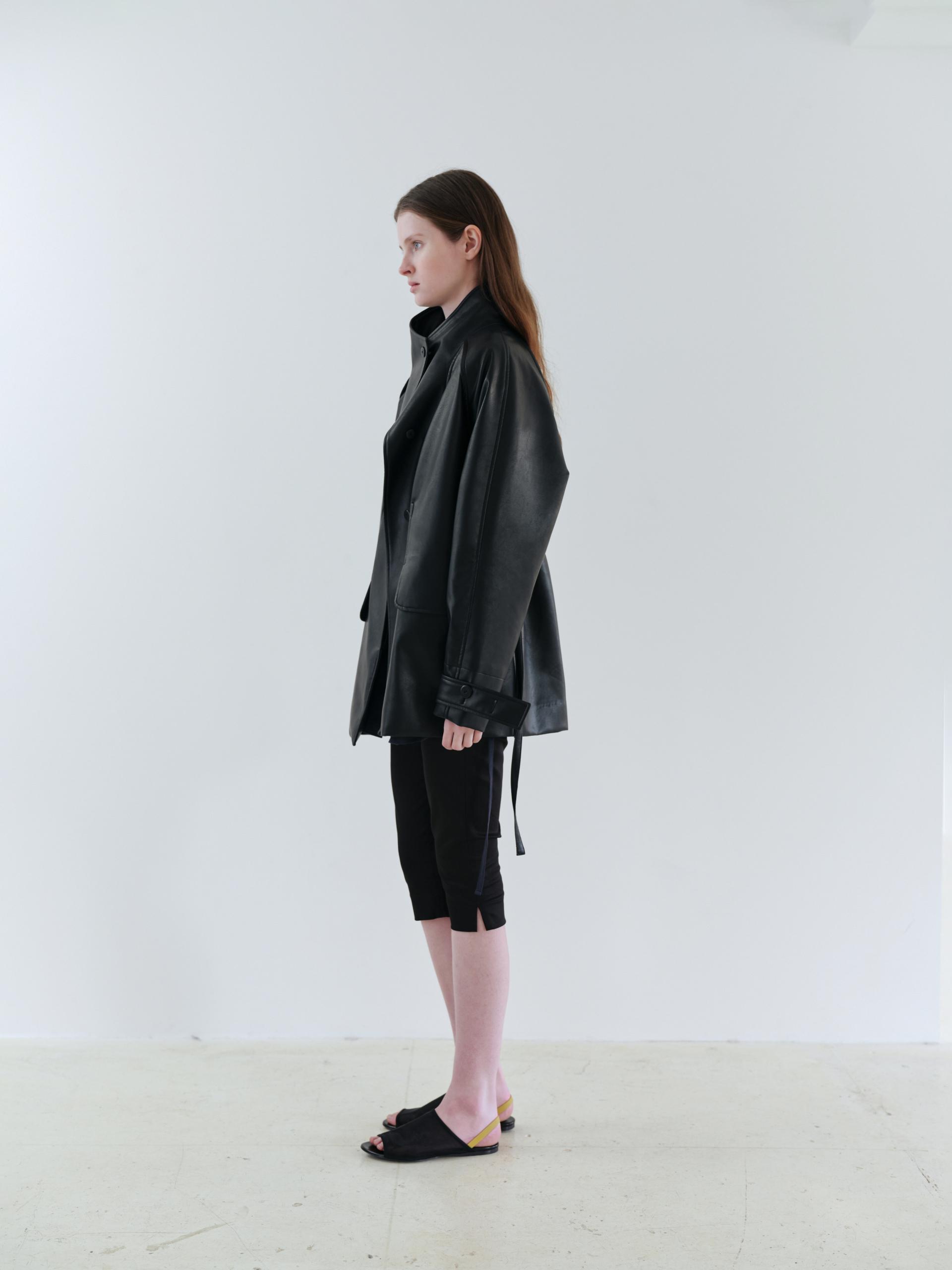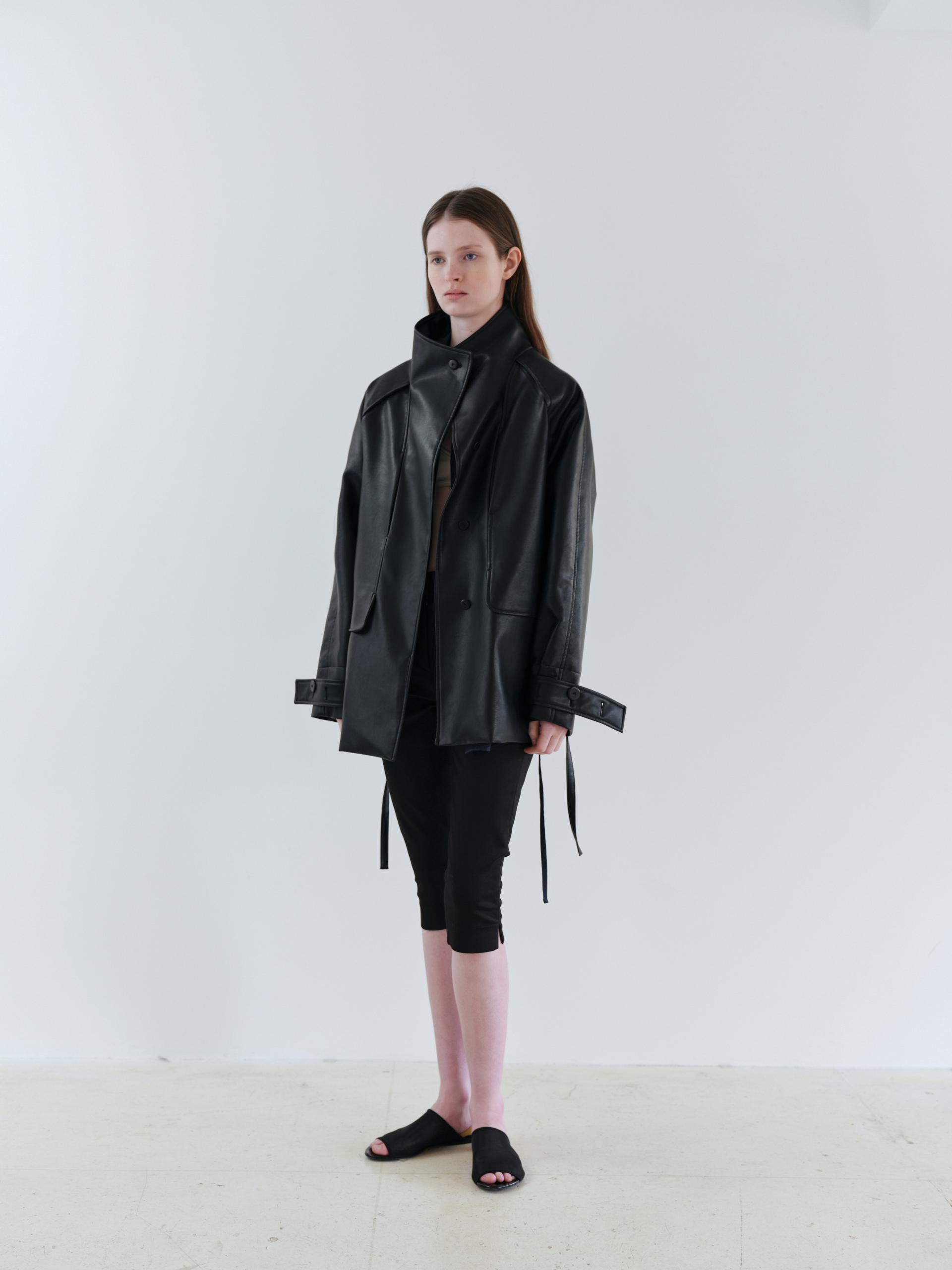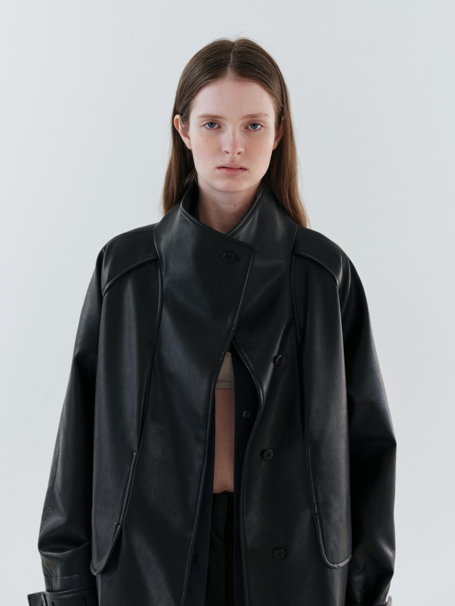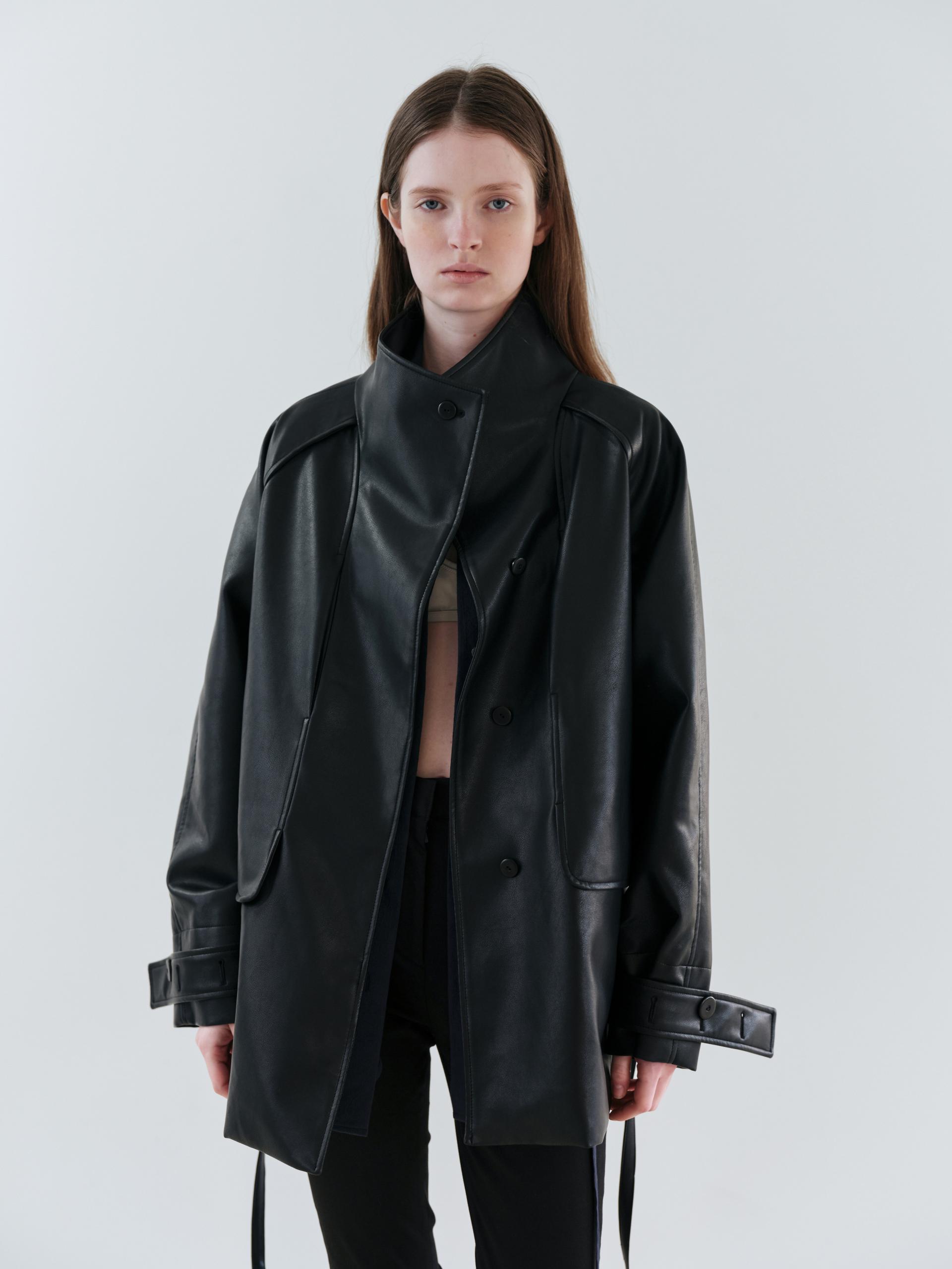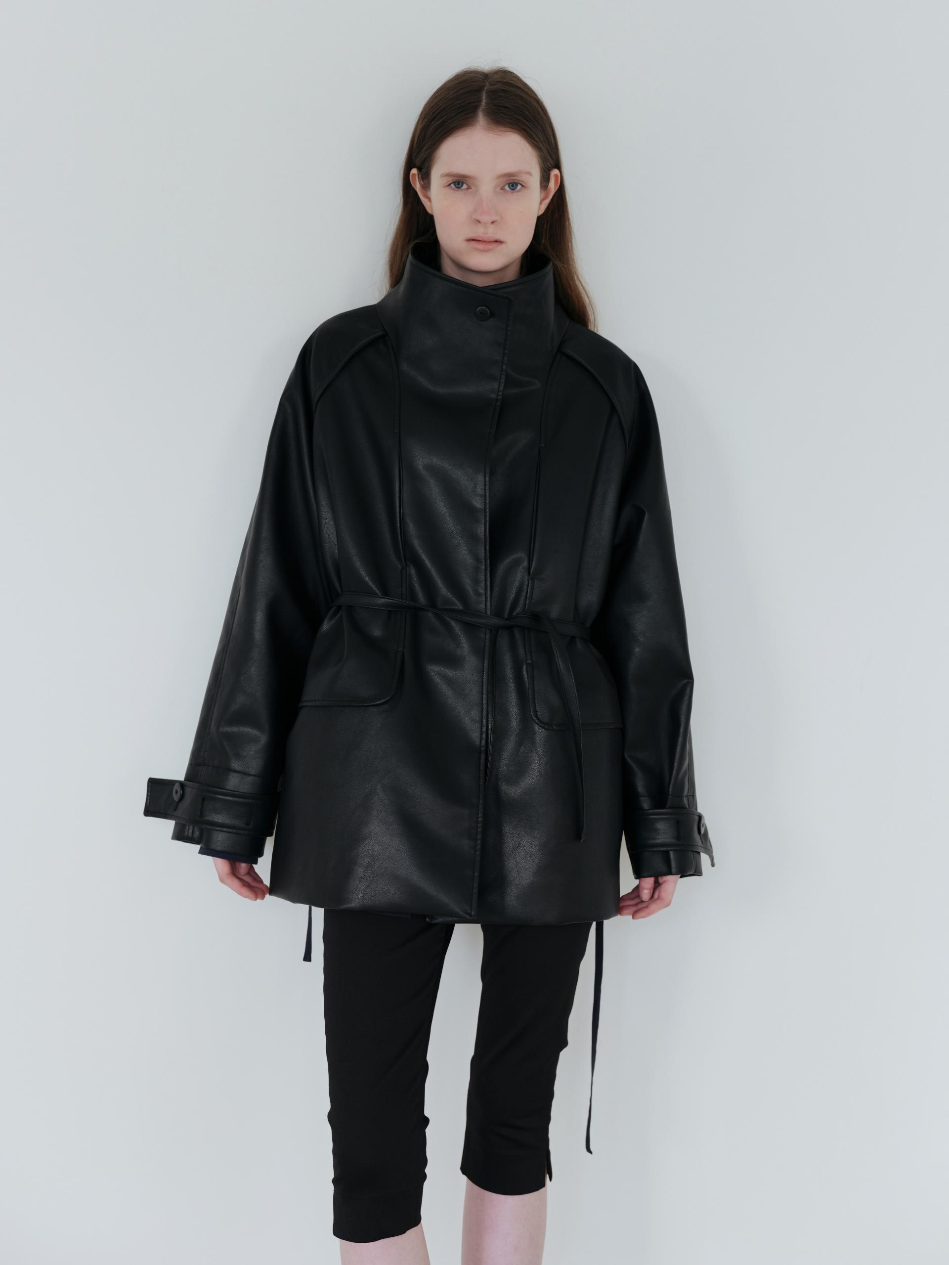 vent half trench coat (leather black)