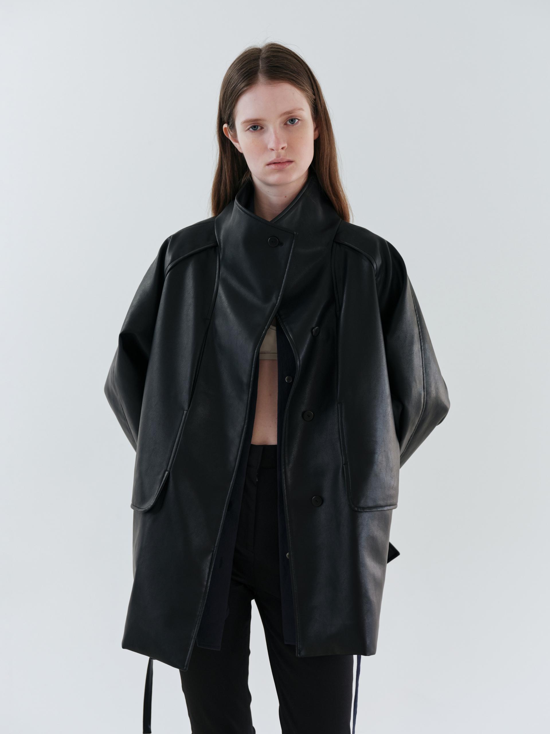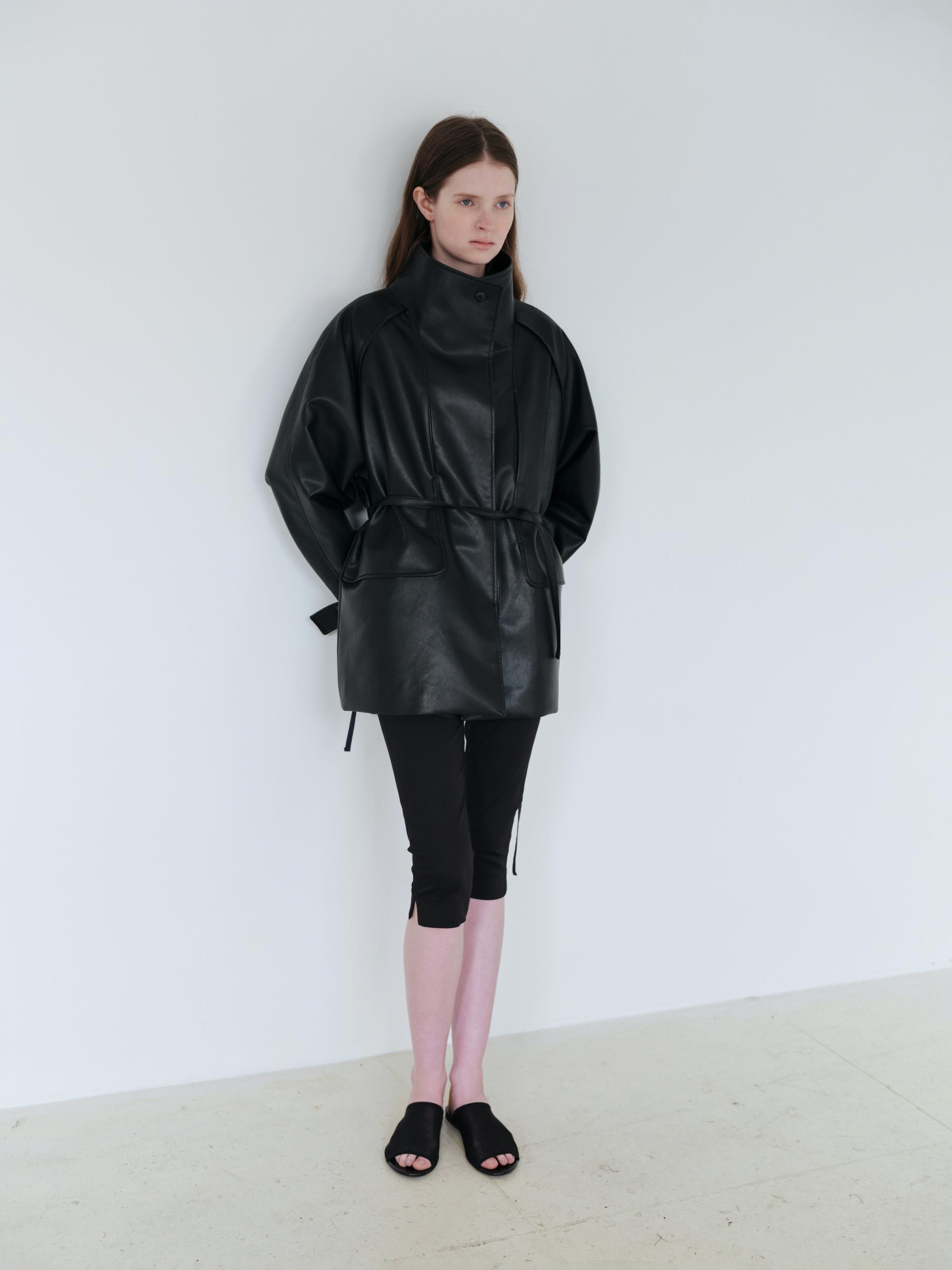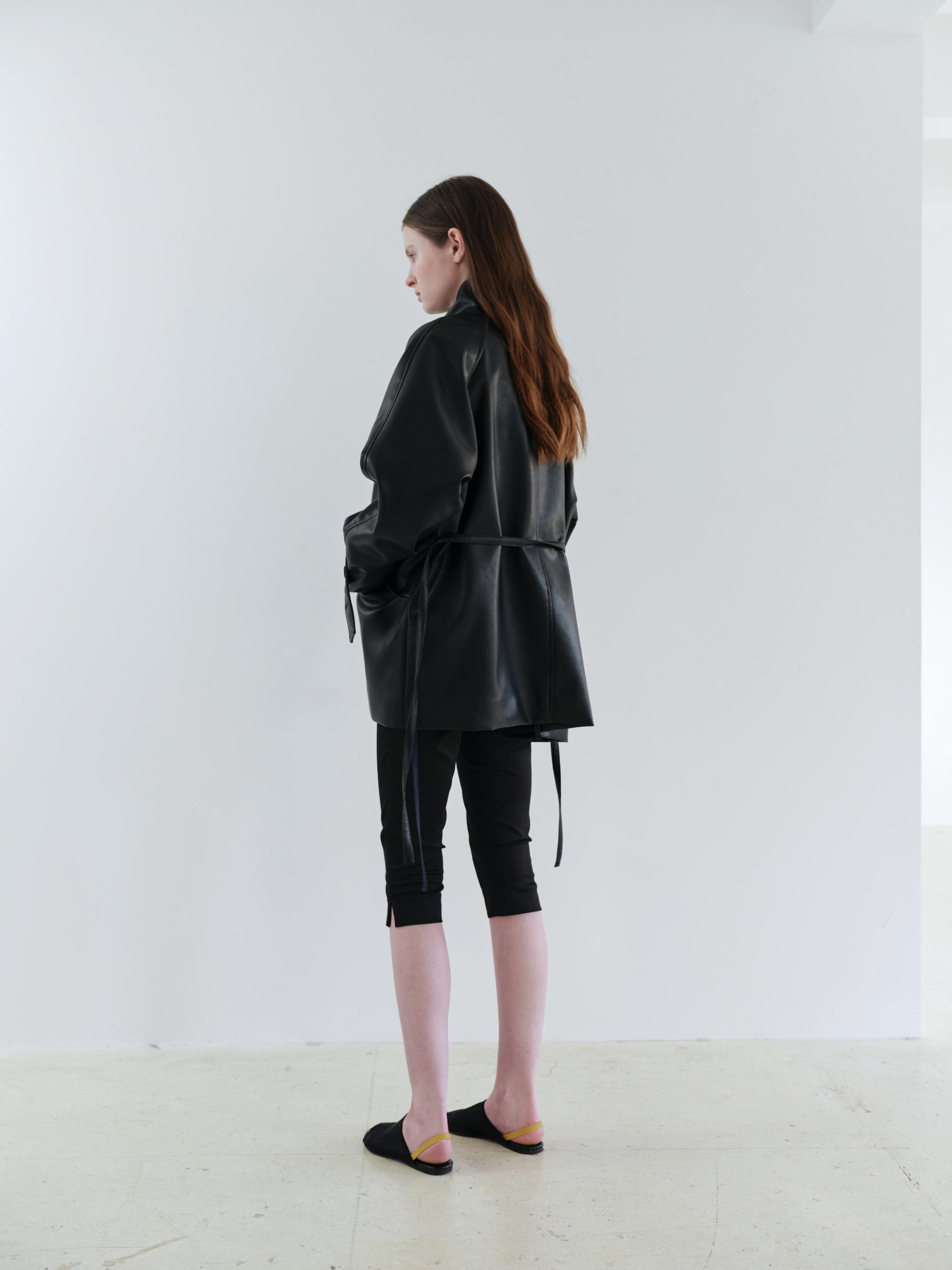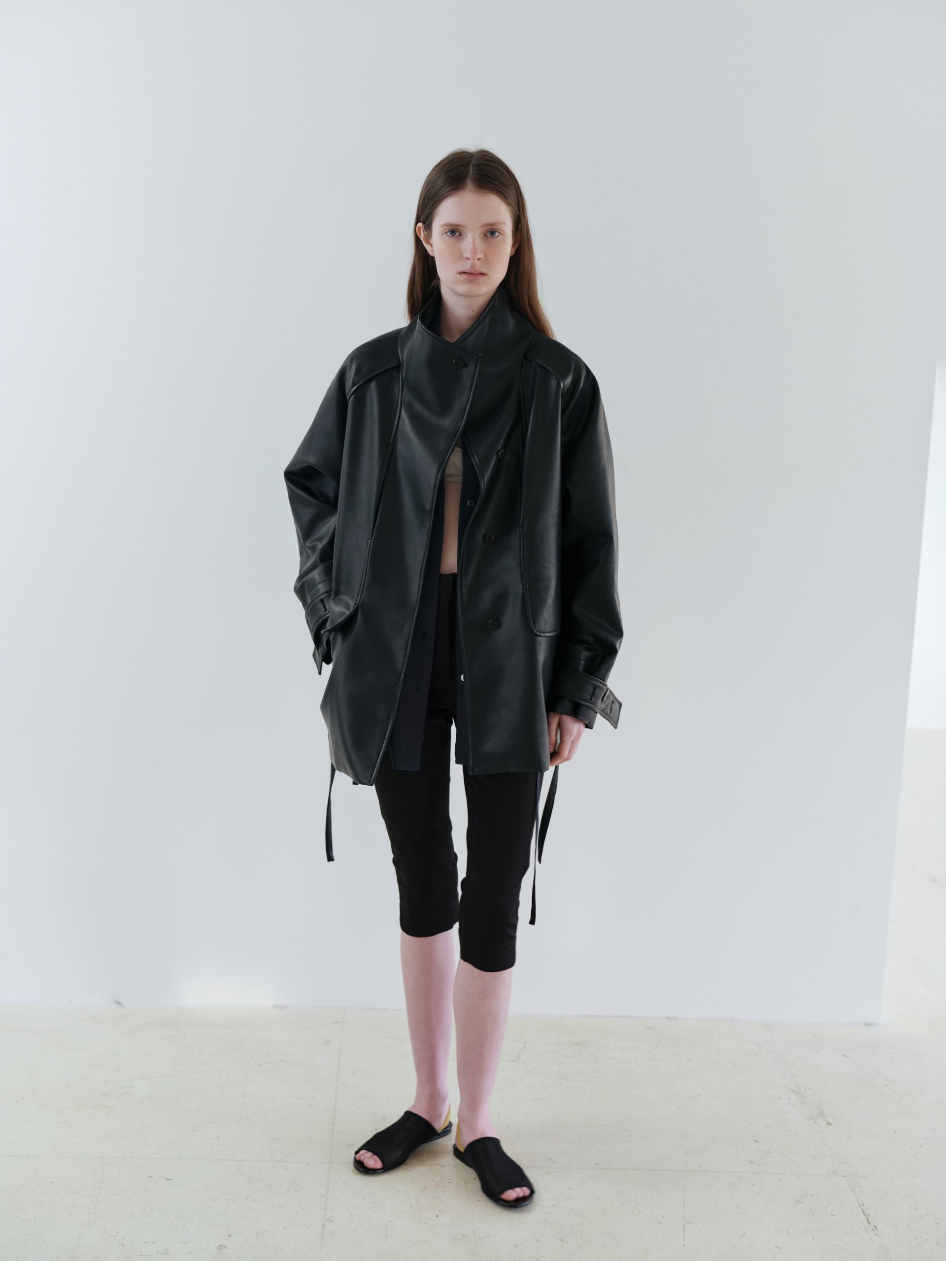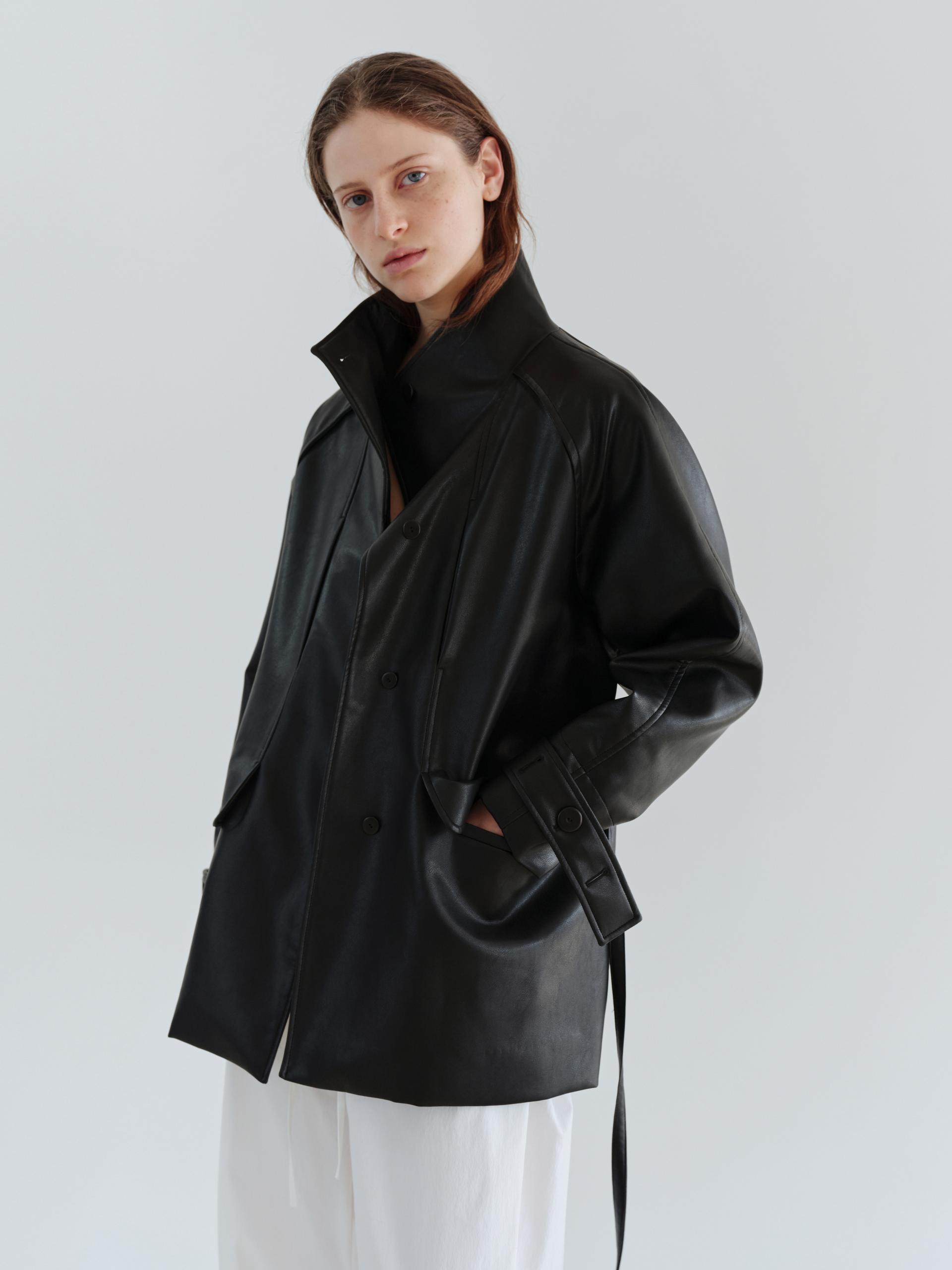vent half trench coat (leather black)