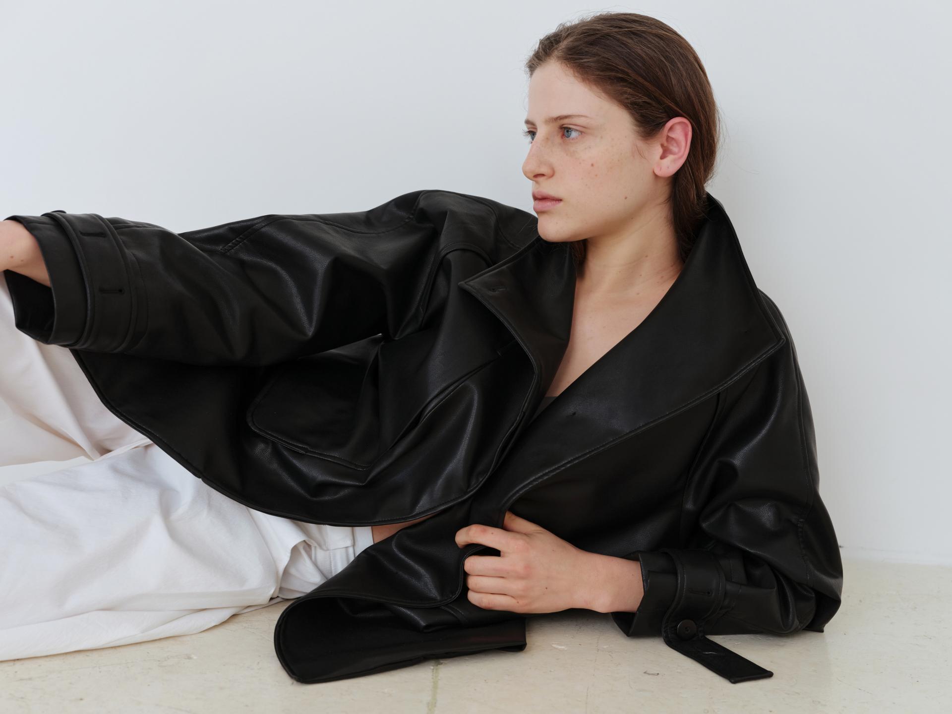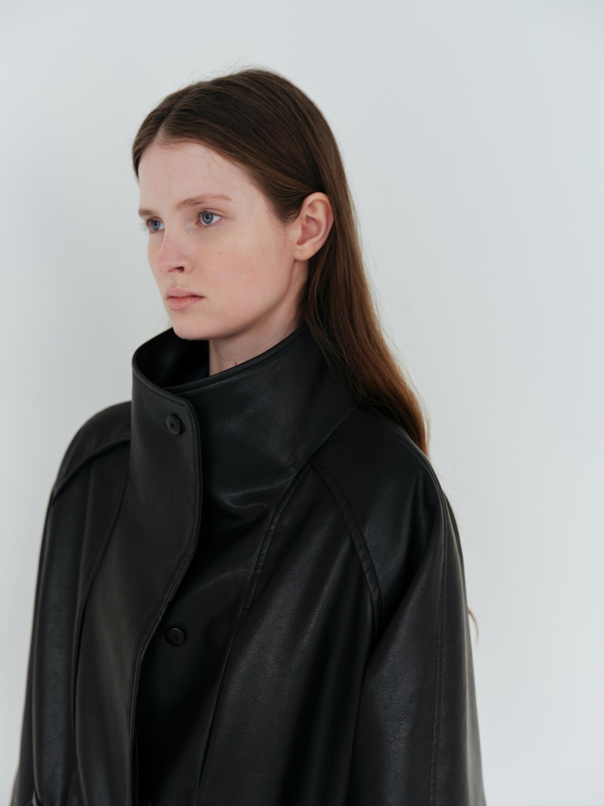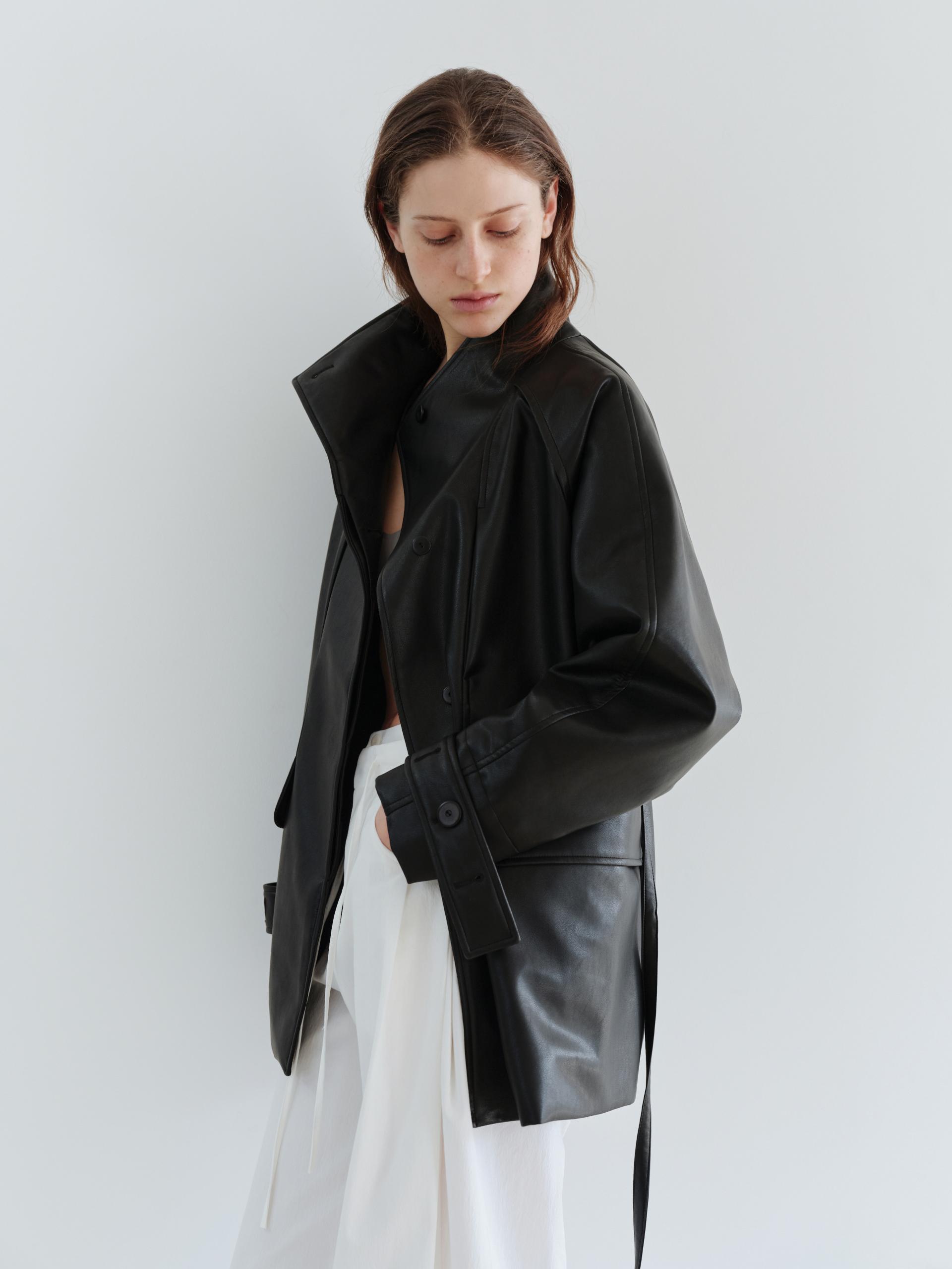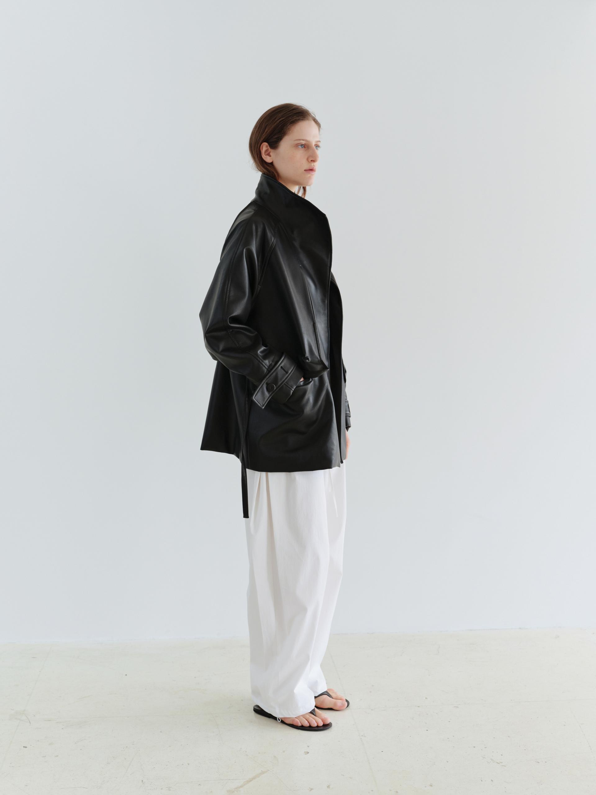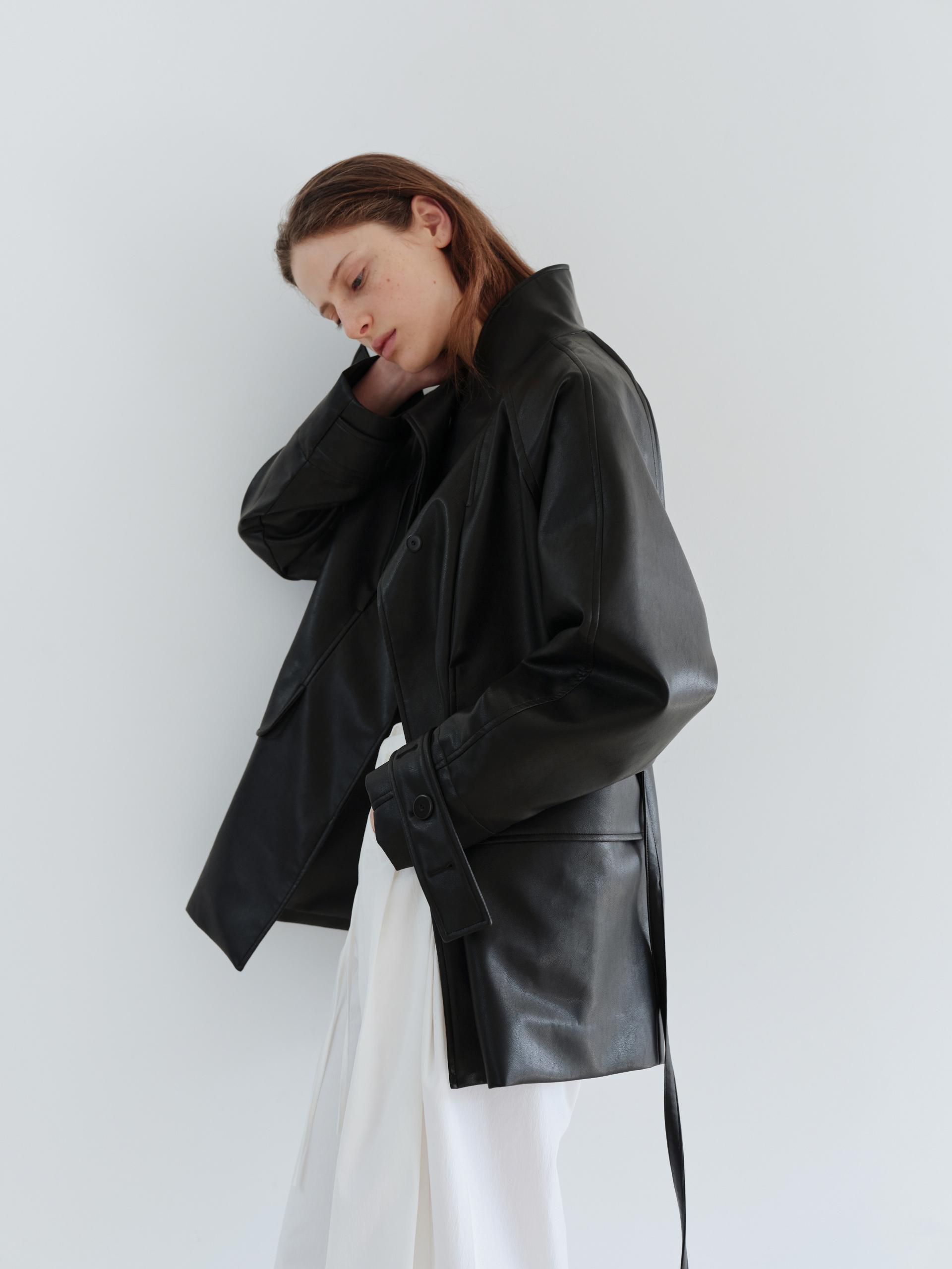 vent half trench coat (leather black)