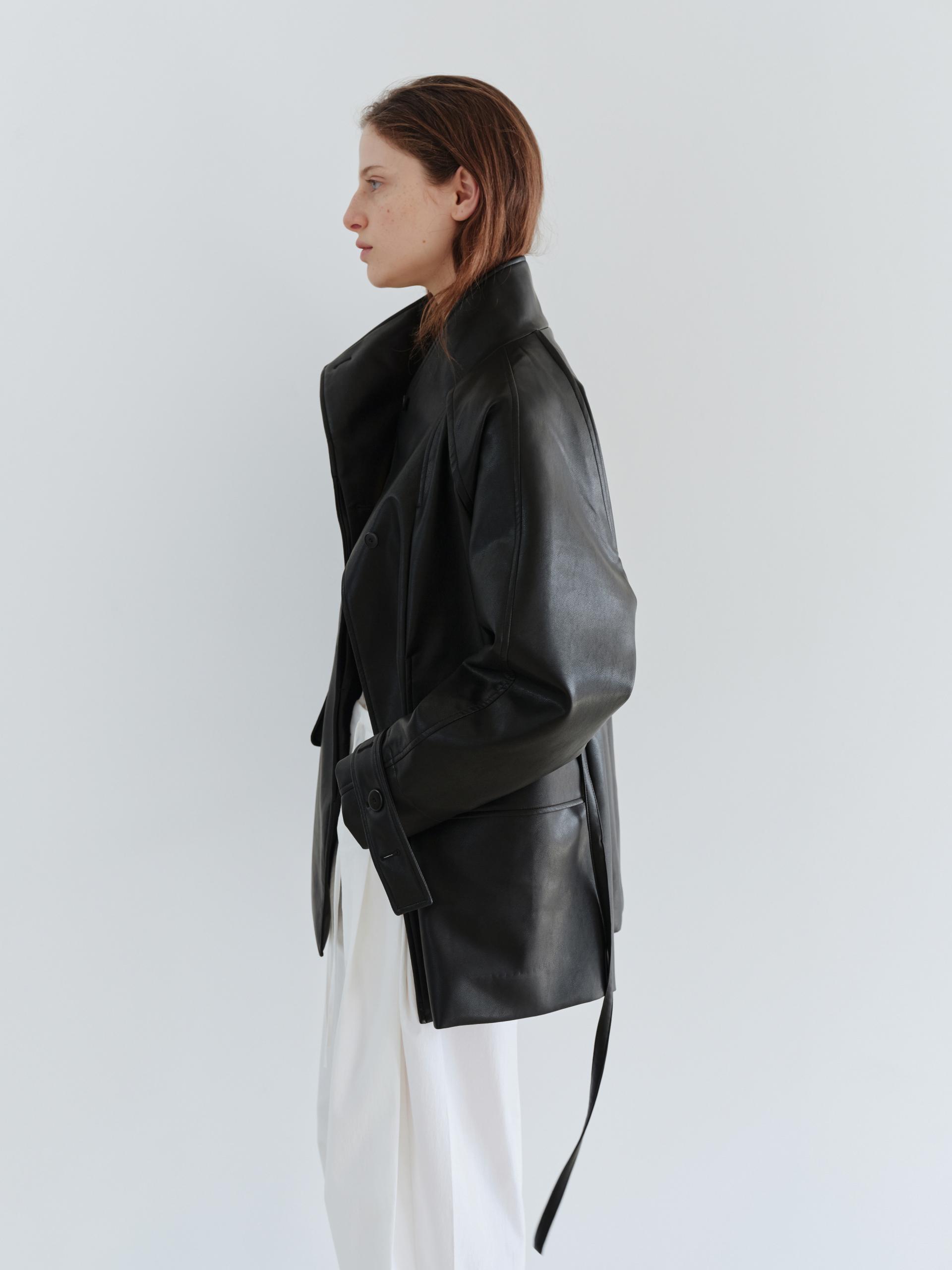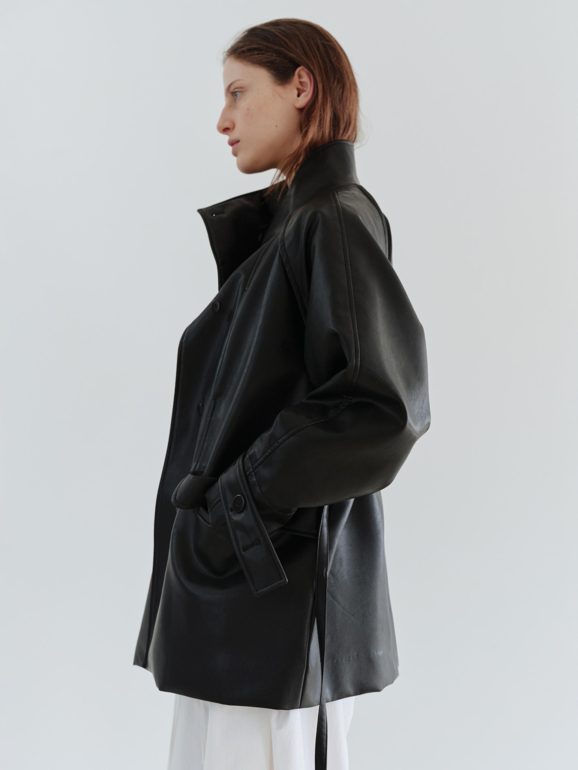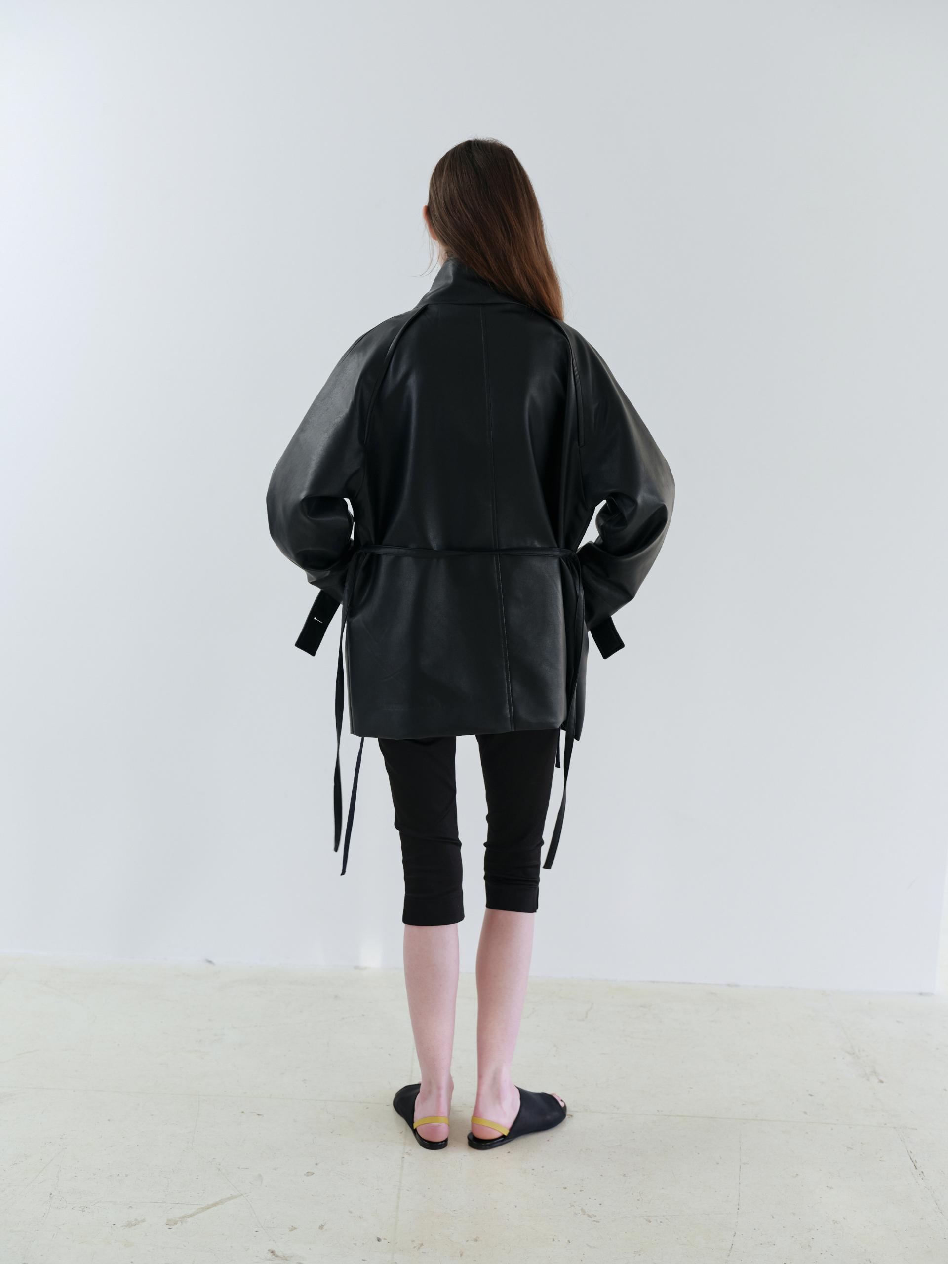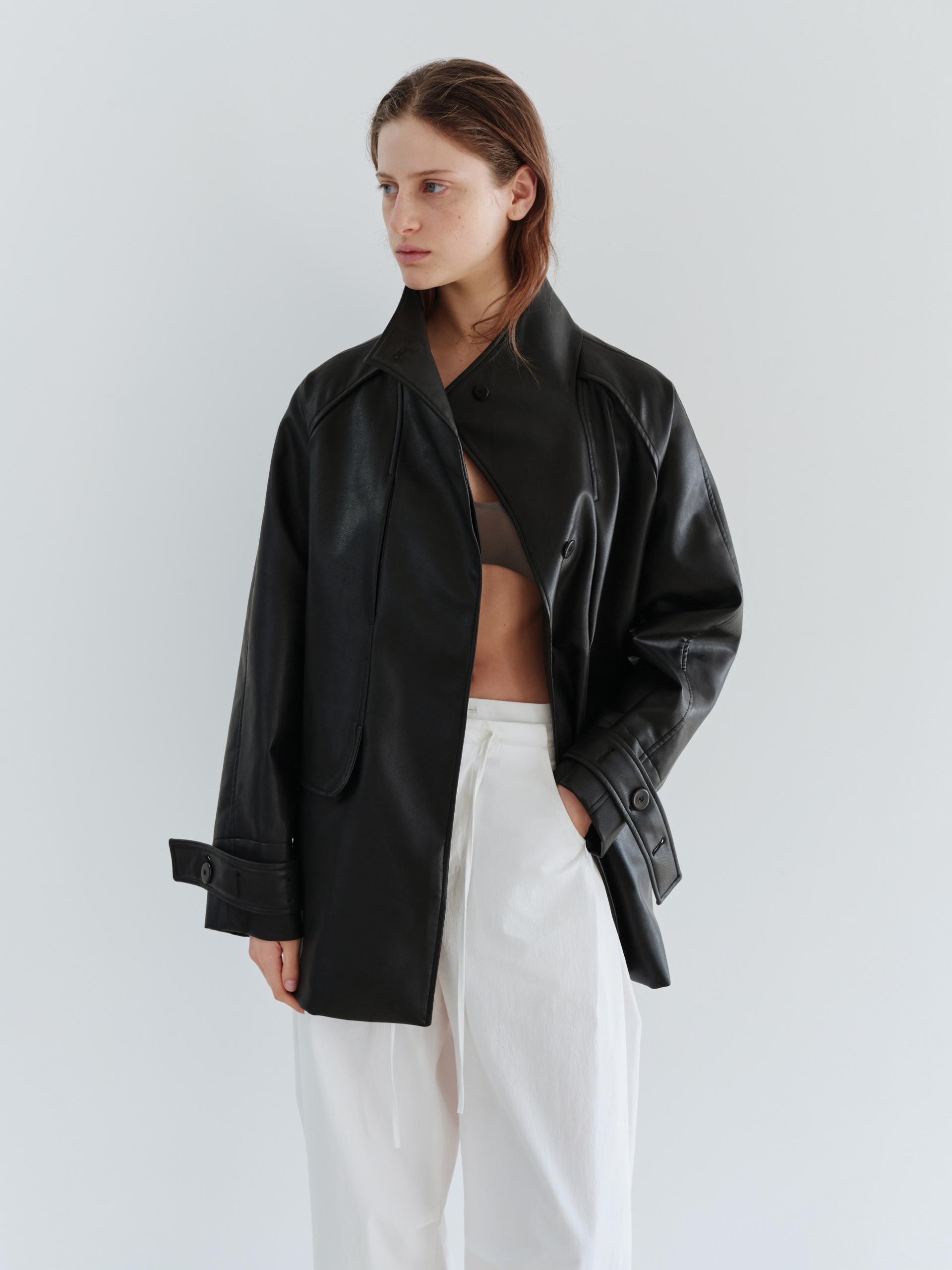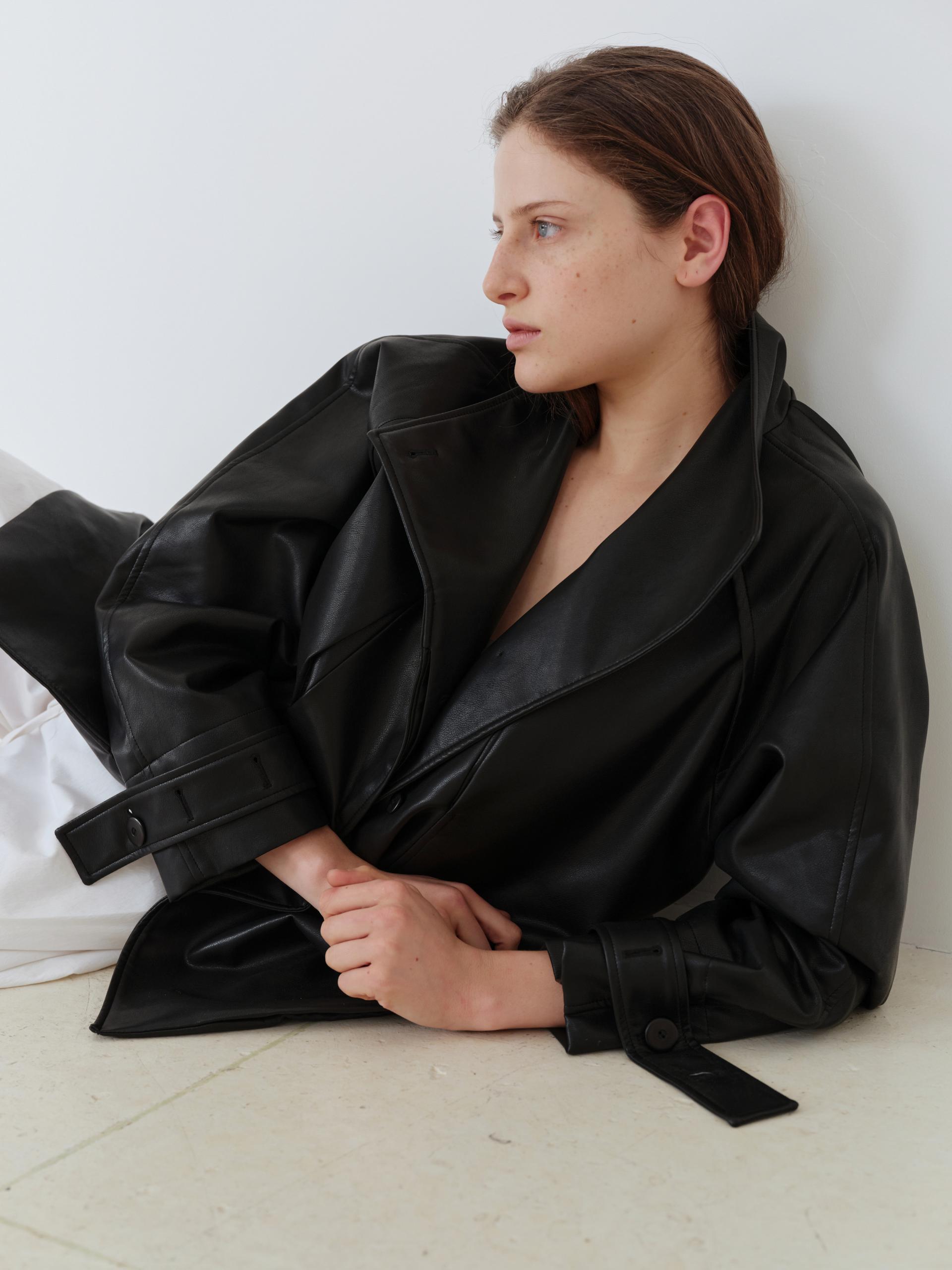 vent half trench coat (leather black)