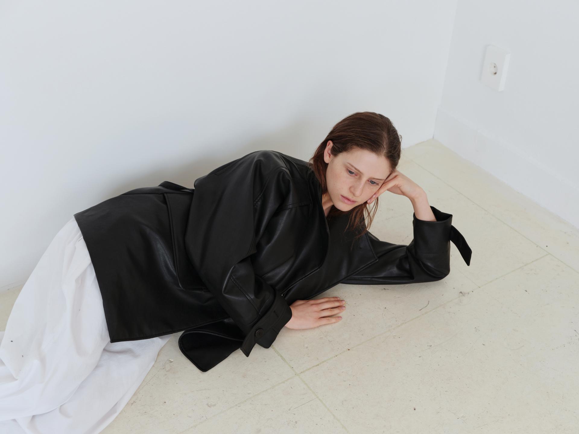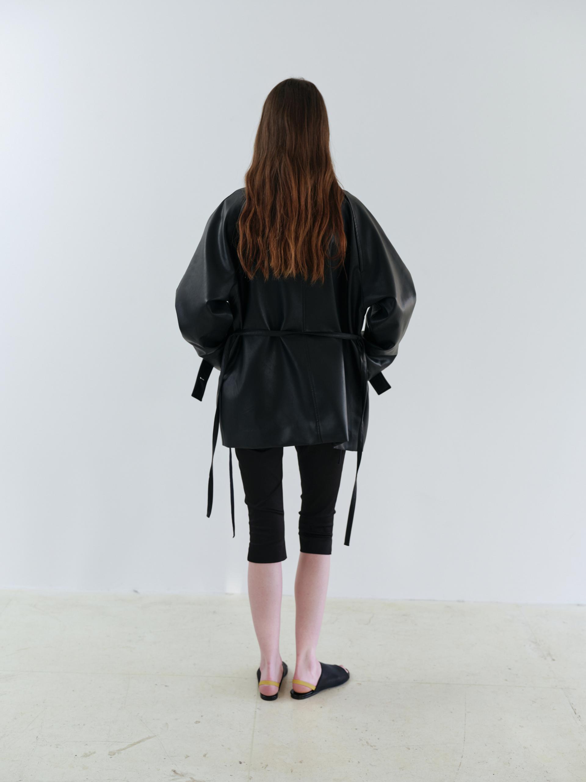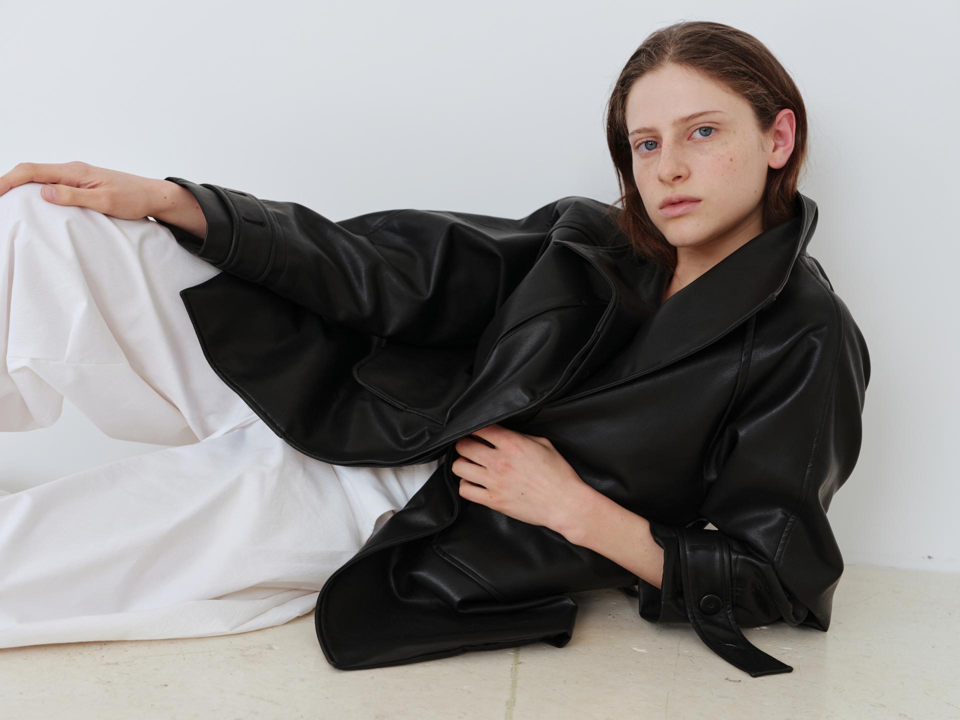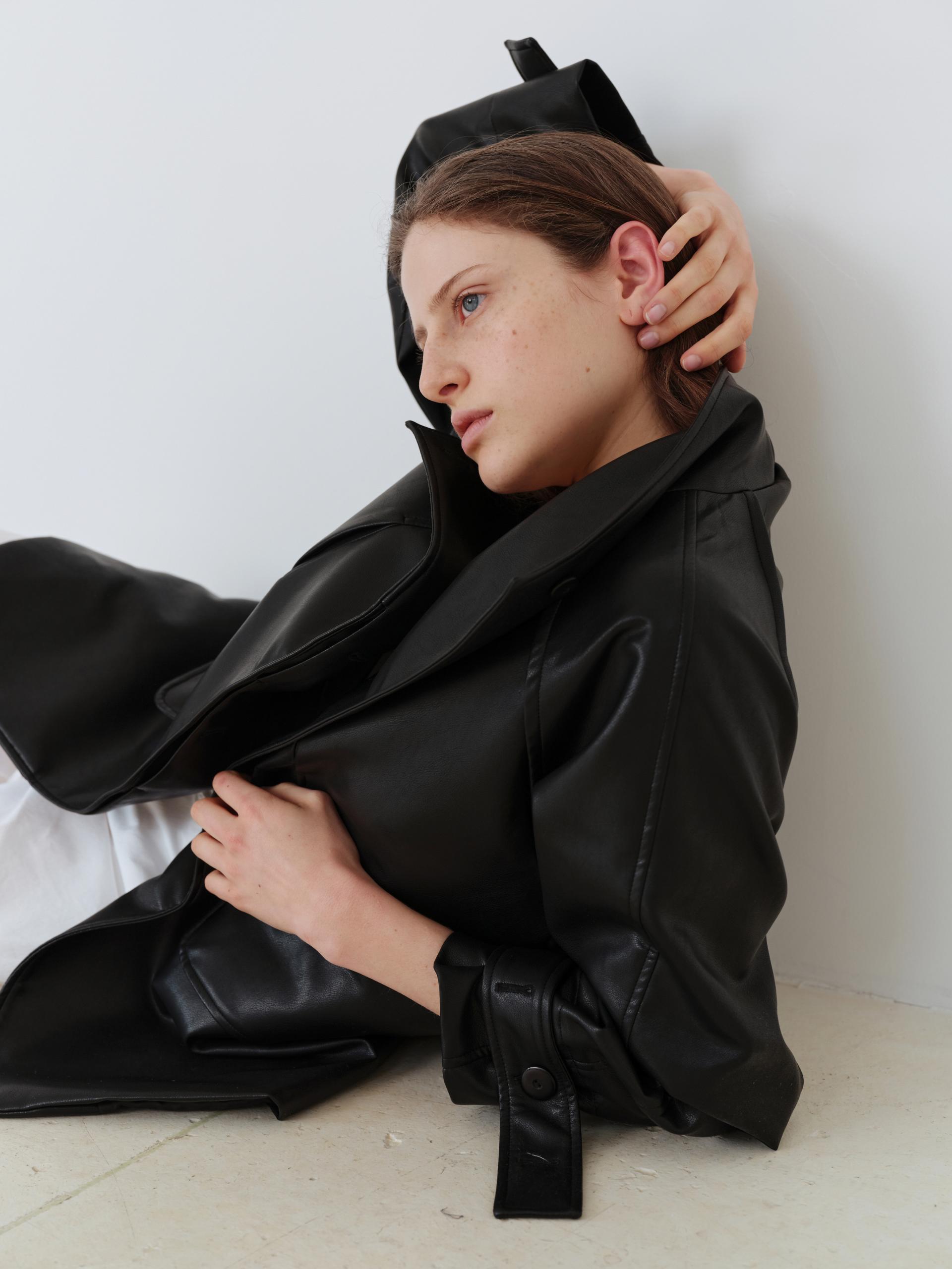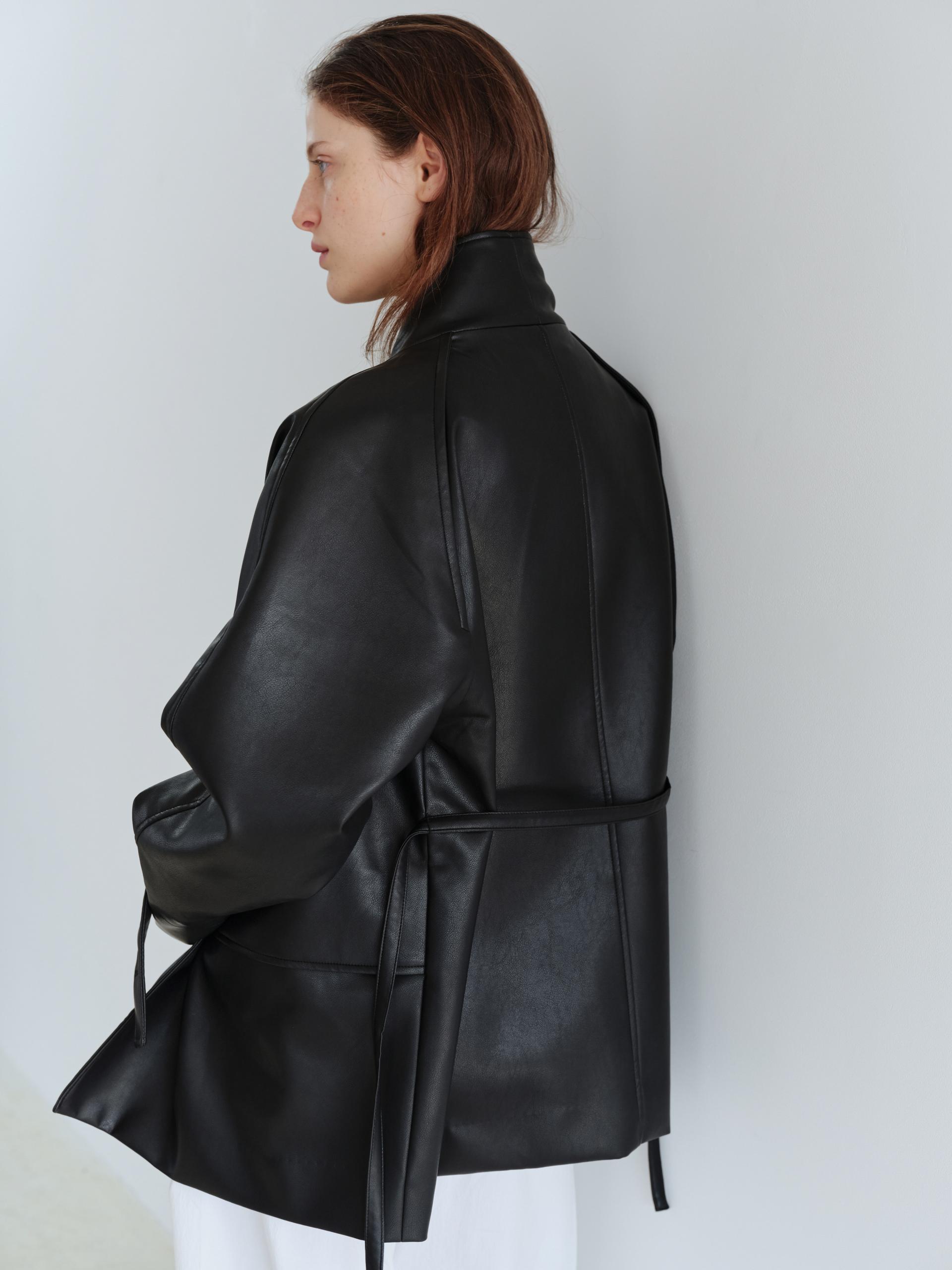 vent half trench coat (leather black)