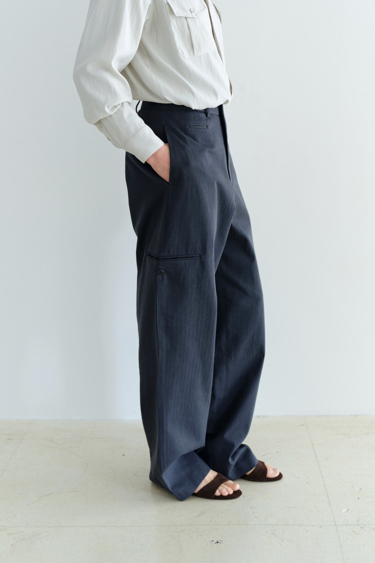 - 고밀도 코튼 원단을 베이스로 바이오 가공한 헤링본 텍스처 원단이 특징입니다.