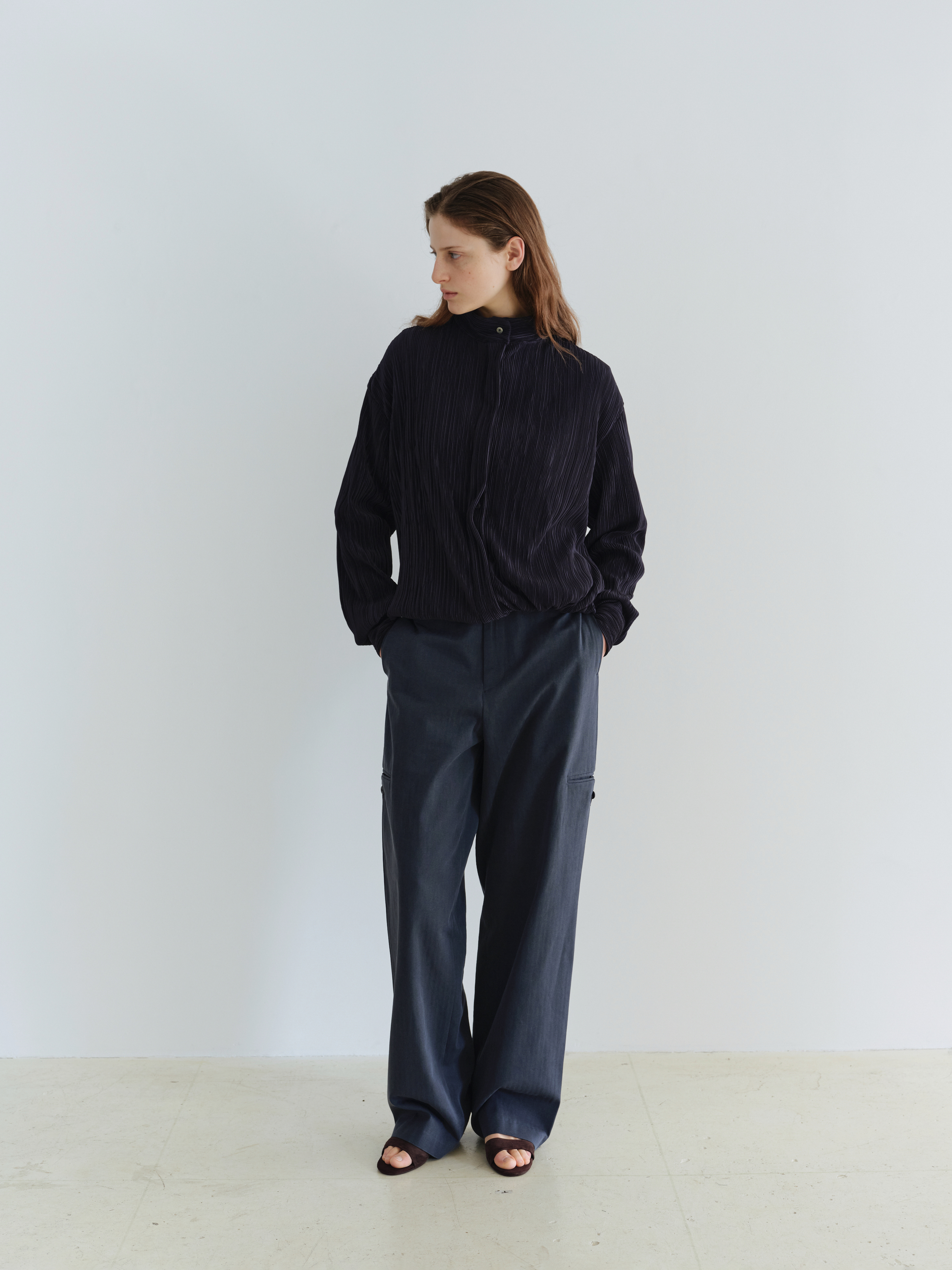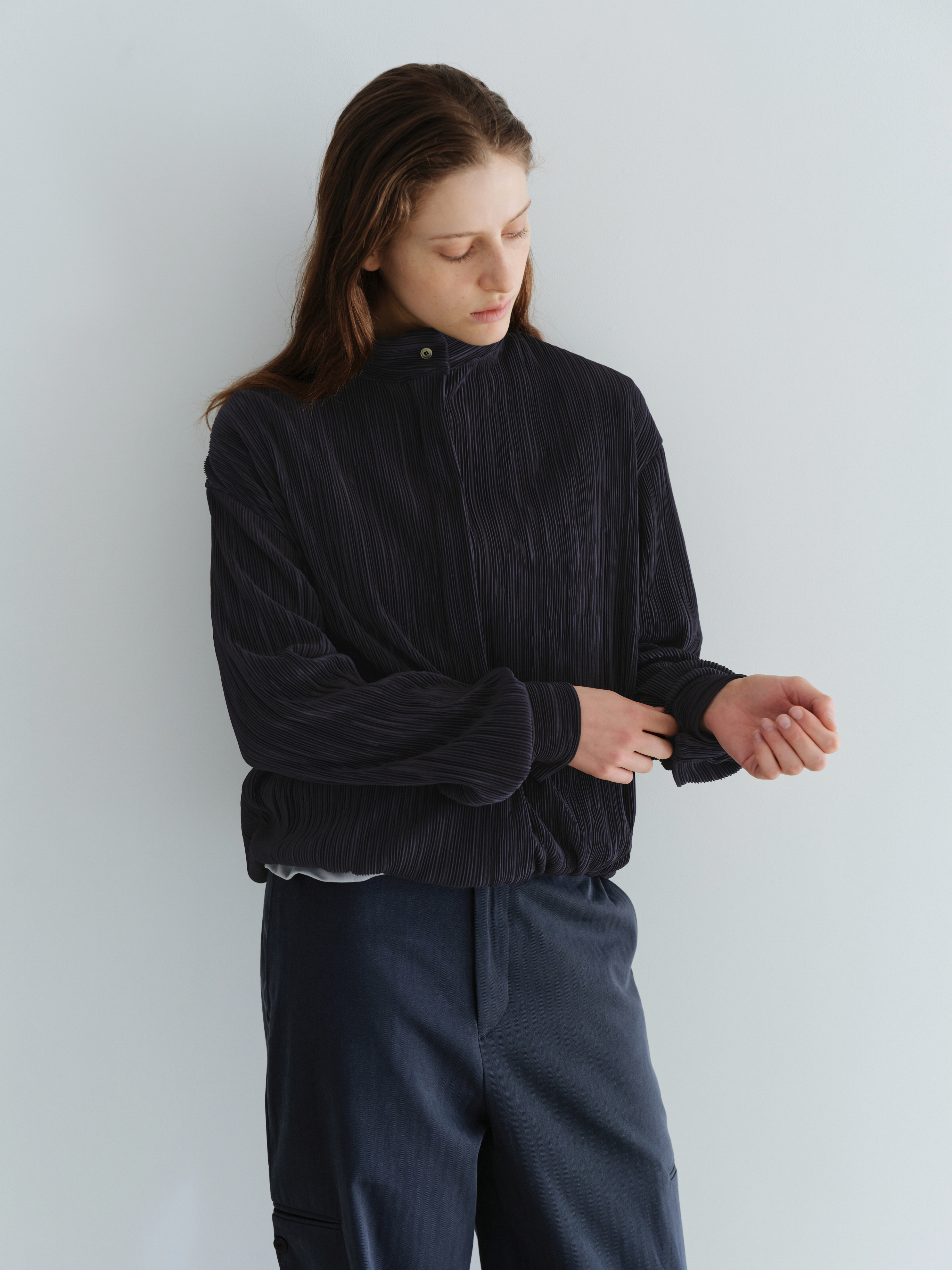 - 적당한 두께감과 섬세한 플리츠 텍스처가 돋보이는 블라우스 겸 아우터입니다.