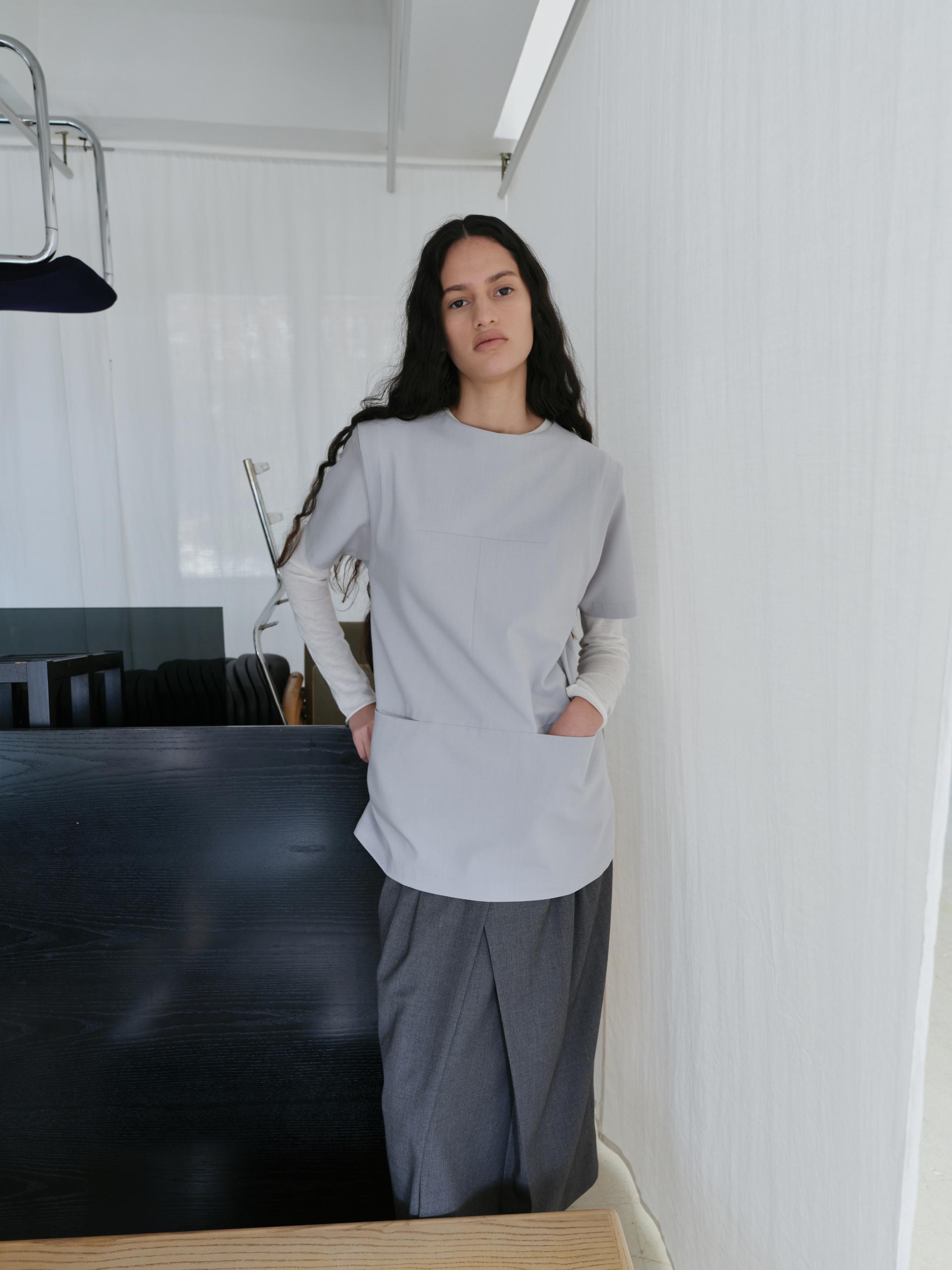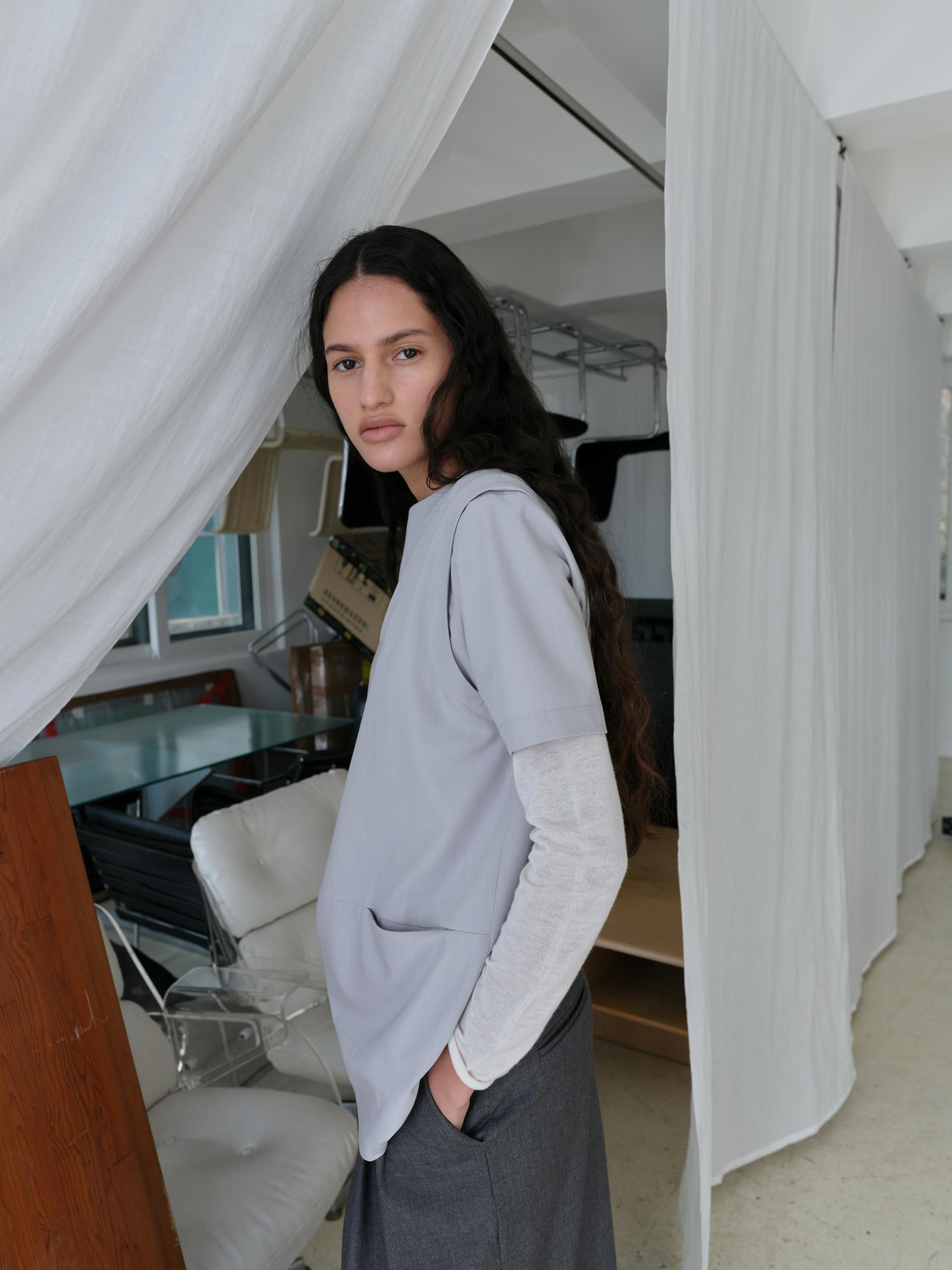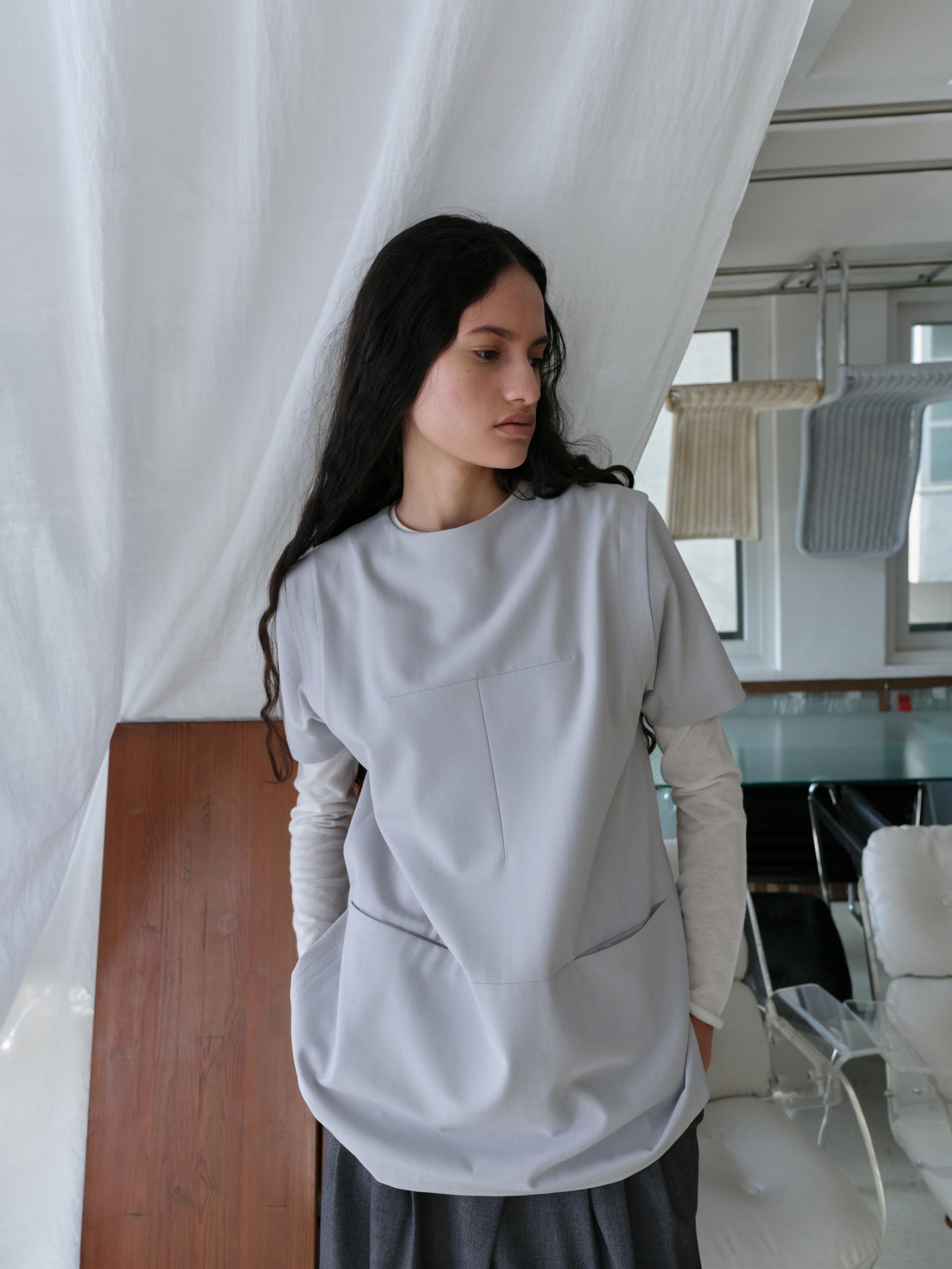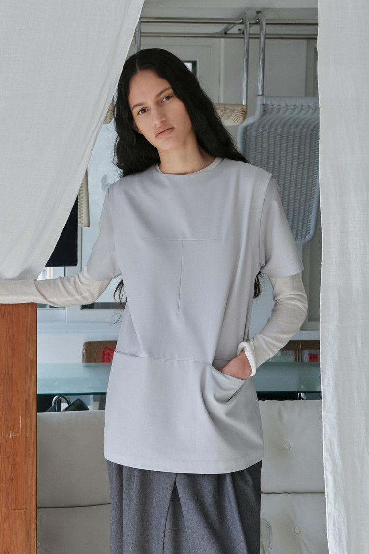 - 구조적인 절개 라인이 더해진 소매는 형태를 선명하게 드러내며, 간결한 실루엣에 입체감을 더합니다.