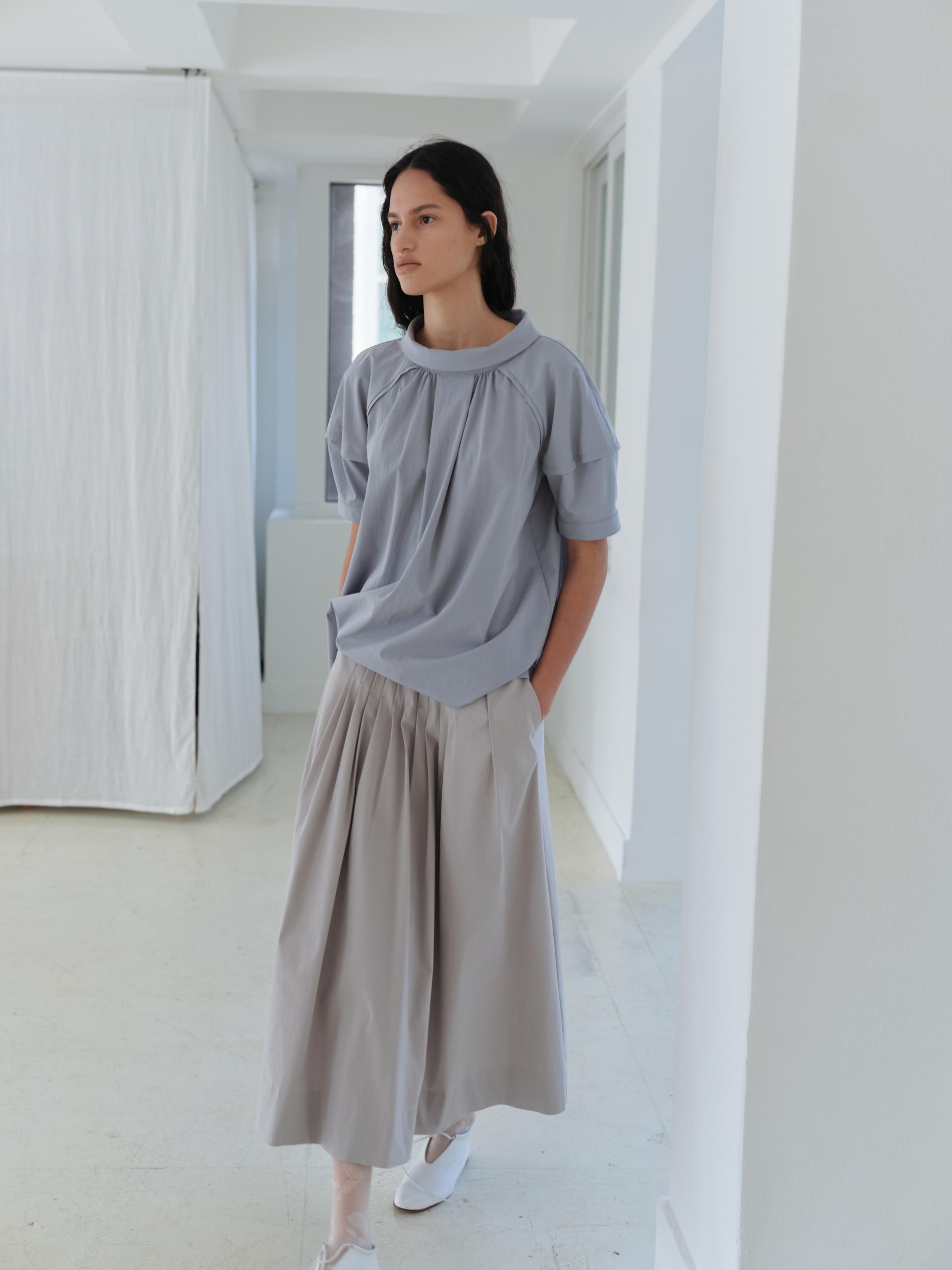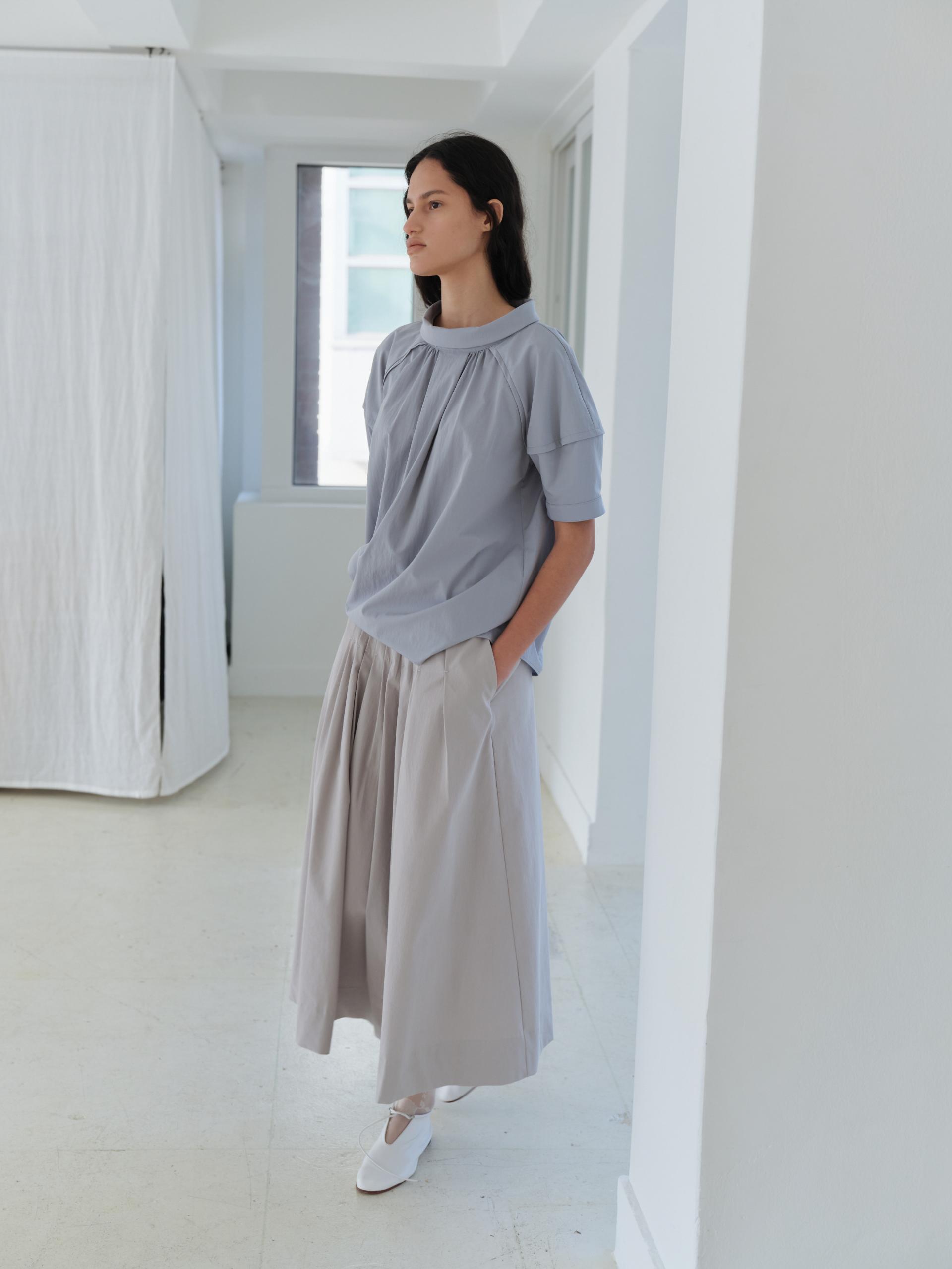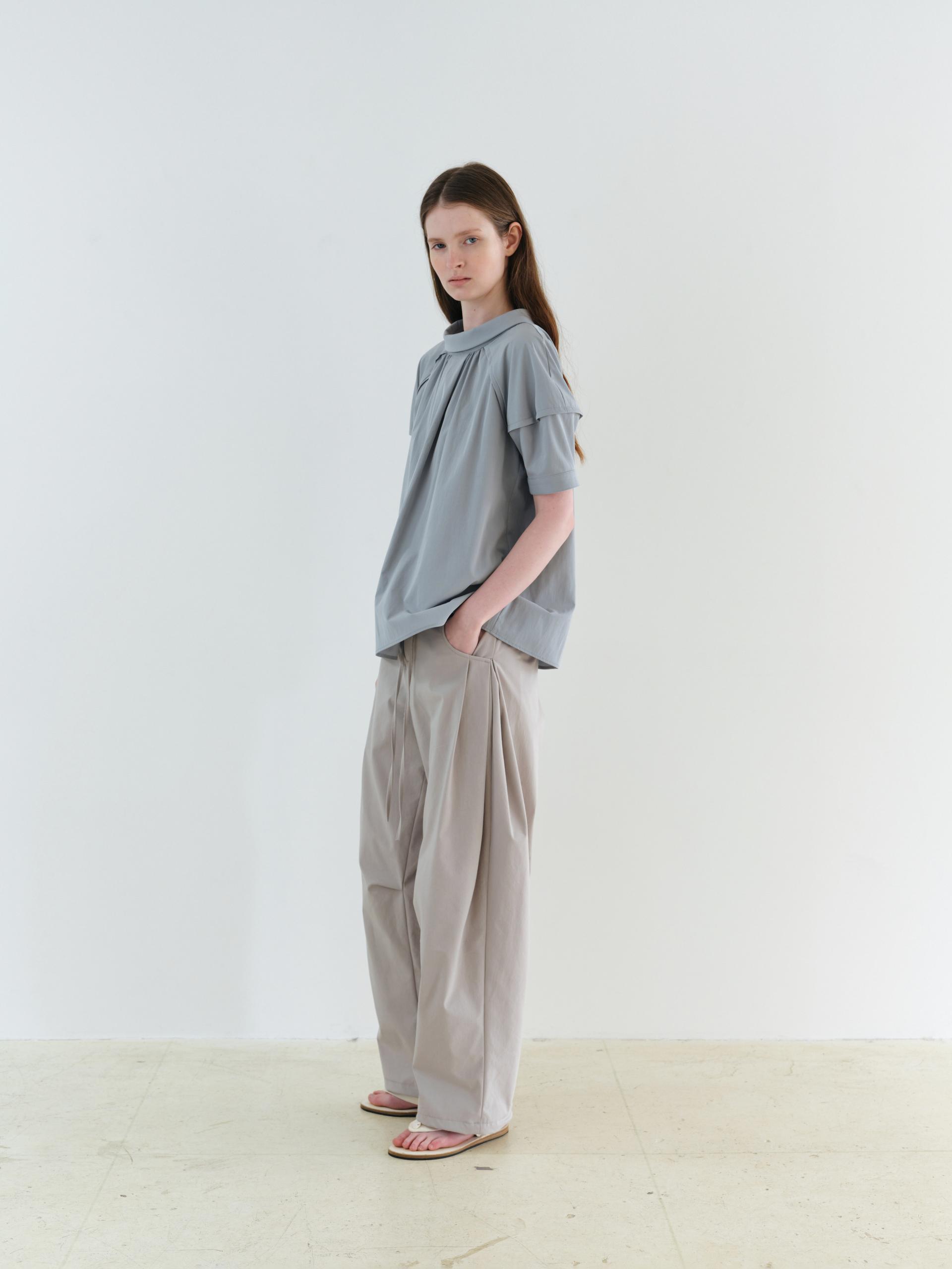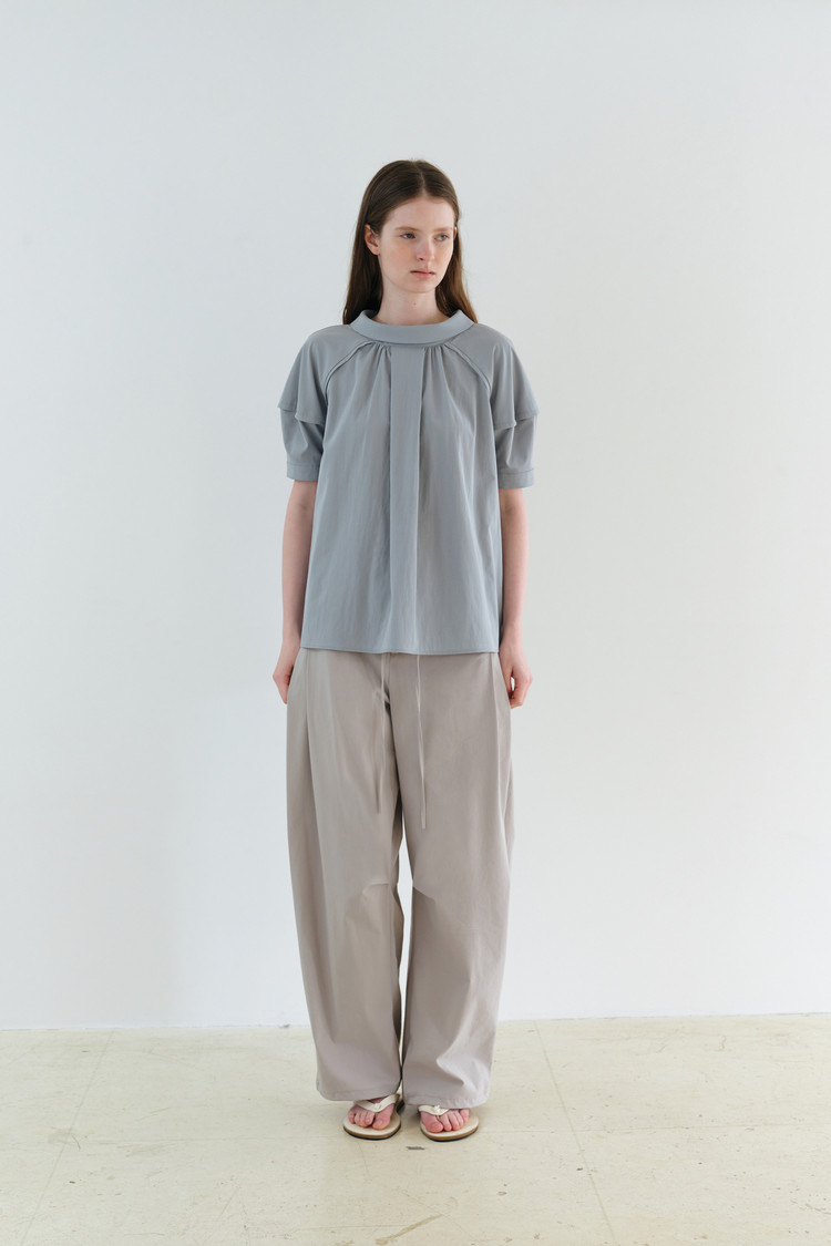 - 앞 중심에는 턱 디테일을 더해 형태를 선명하게 만들었으며, 턱 양옆으로 이어지는 셔링이 분량을 형성해 자연스러운 입체감을 완성합니다.