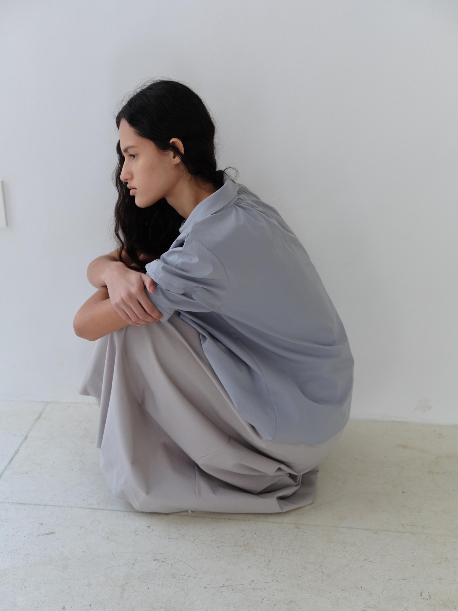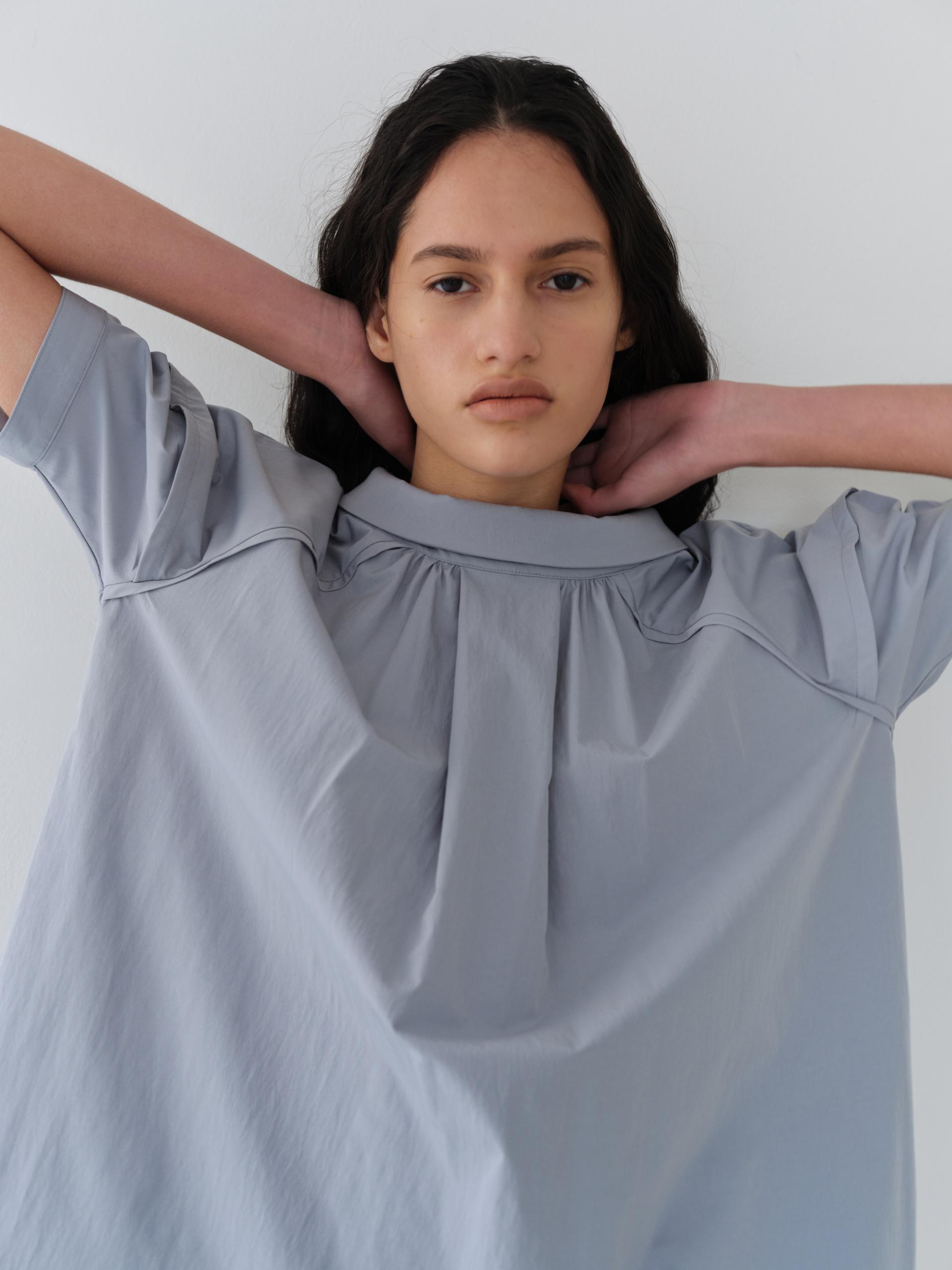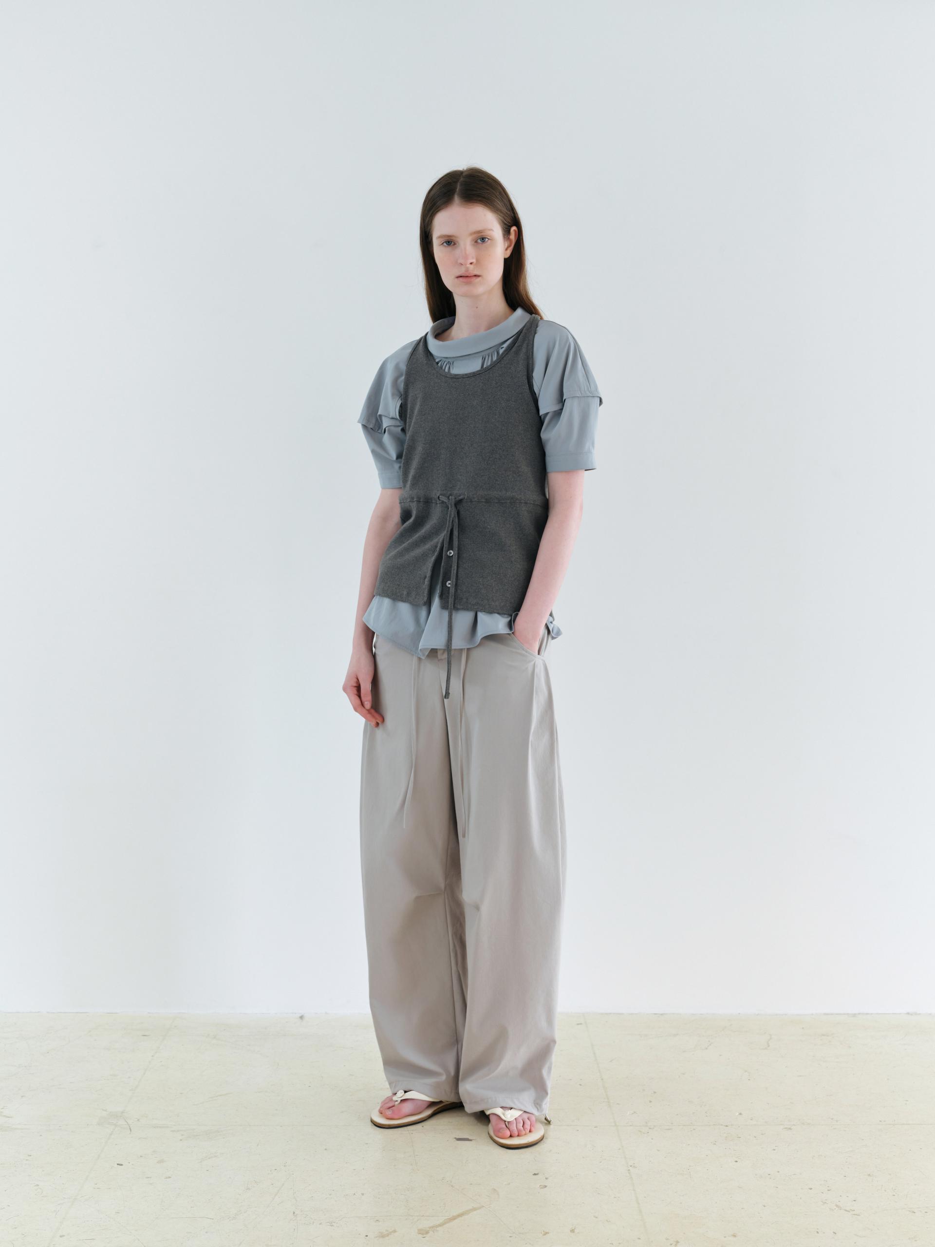 - 앞 중심에는 턱 디테일을 더해 형태를 선명하게 만들었으며, 턱 양옆으로 이어지는 셔링이 분량을 형성해 자연스러운 입체감을 완성합니다.