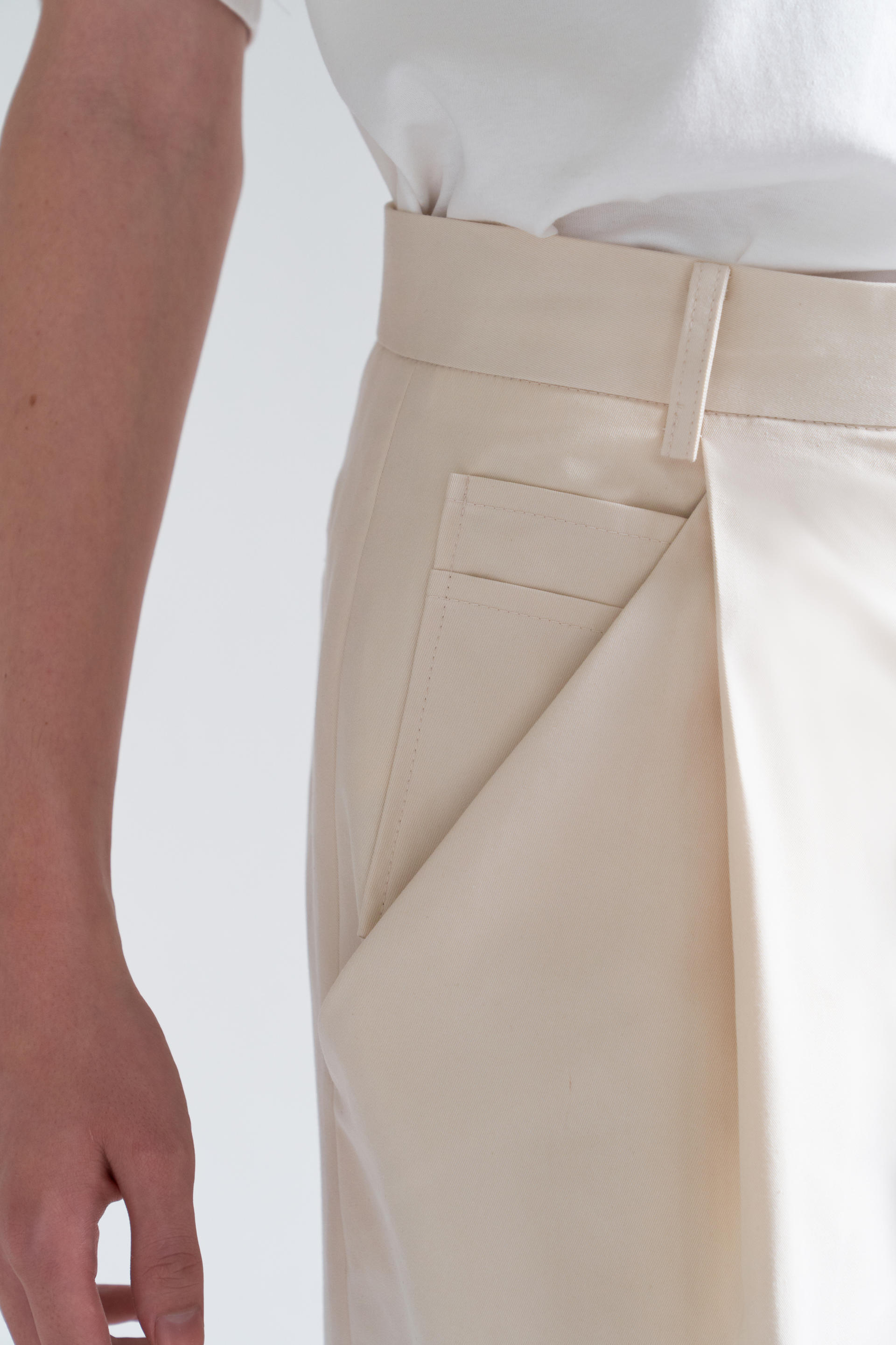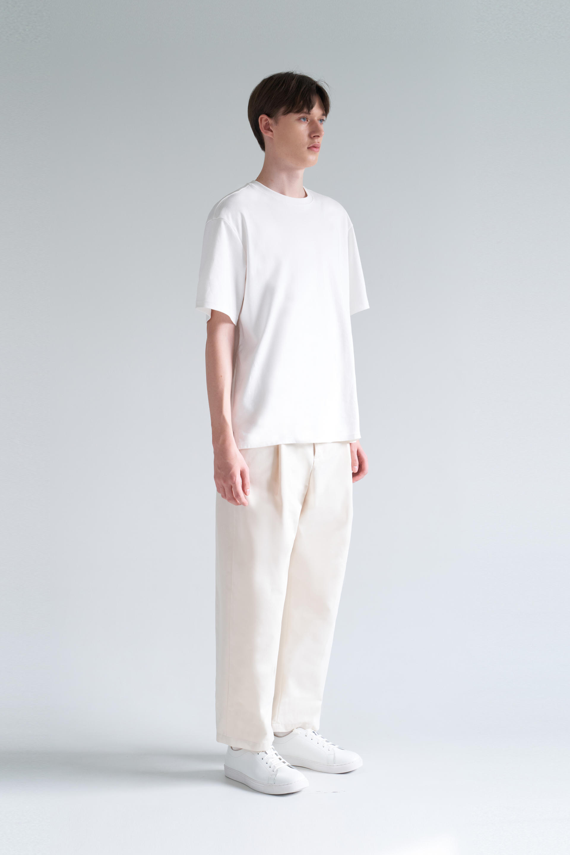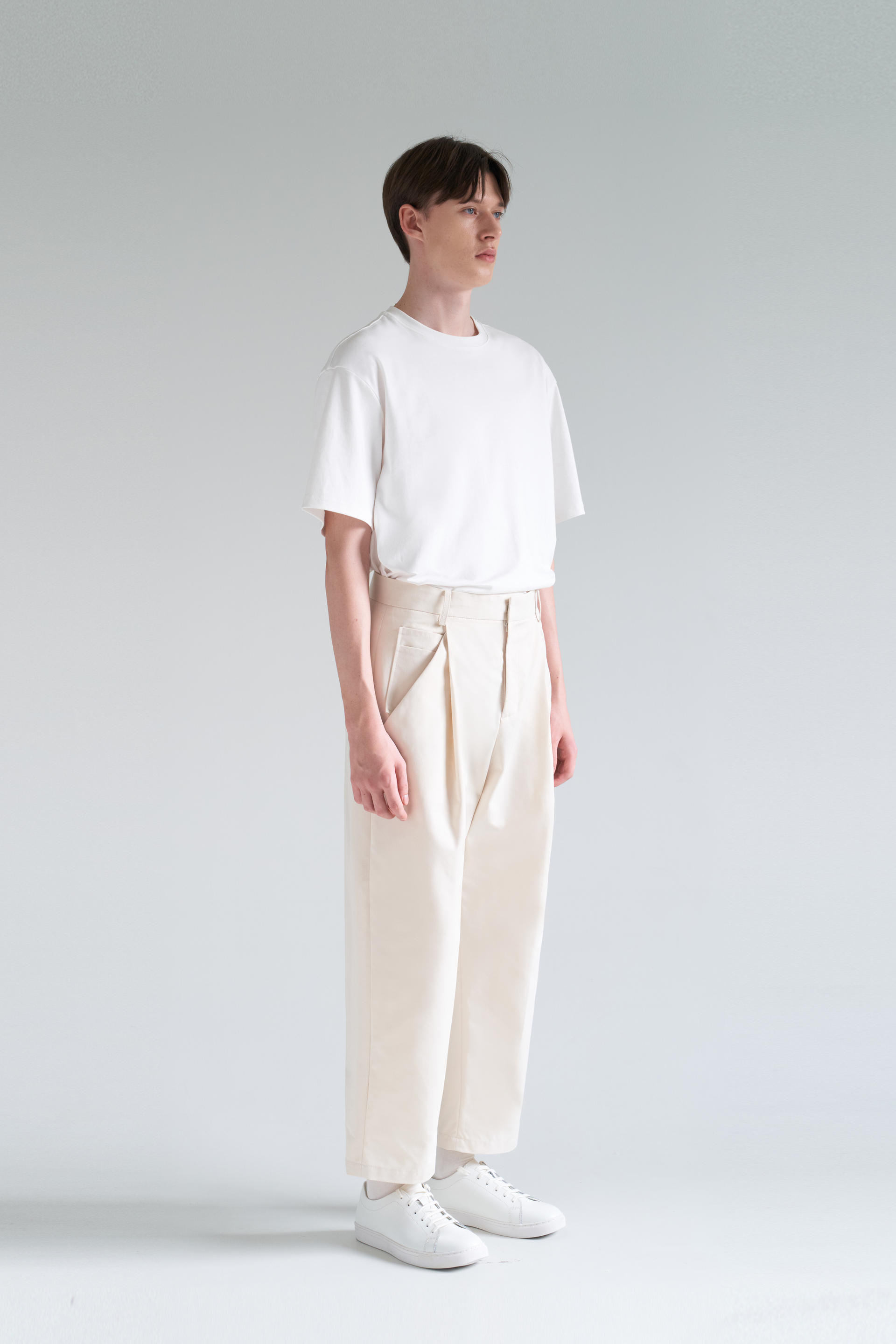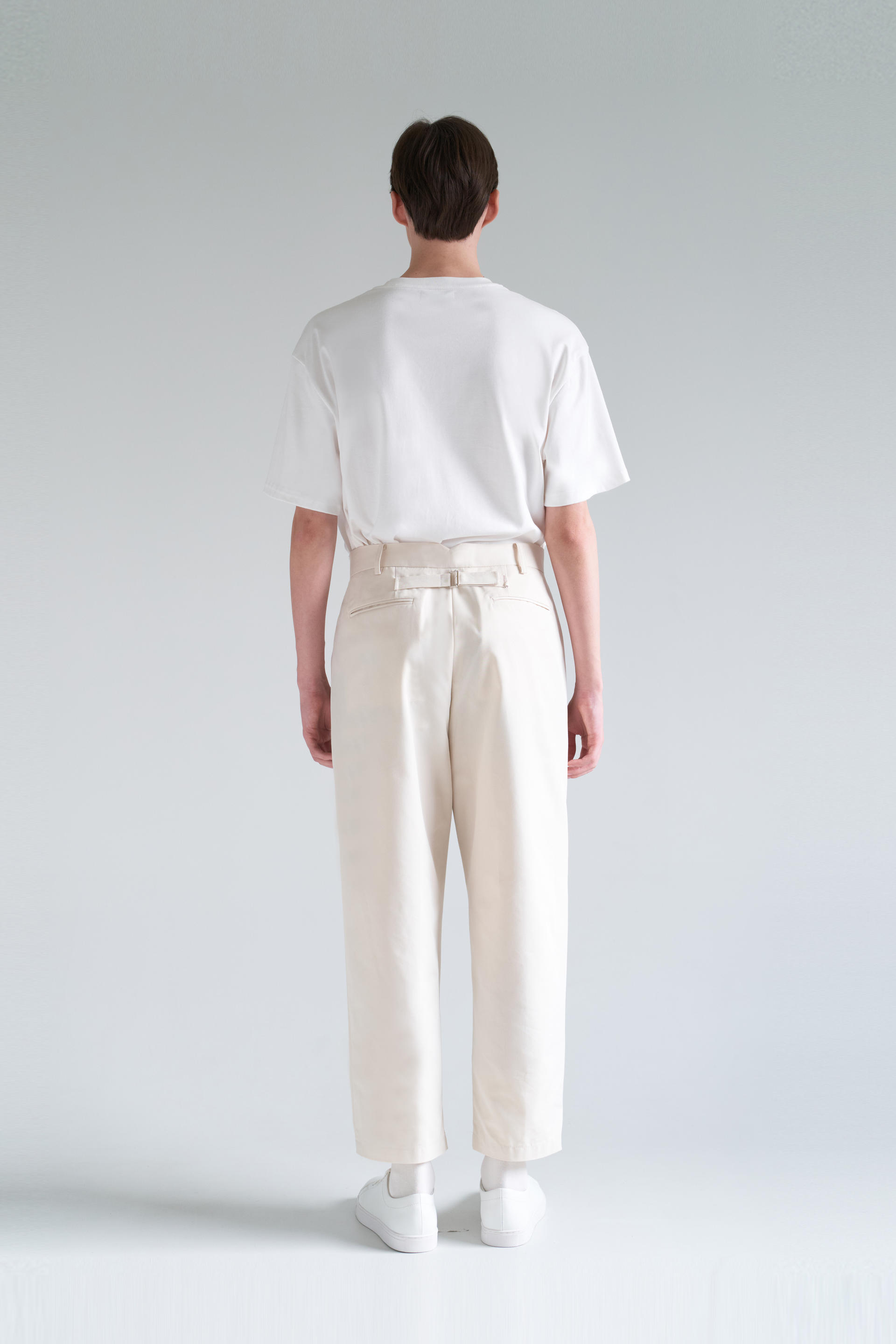 - 여유있는 실루엣으로 발목 까지 떨어지는 기장의 치노 팬츠입니다. 어느 각도에서 보아도 완벽한 실루엣을 찾기 위해 수 차례 패터닝을 진행했습니다.