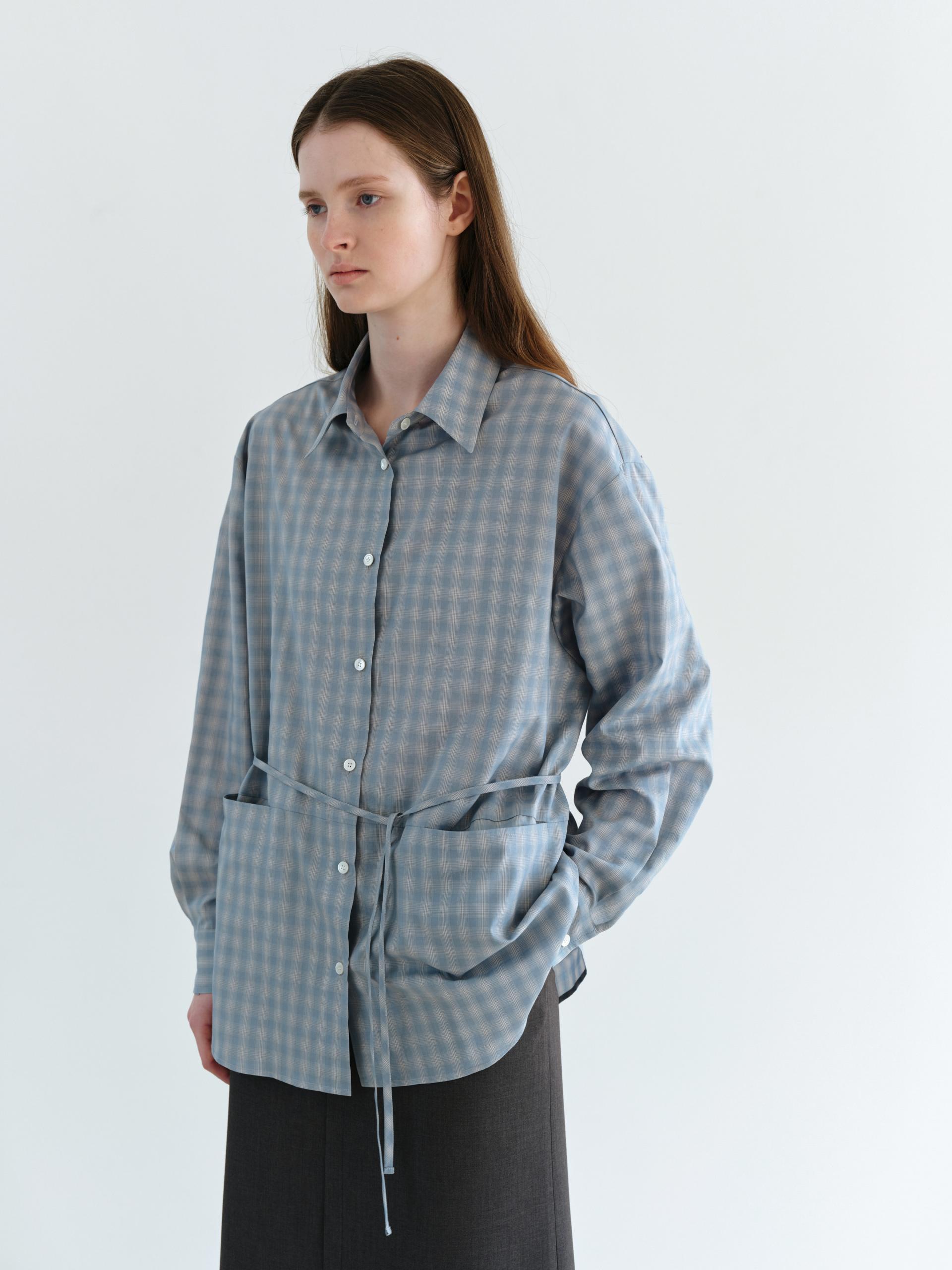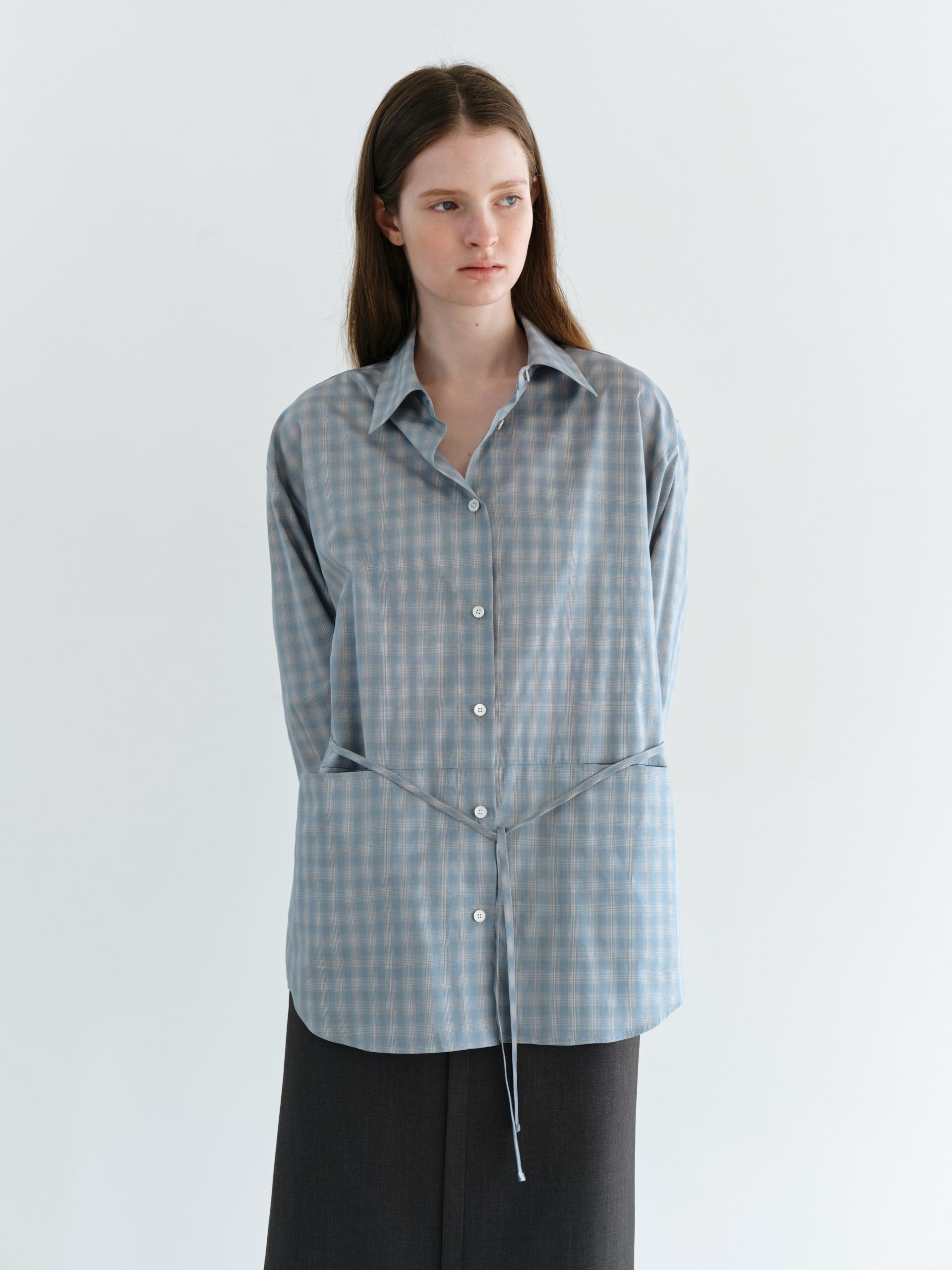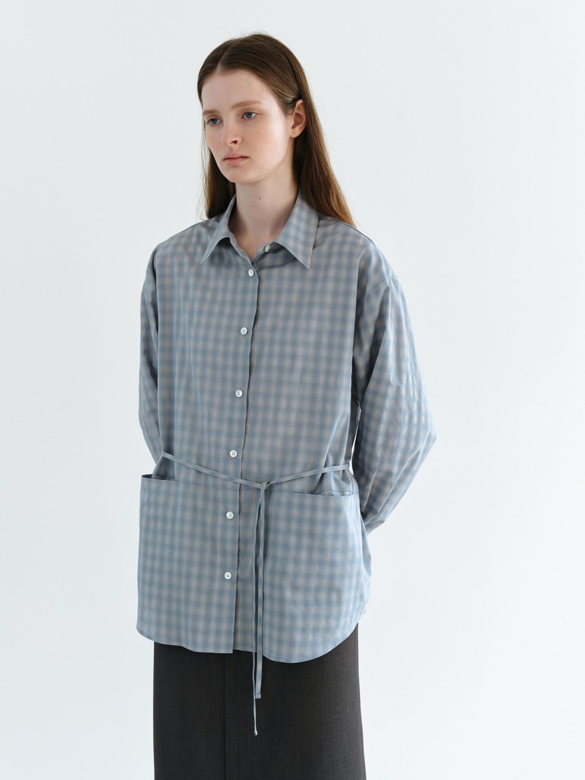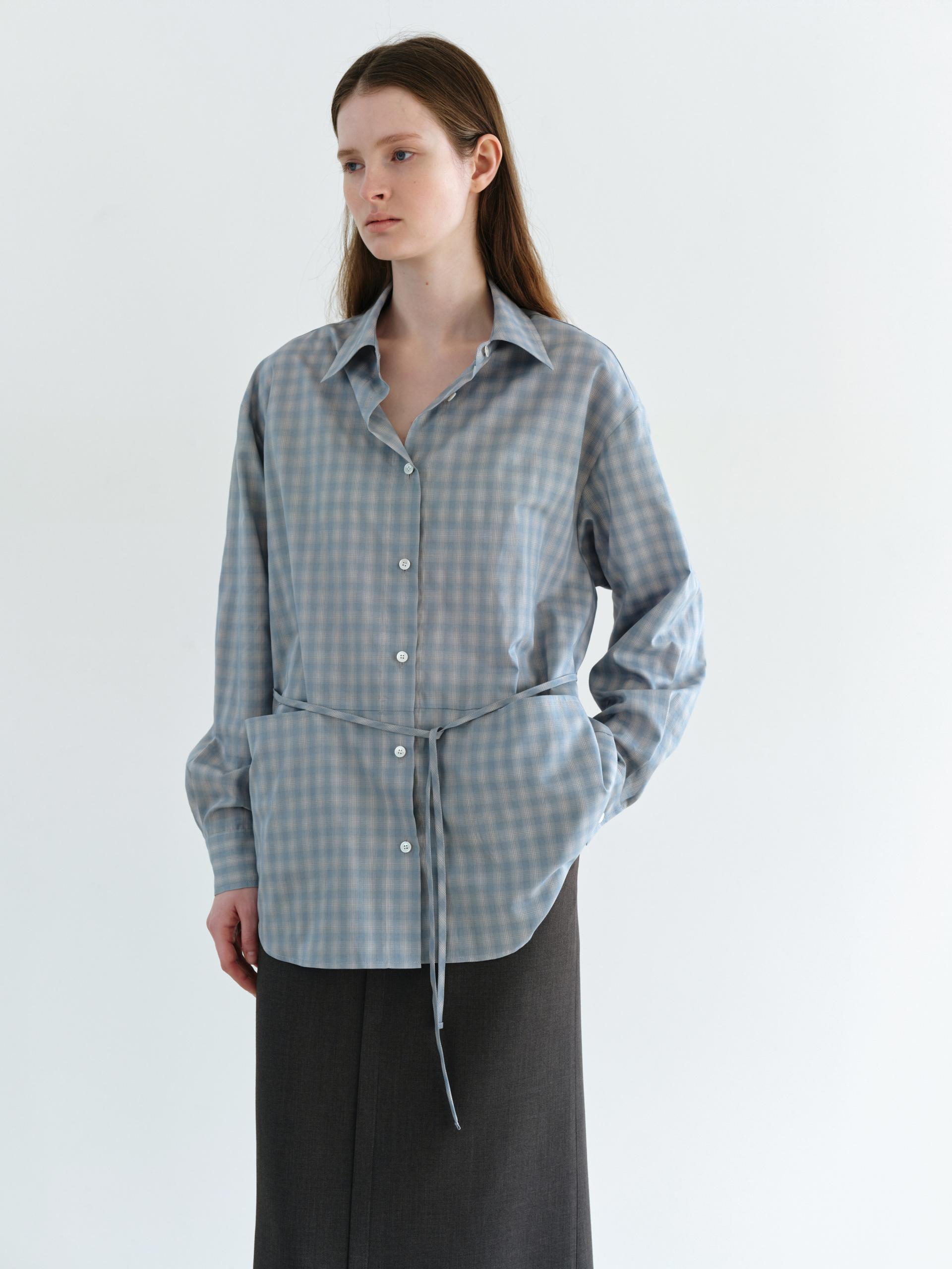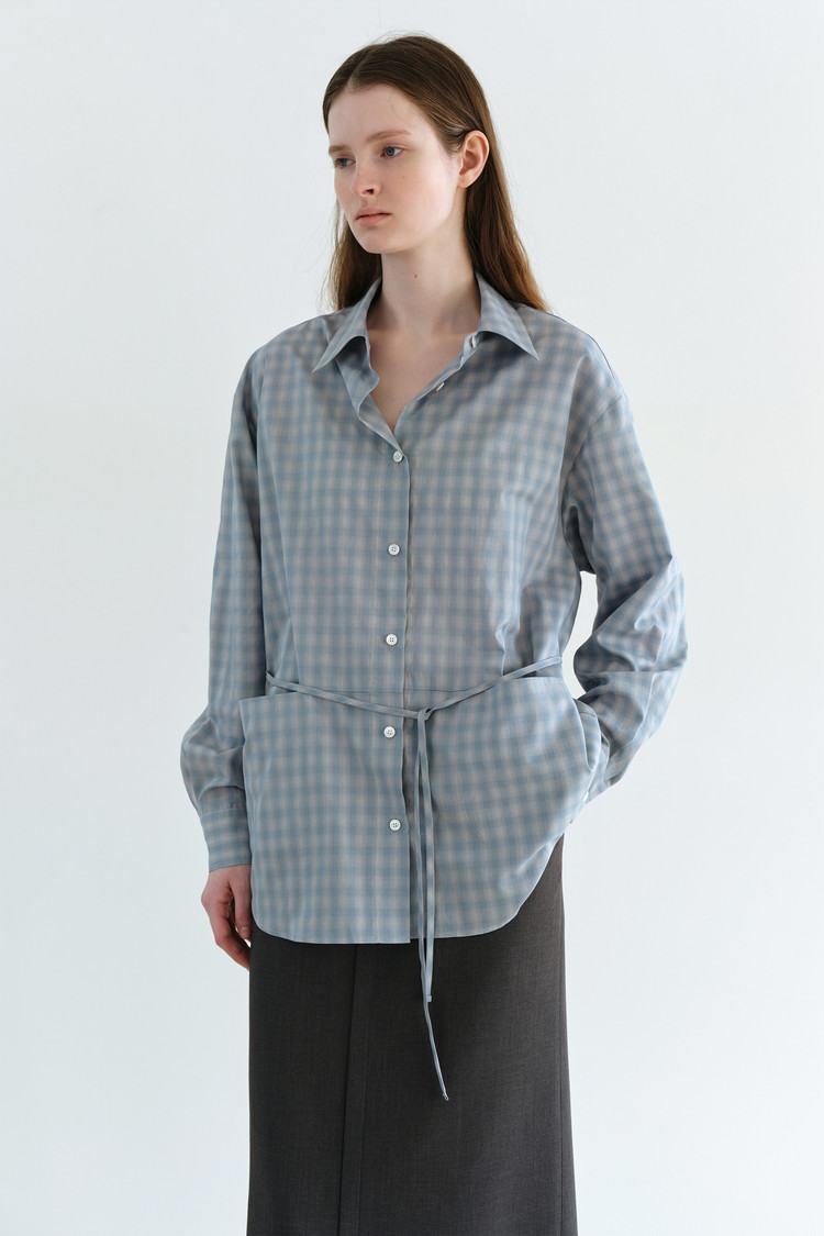 ease belted shirt (check blue)