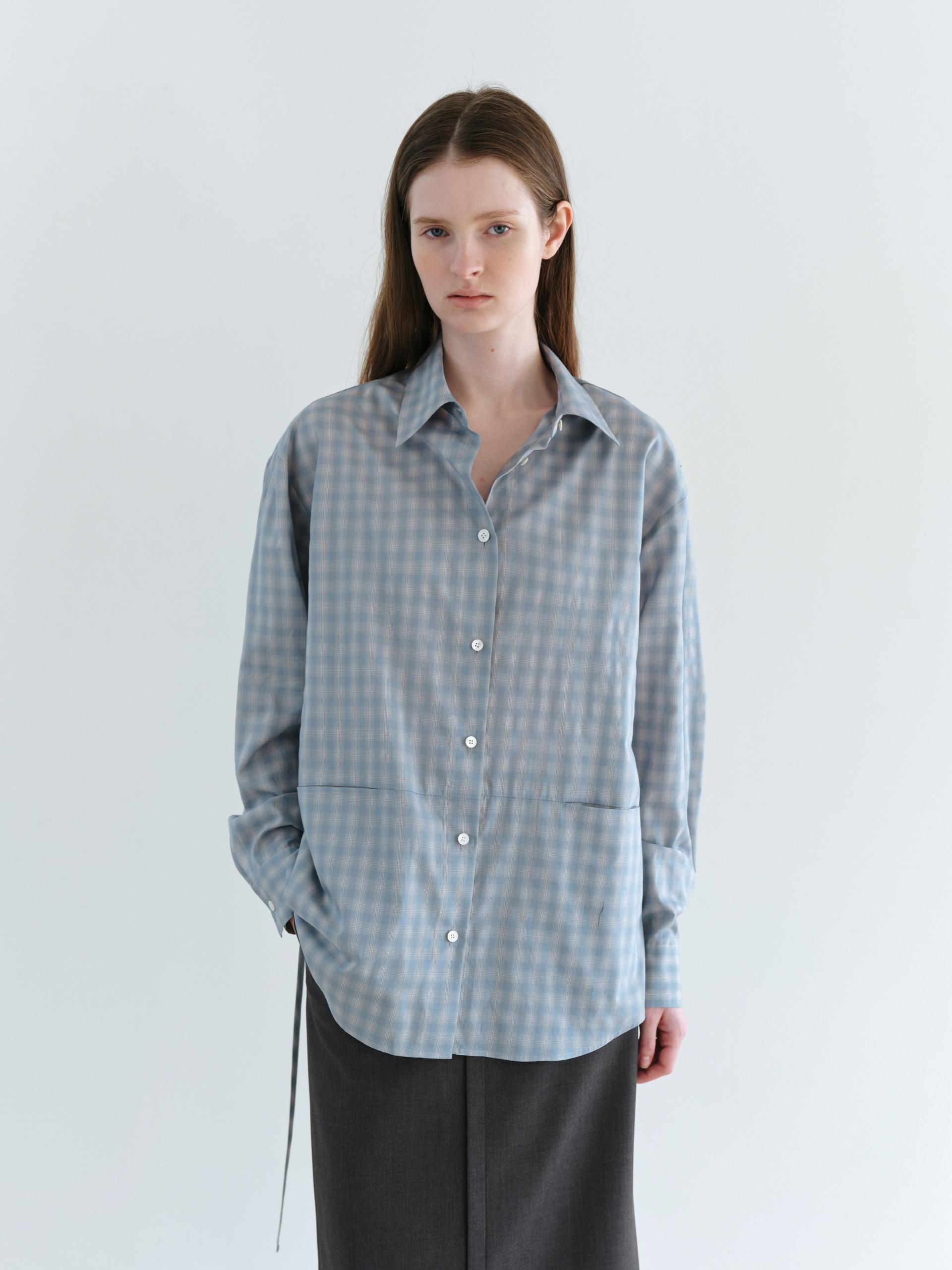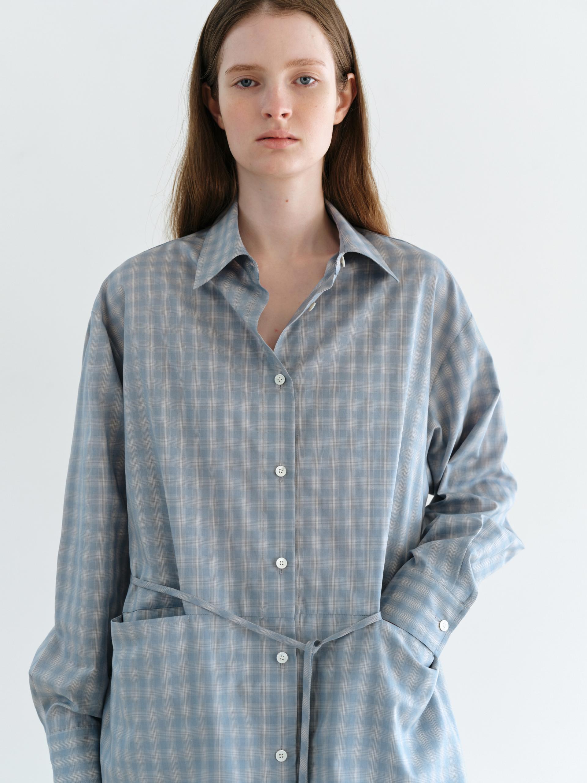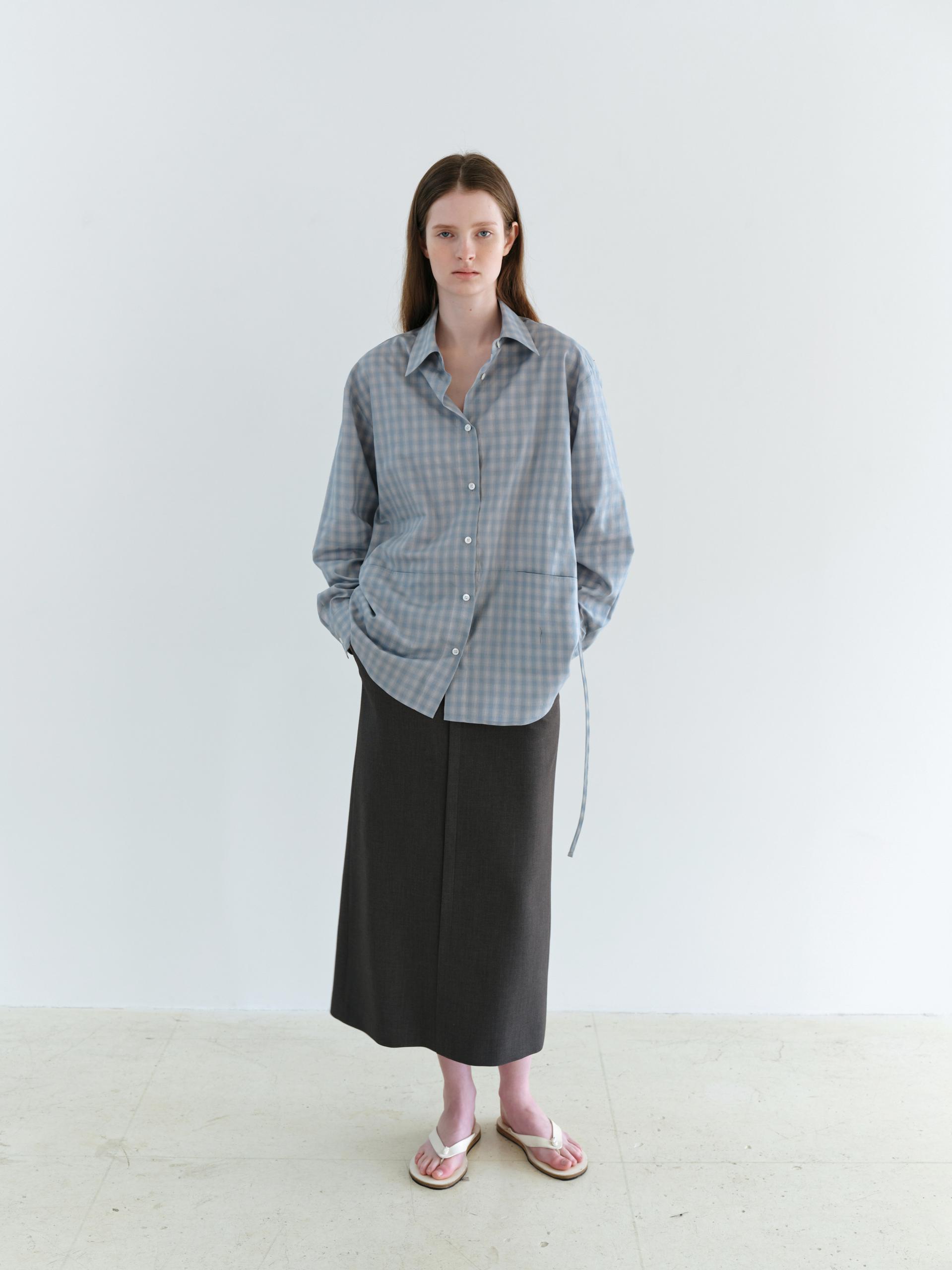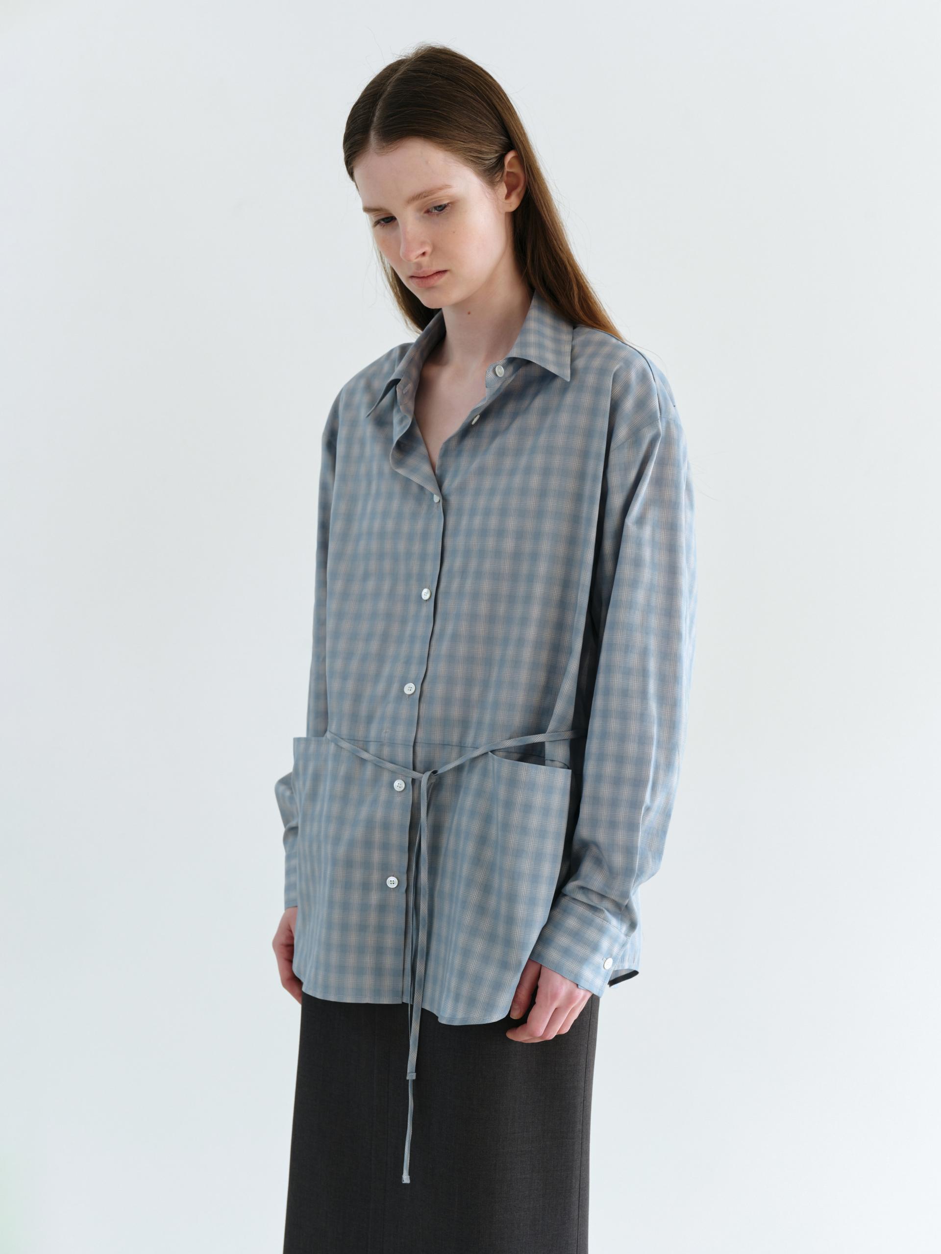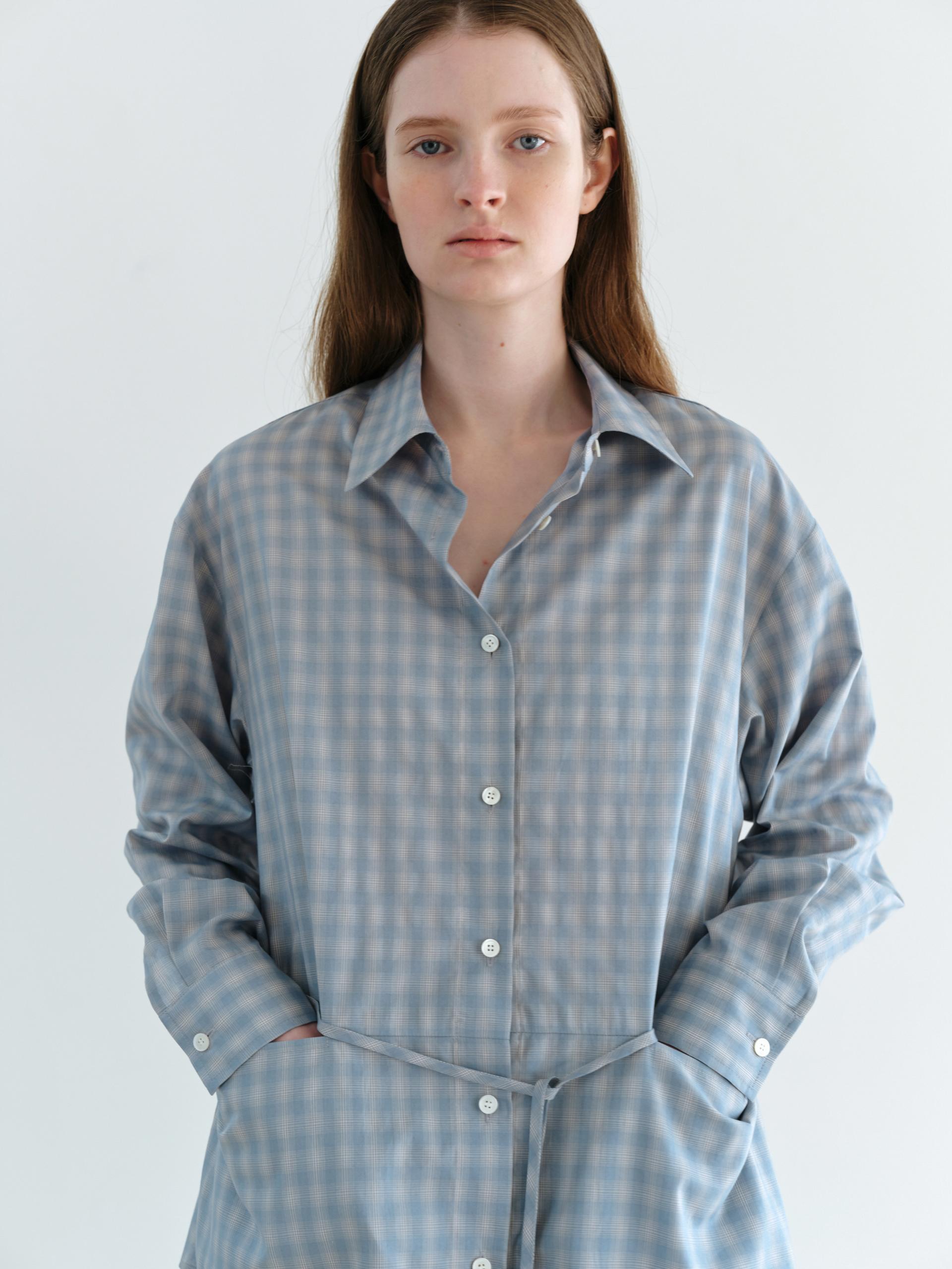 ease belted shirt (check blue)