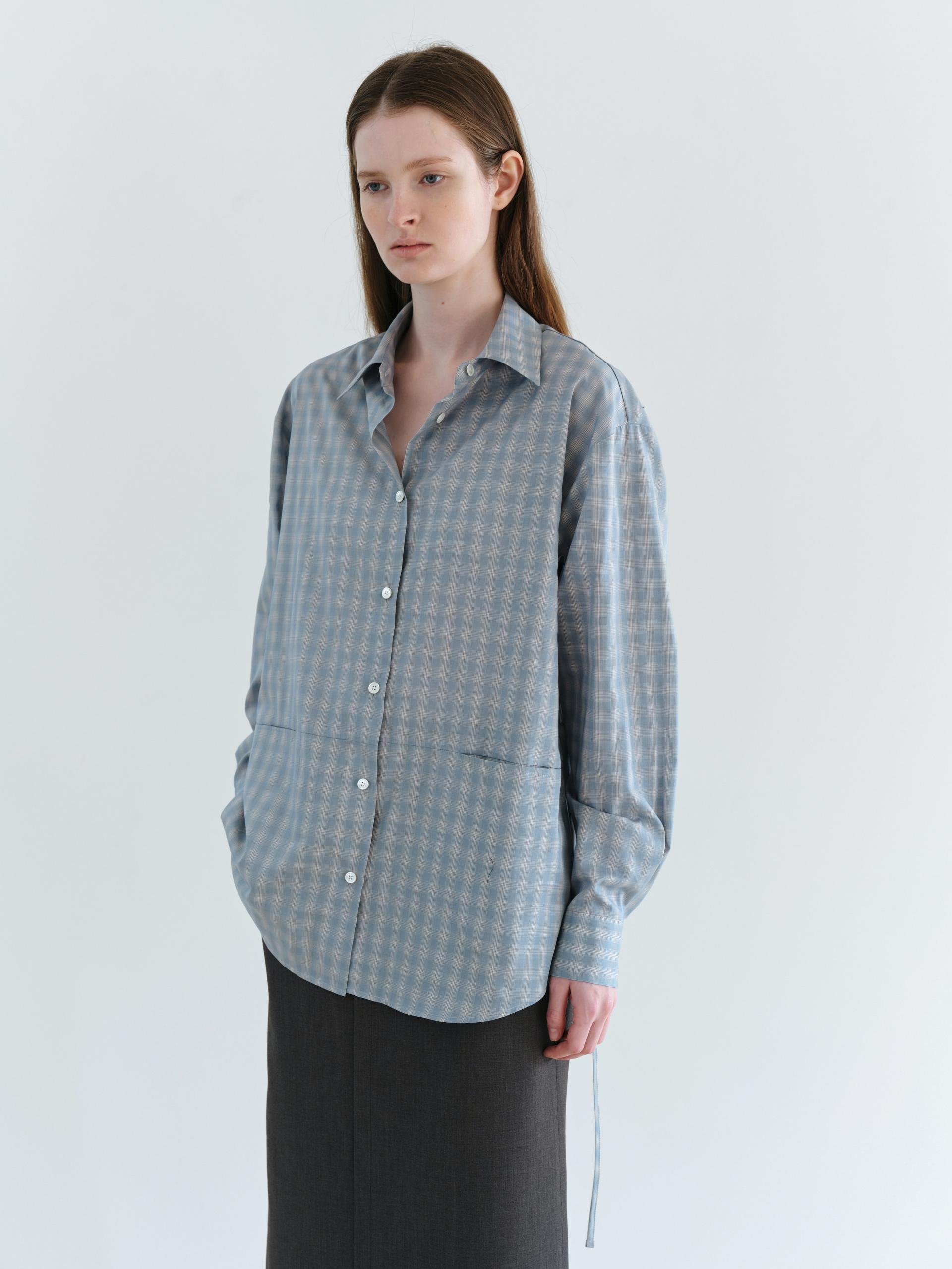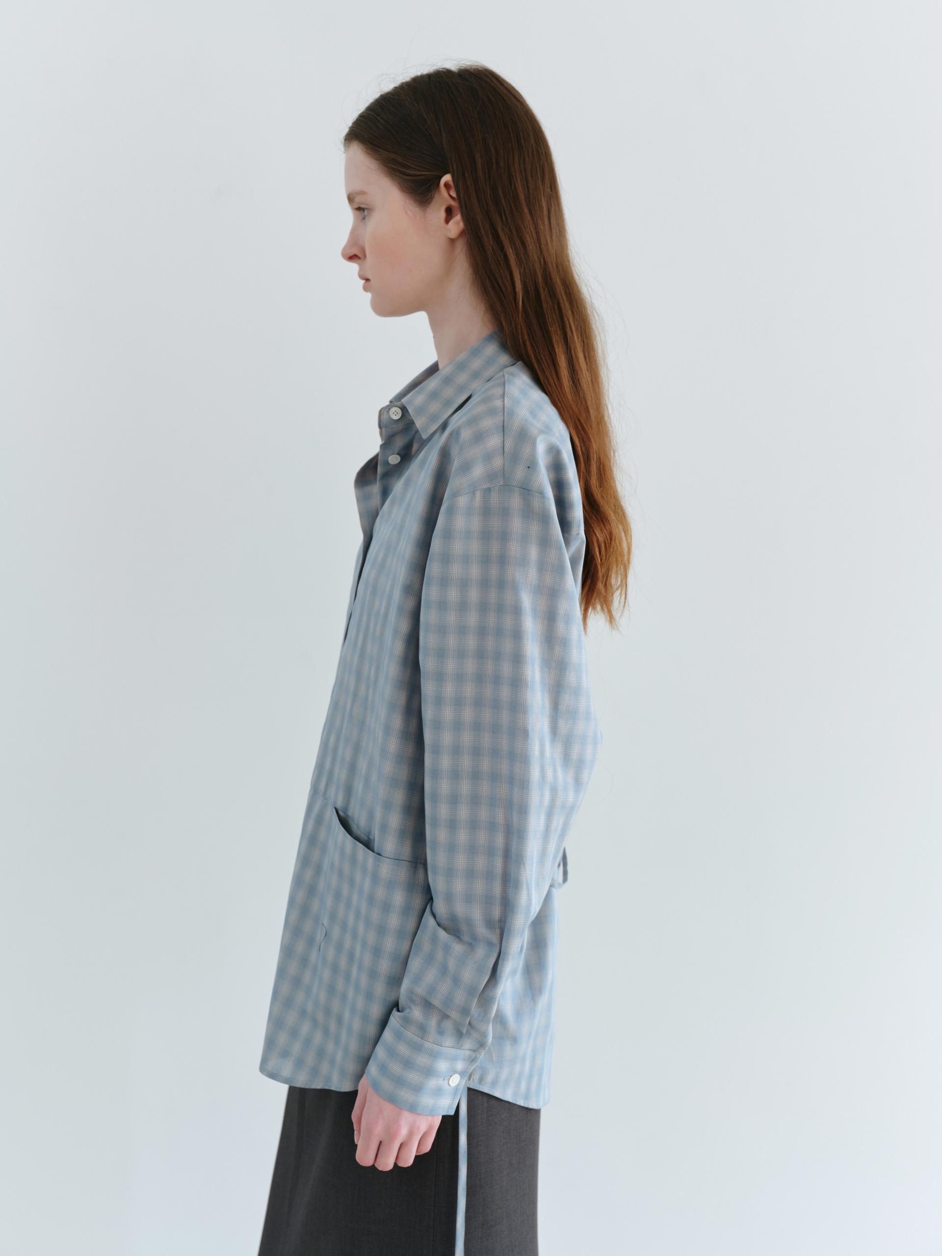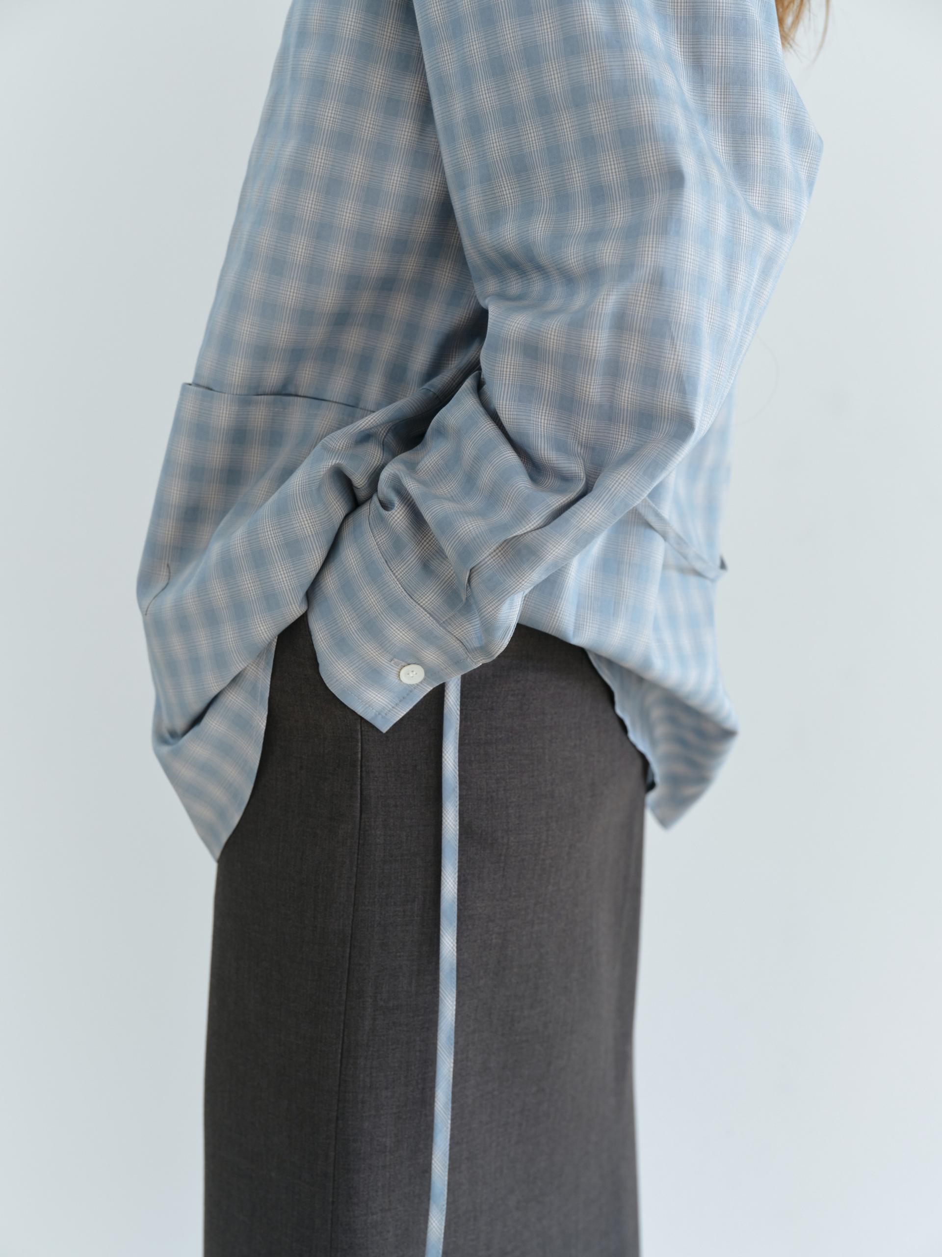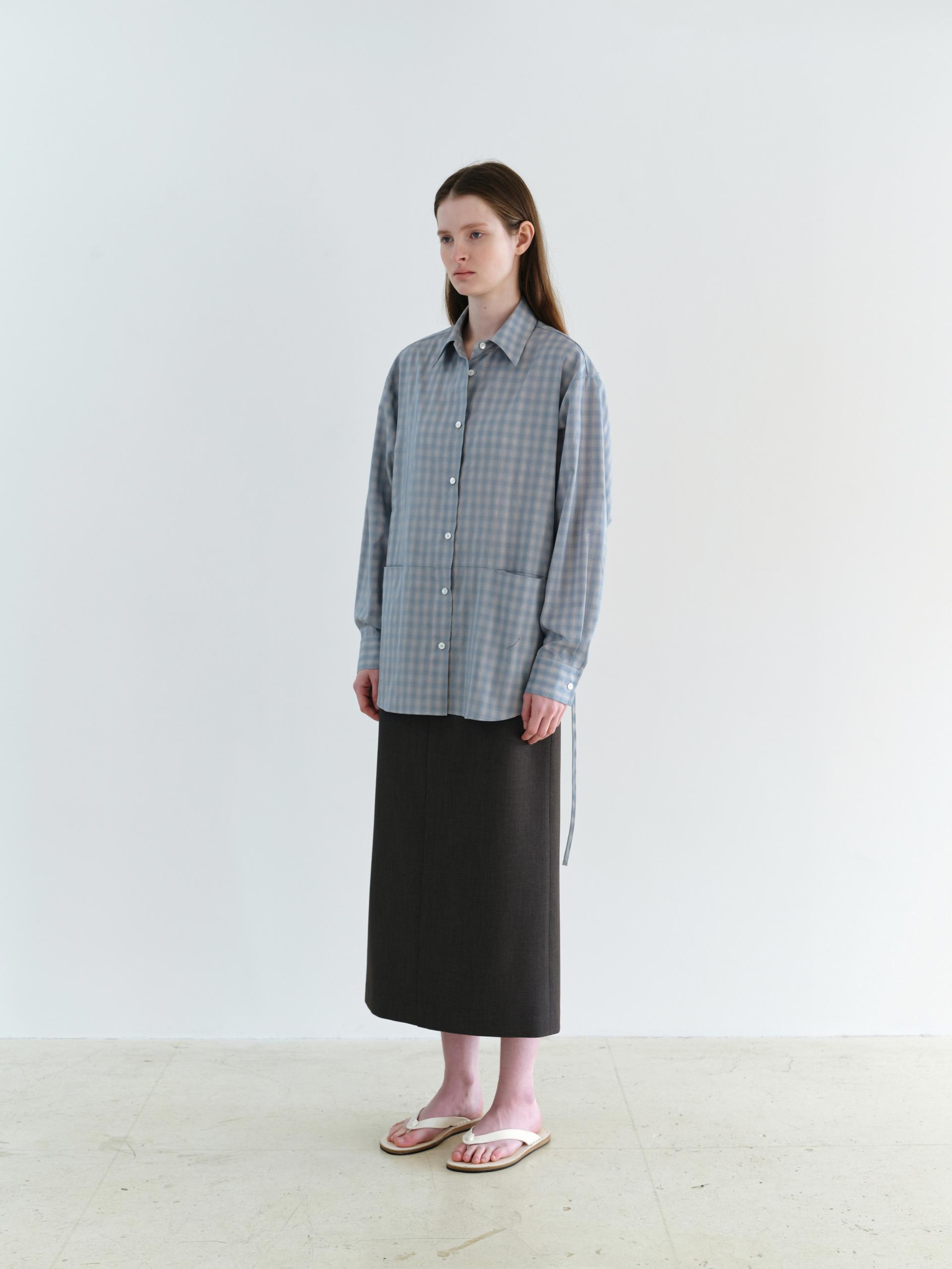 ease belted shirt (check blue)