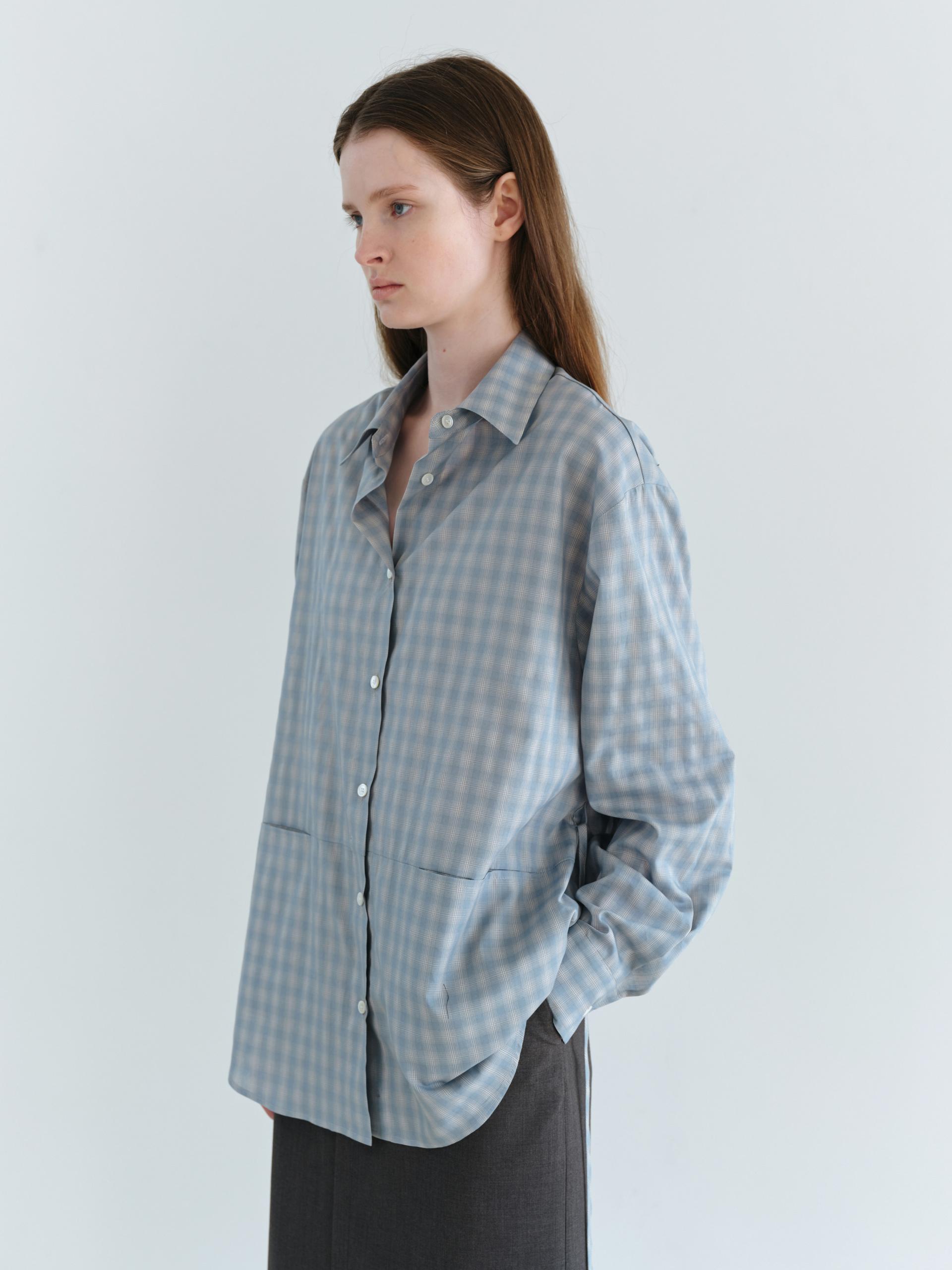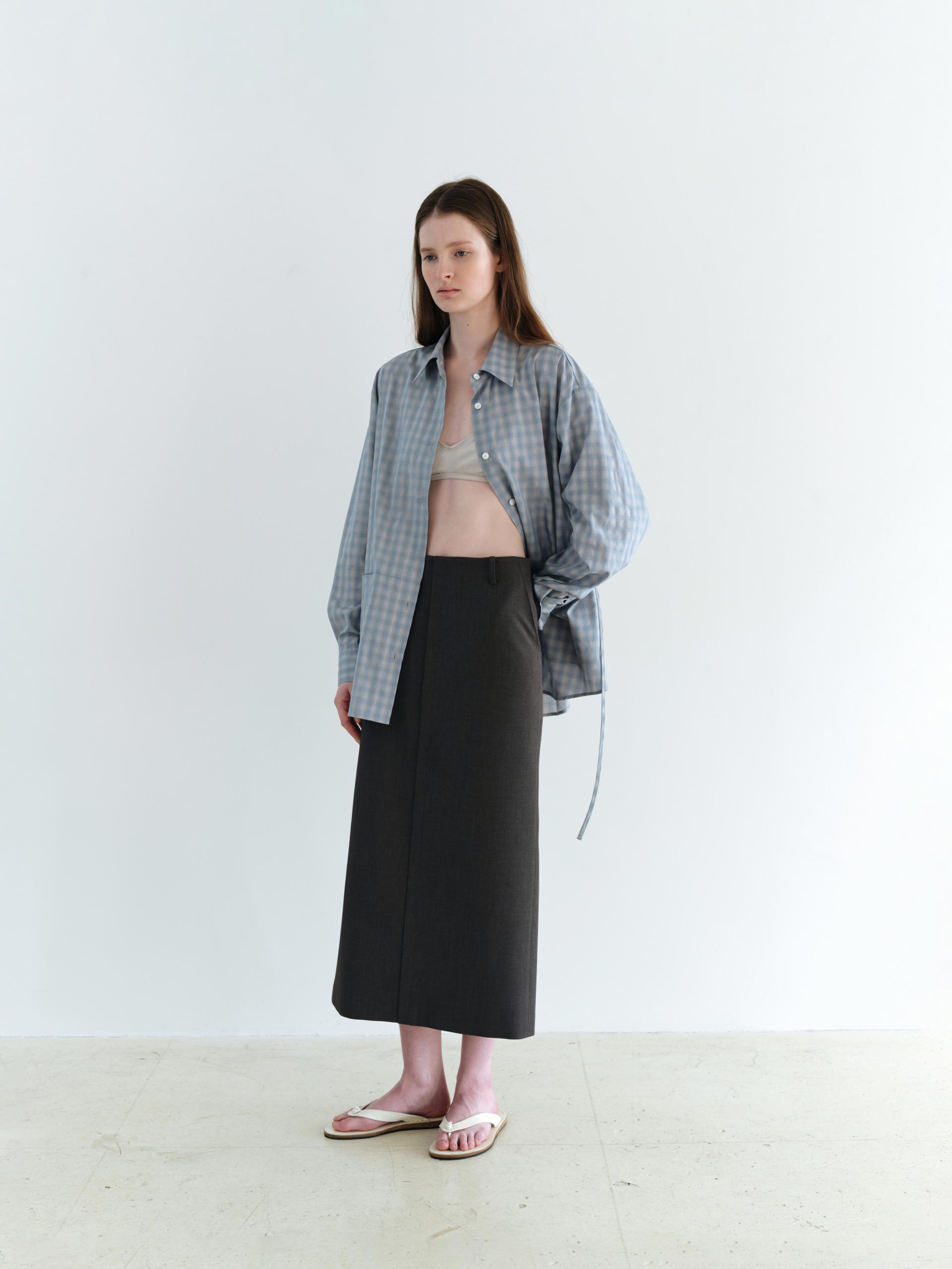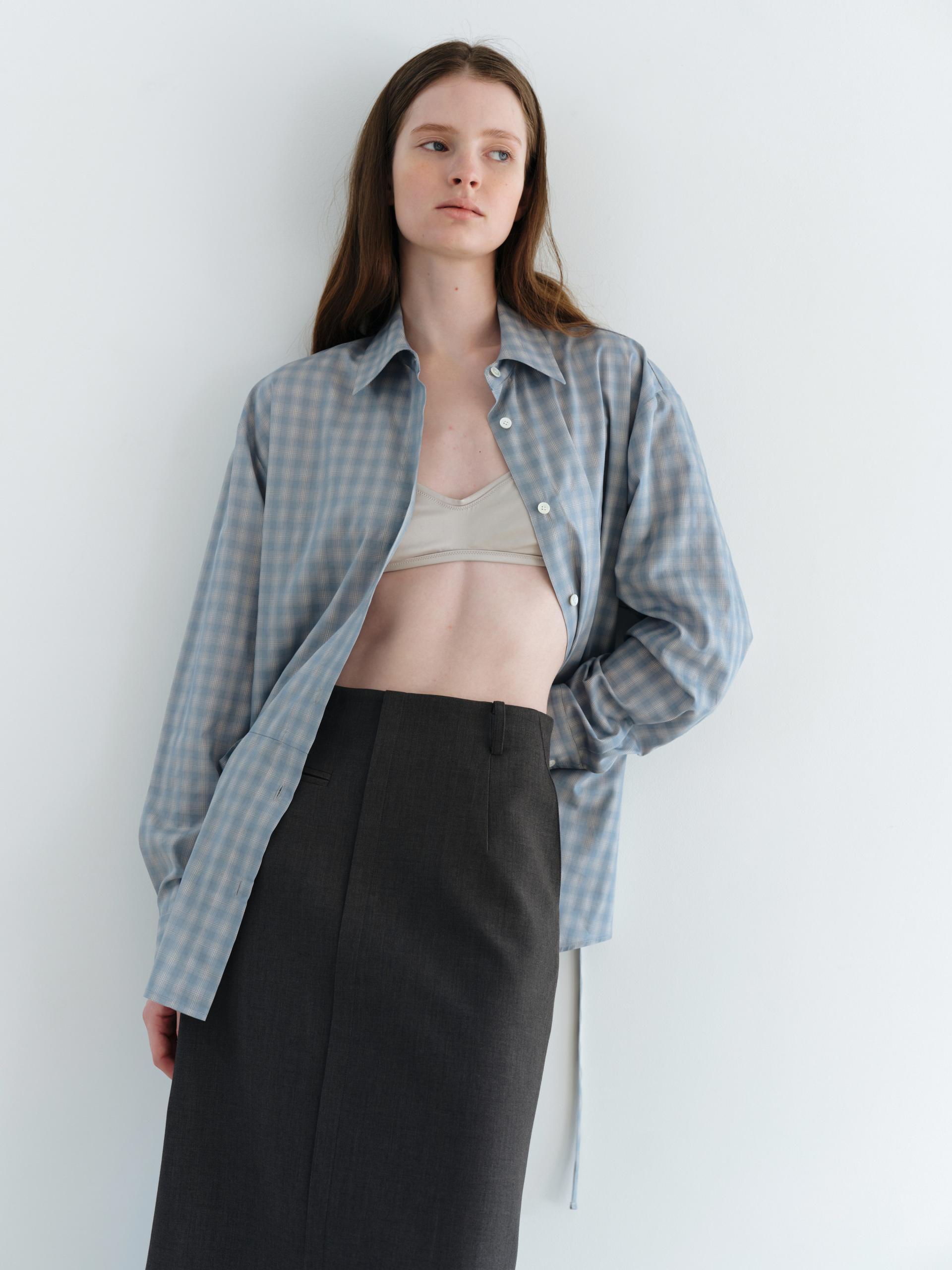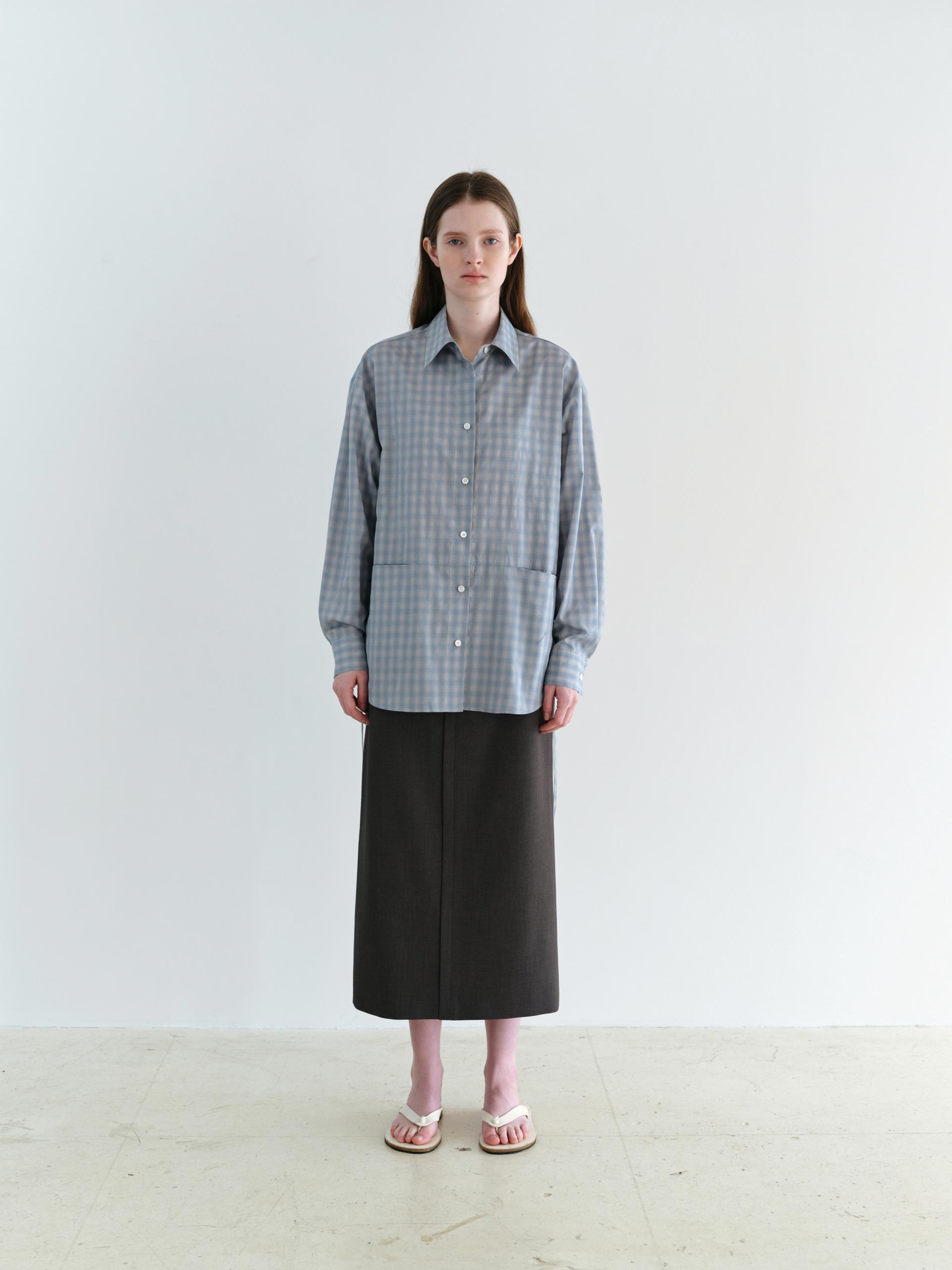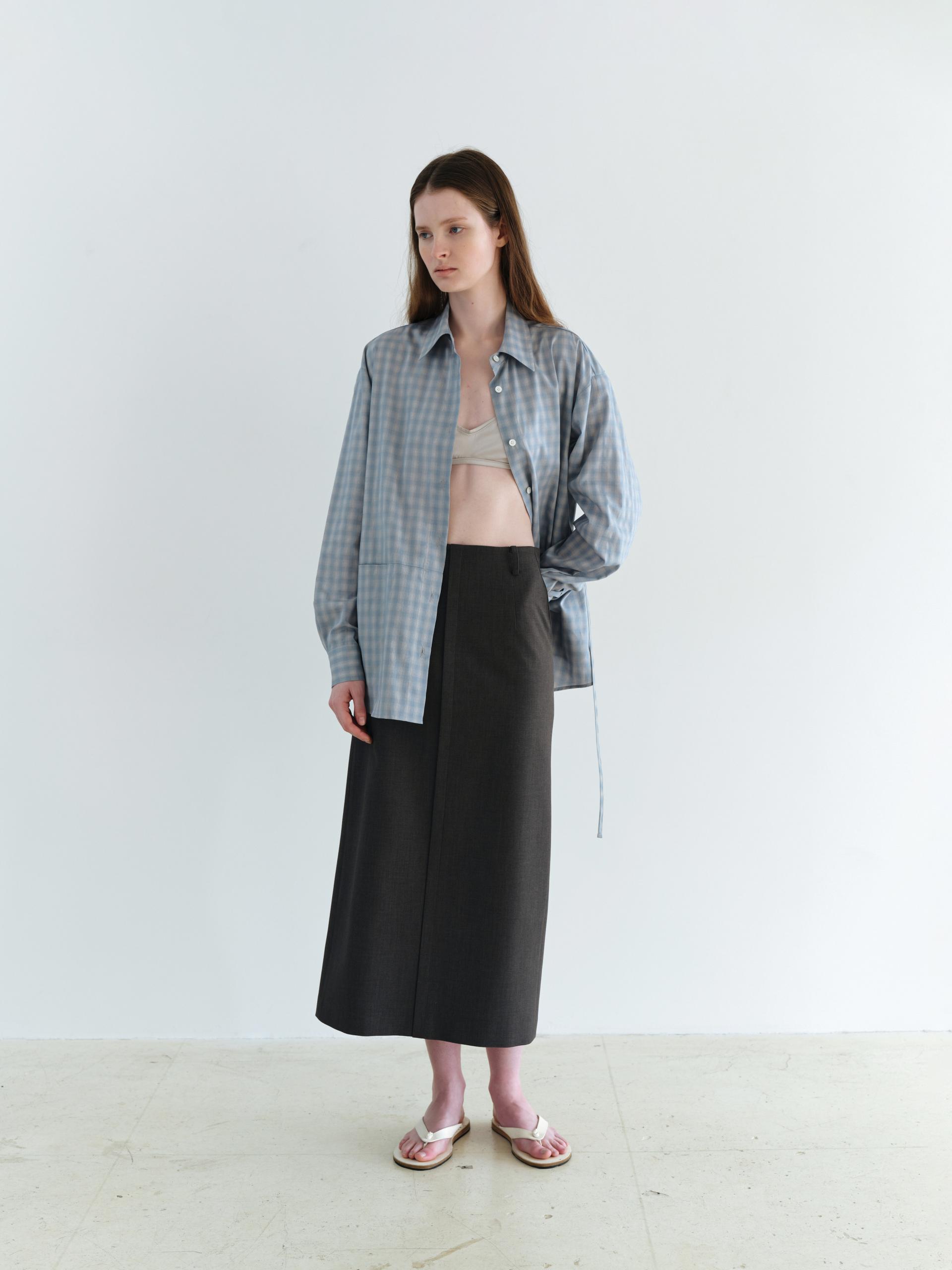 ease belted shirt (check blue)
