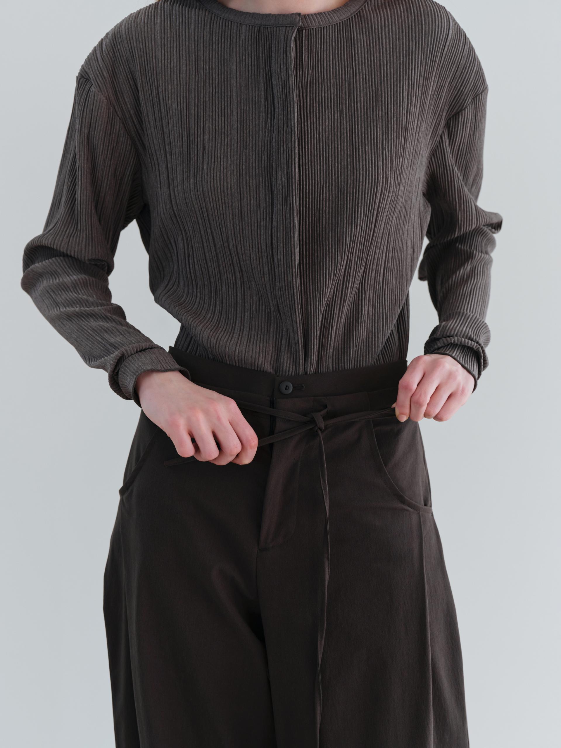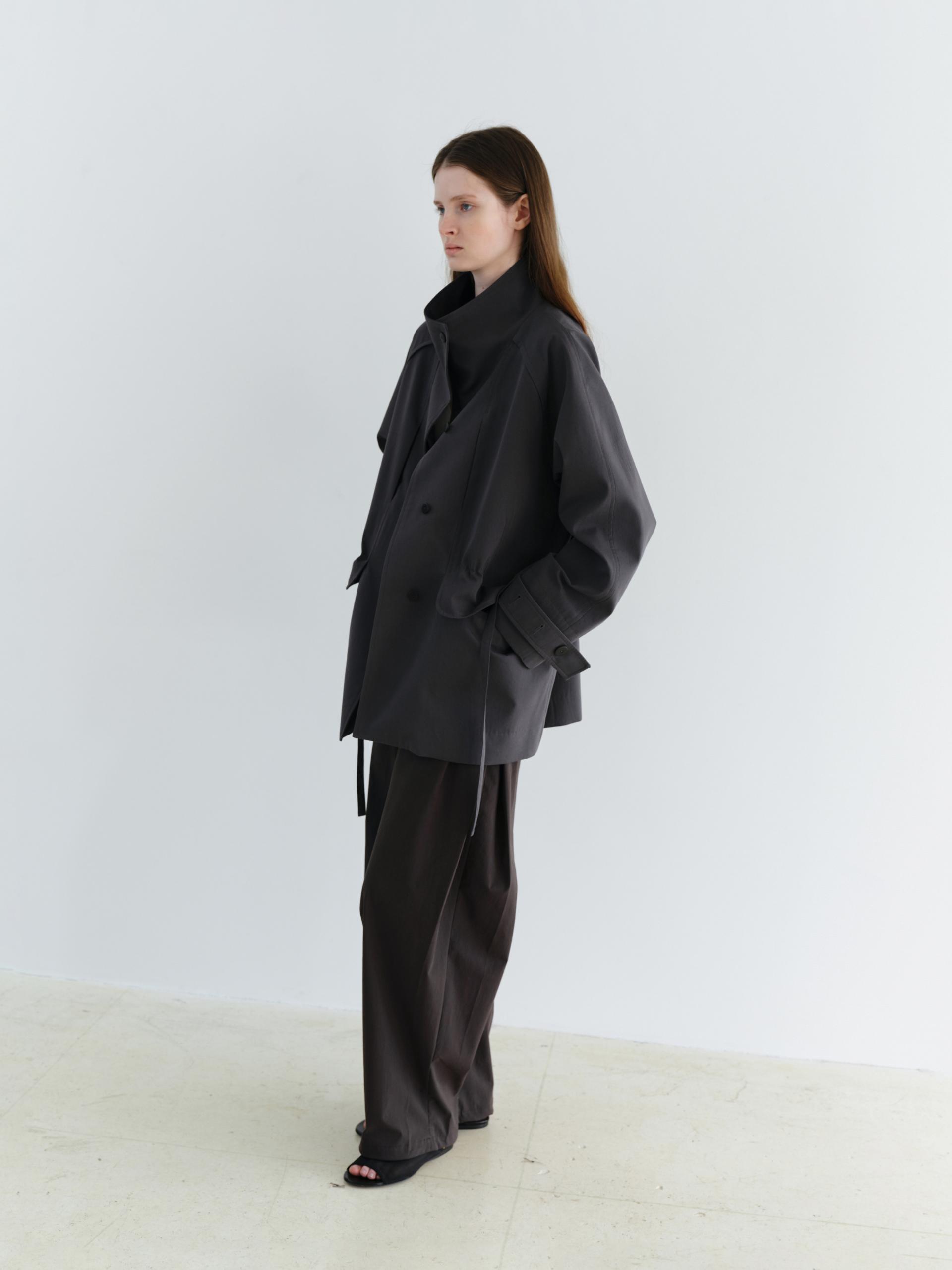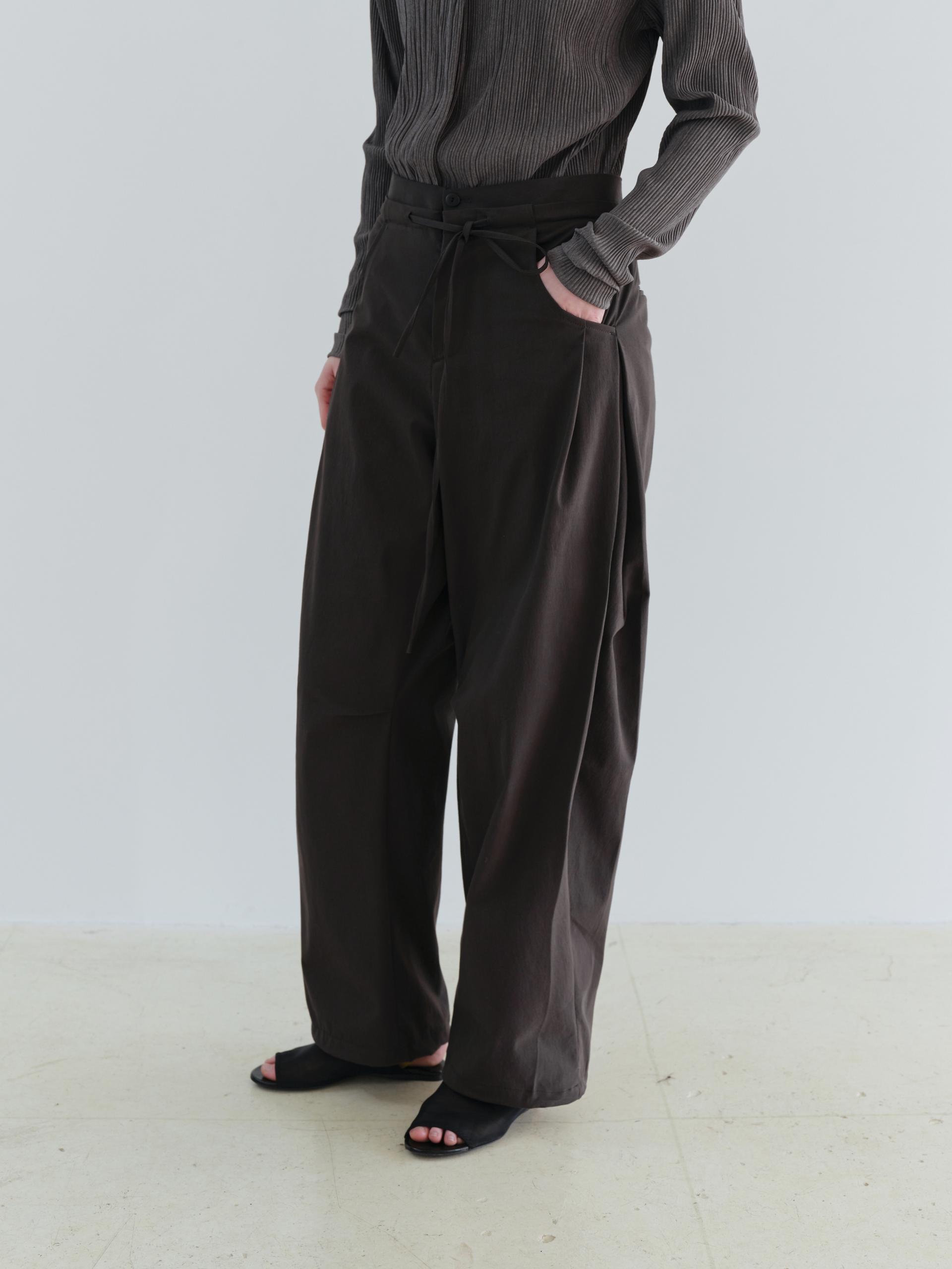 - 이중 허리 패널 구조를 적용해 상단에 단차와 레이어를 형성한 팬츠입니다.