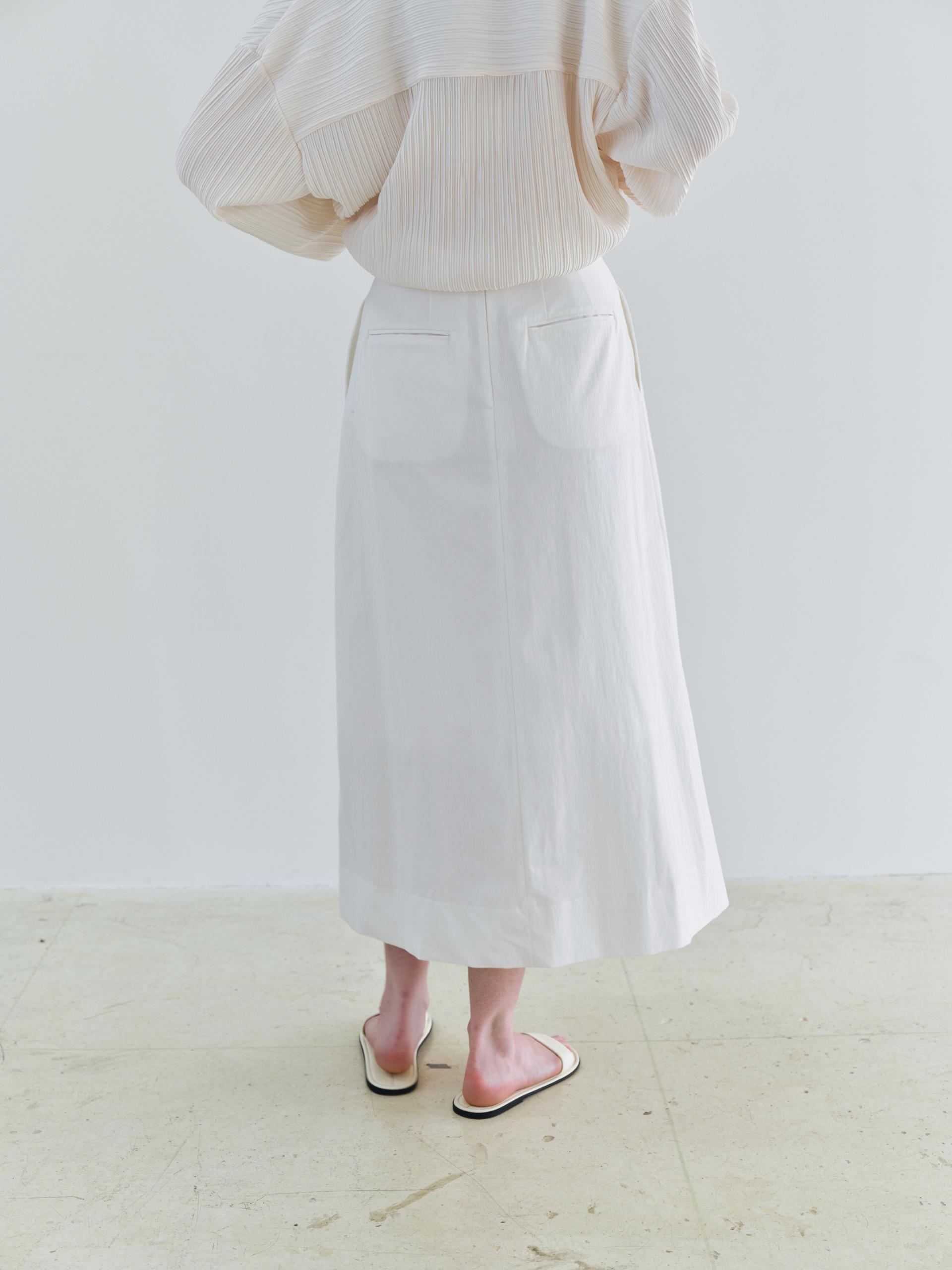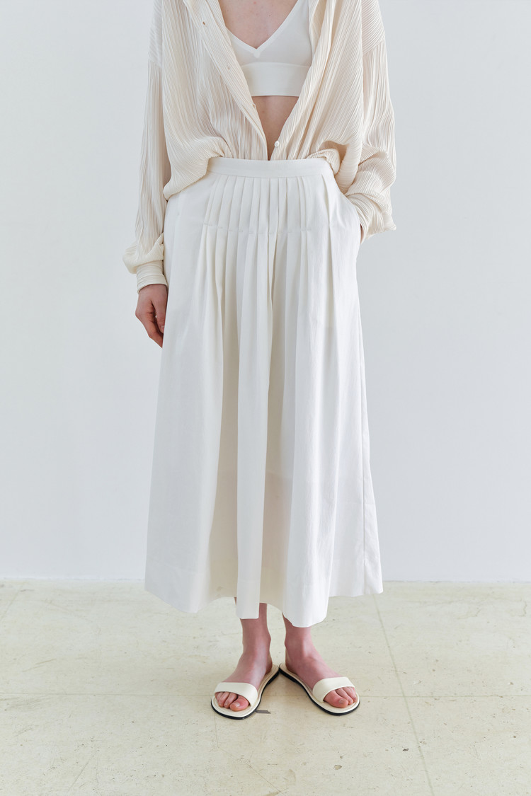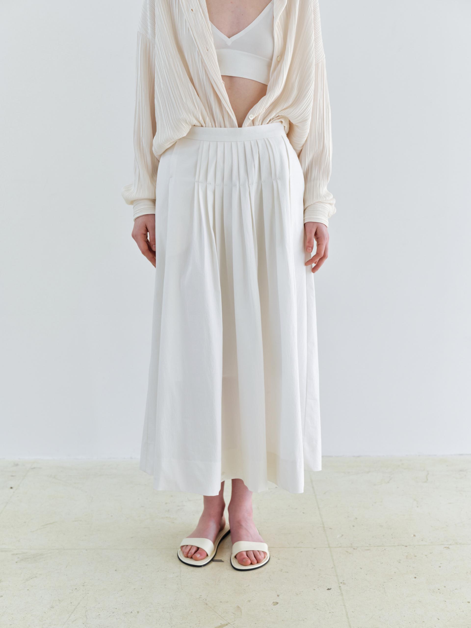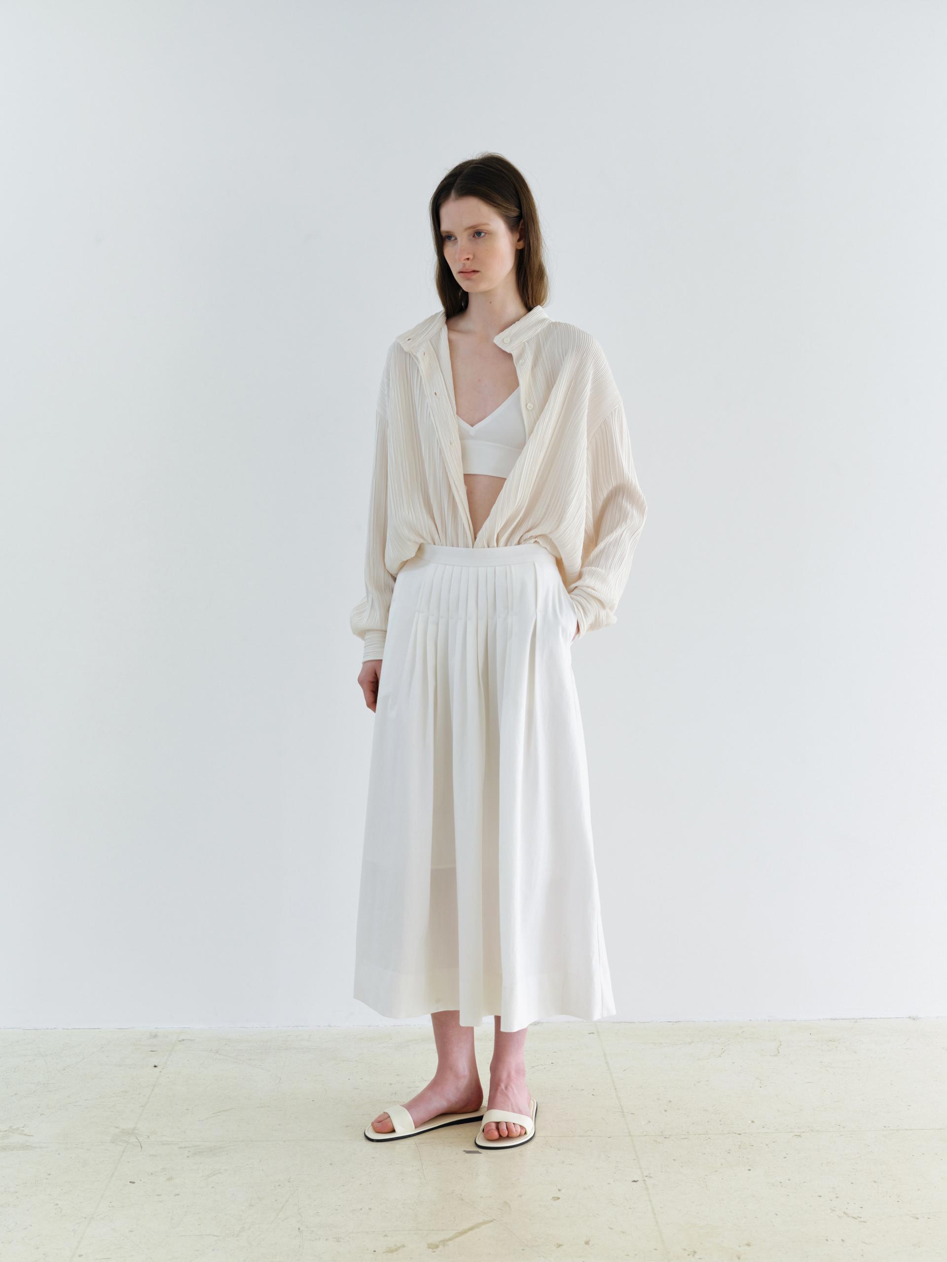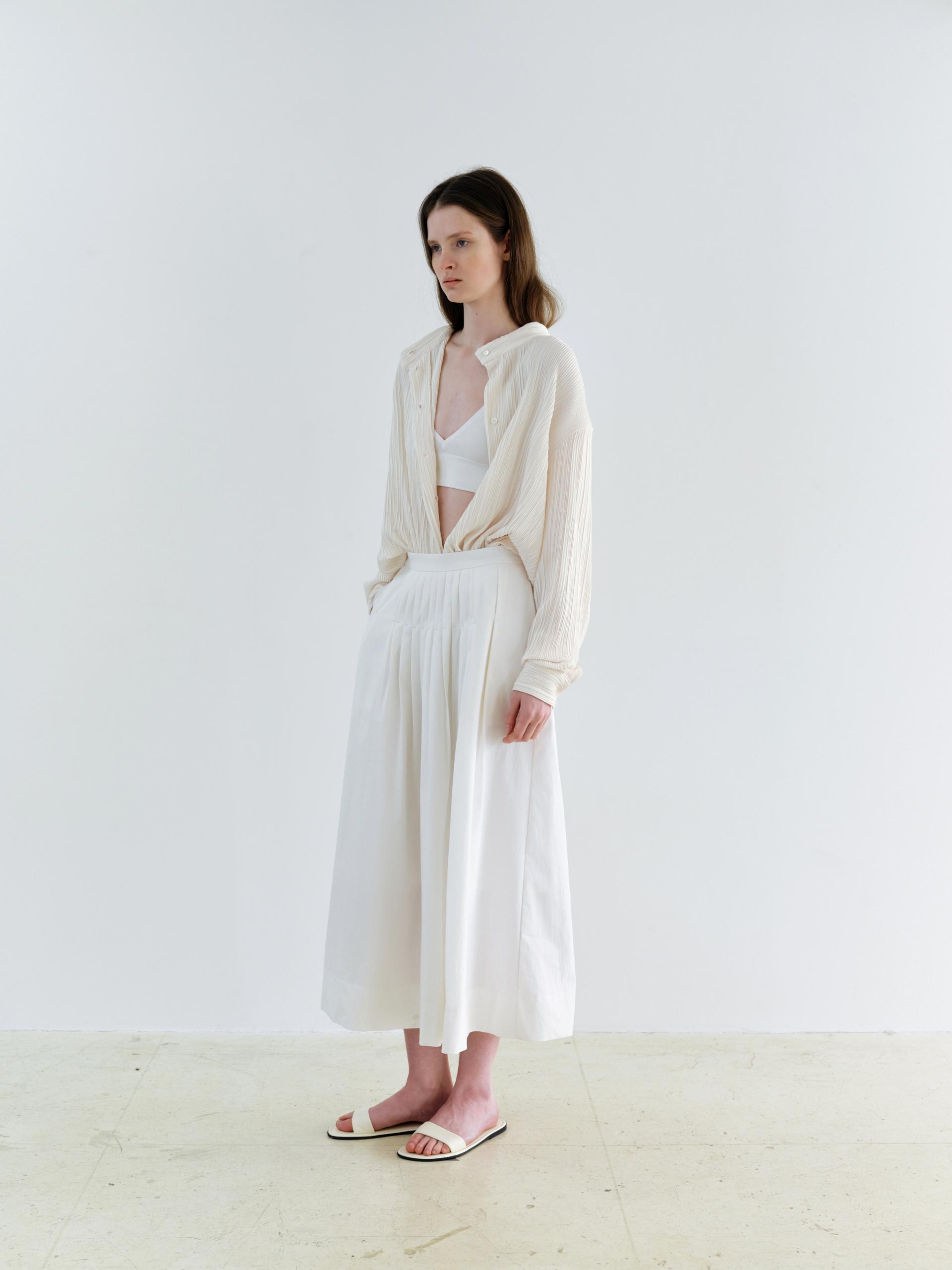 - 각기 다른 폭의 주름을 배치해 변주를 더한 스커트입니다.