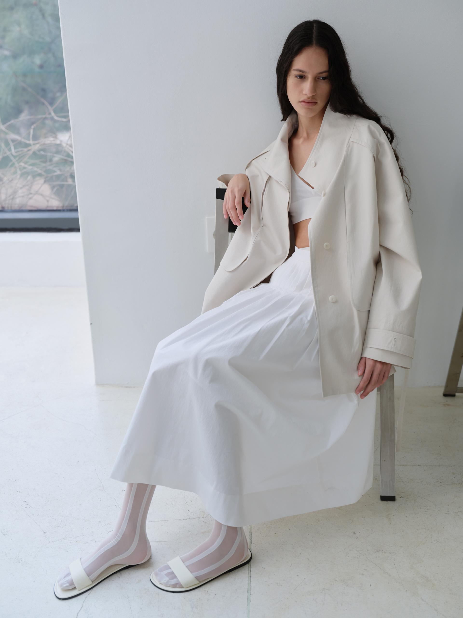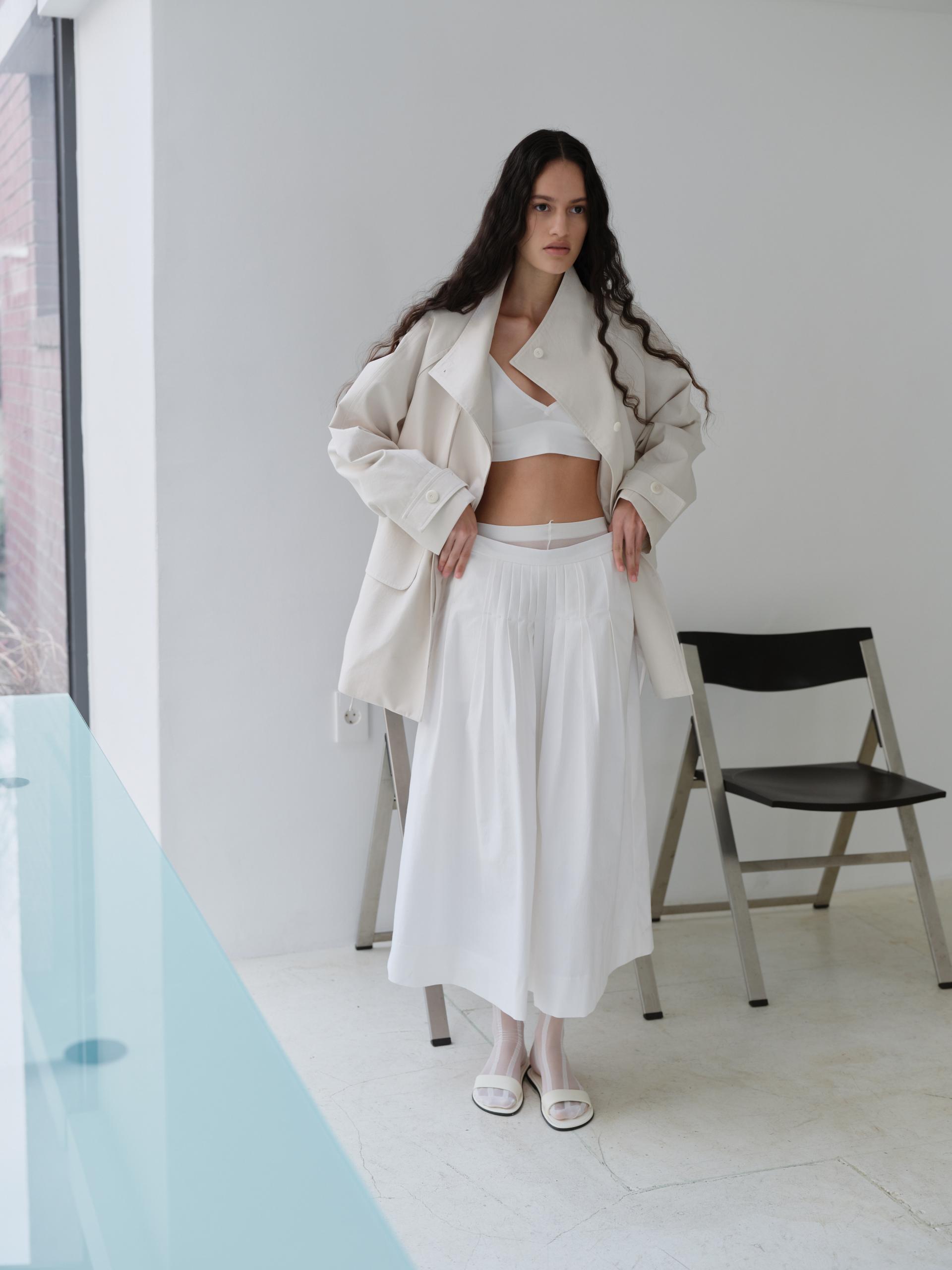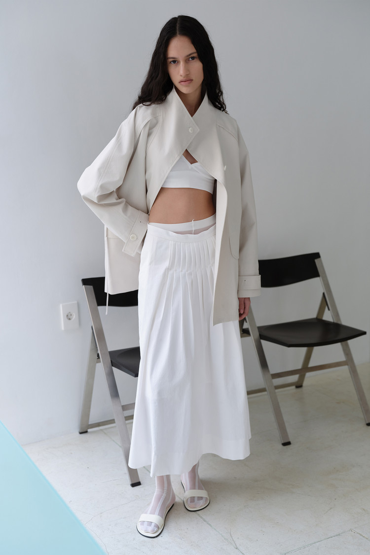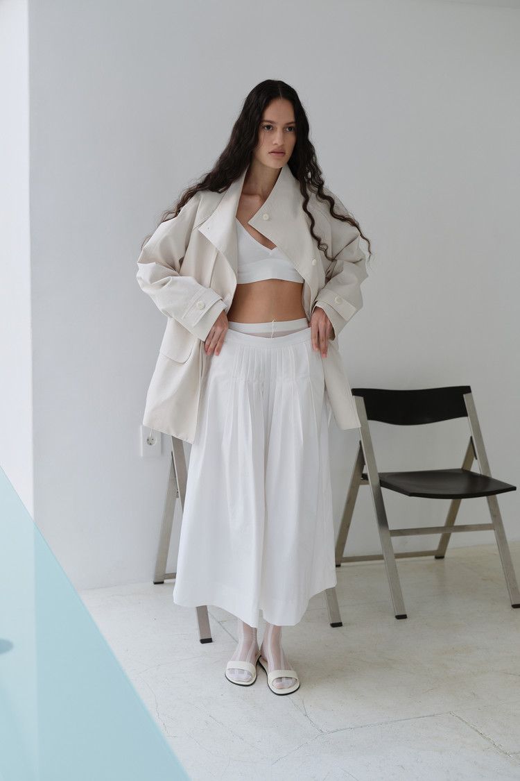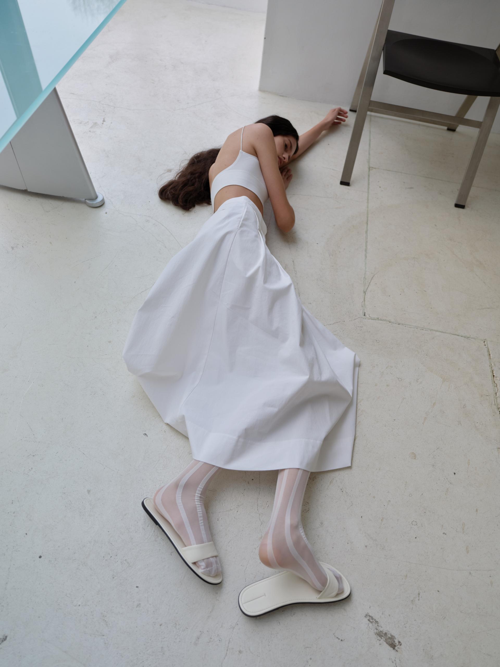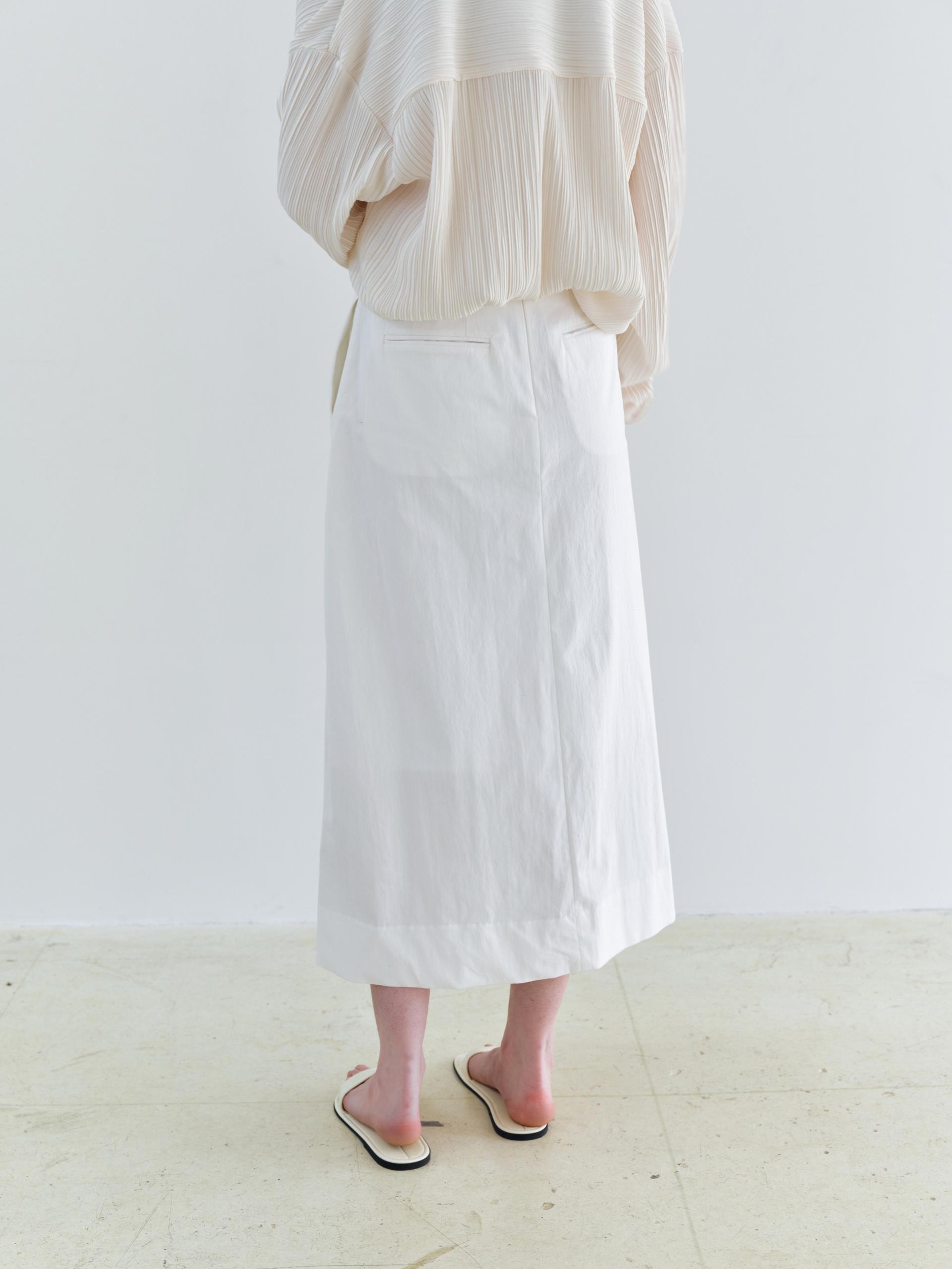 - 각기 다른 폭의 주름을 배치해 변주를 더한 스커트입니다.