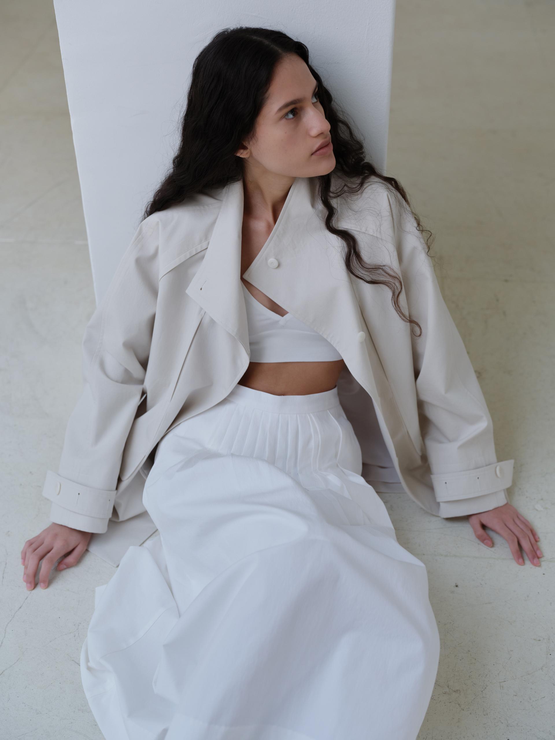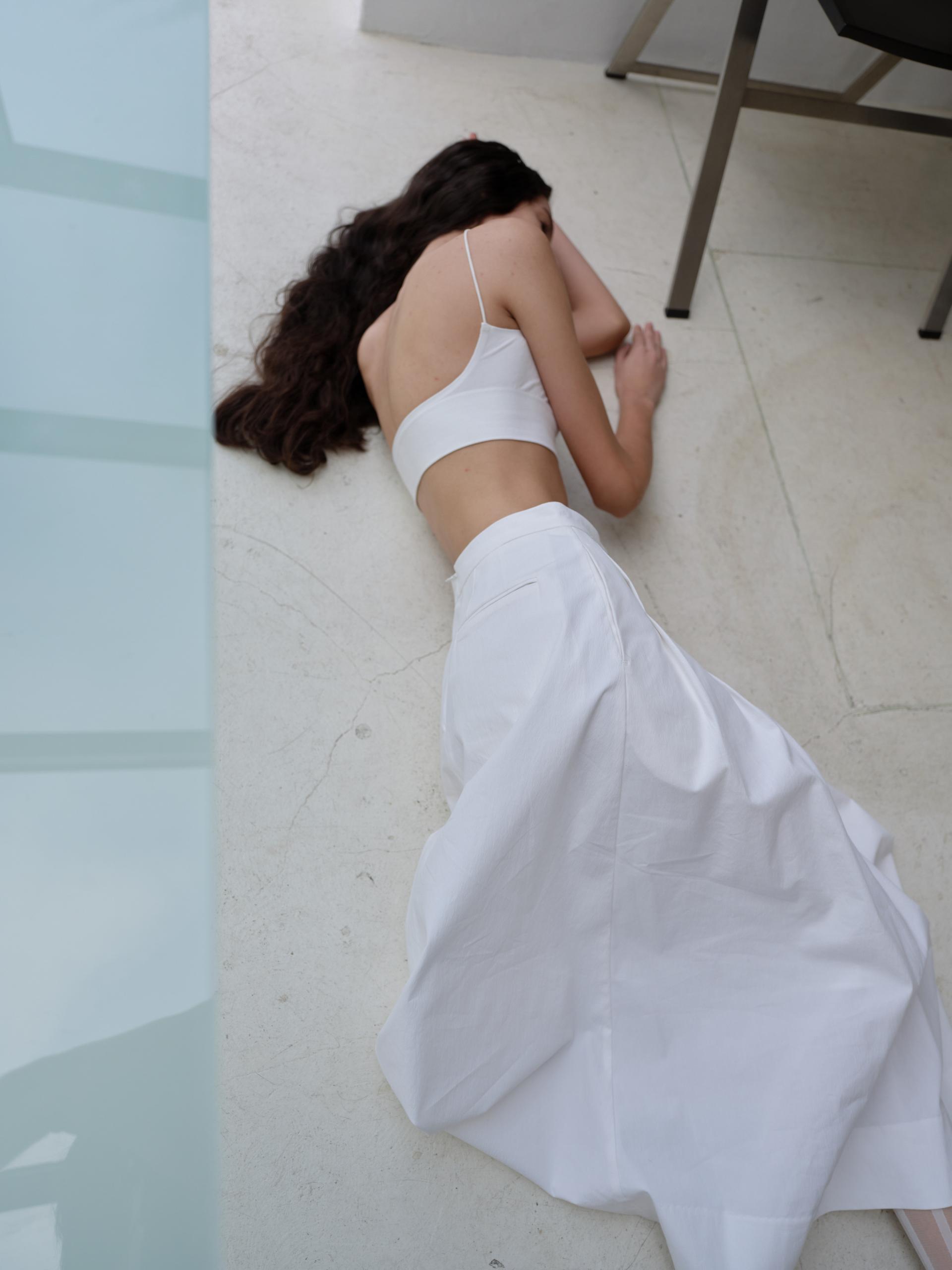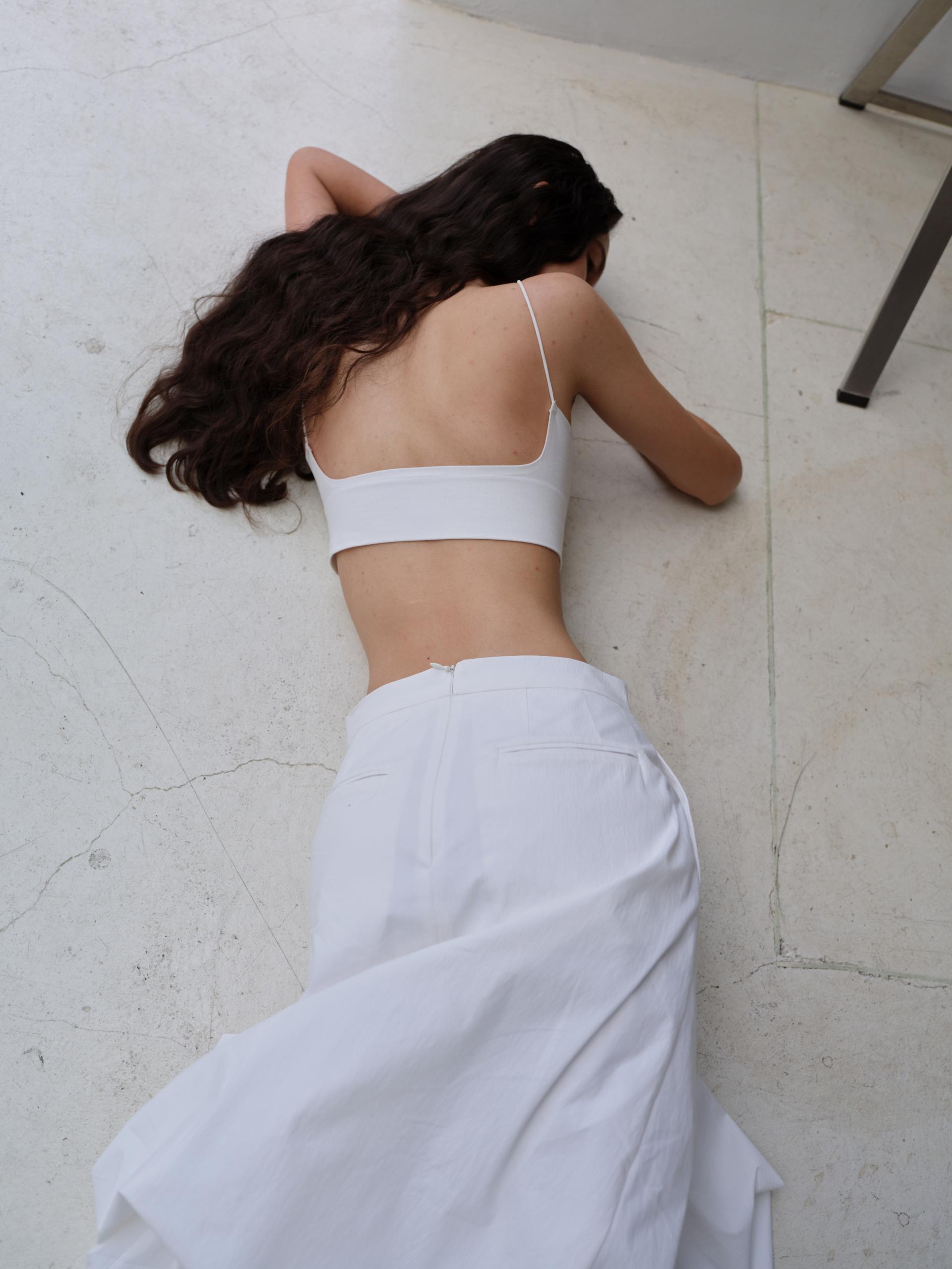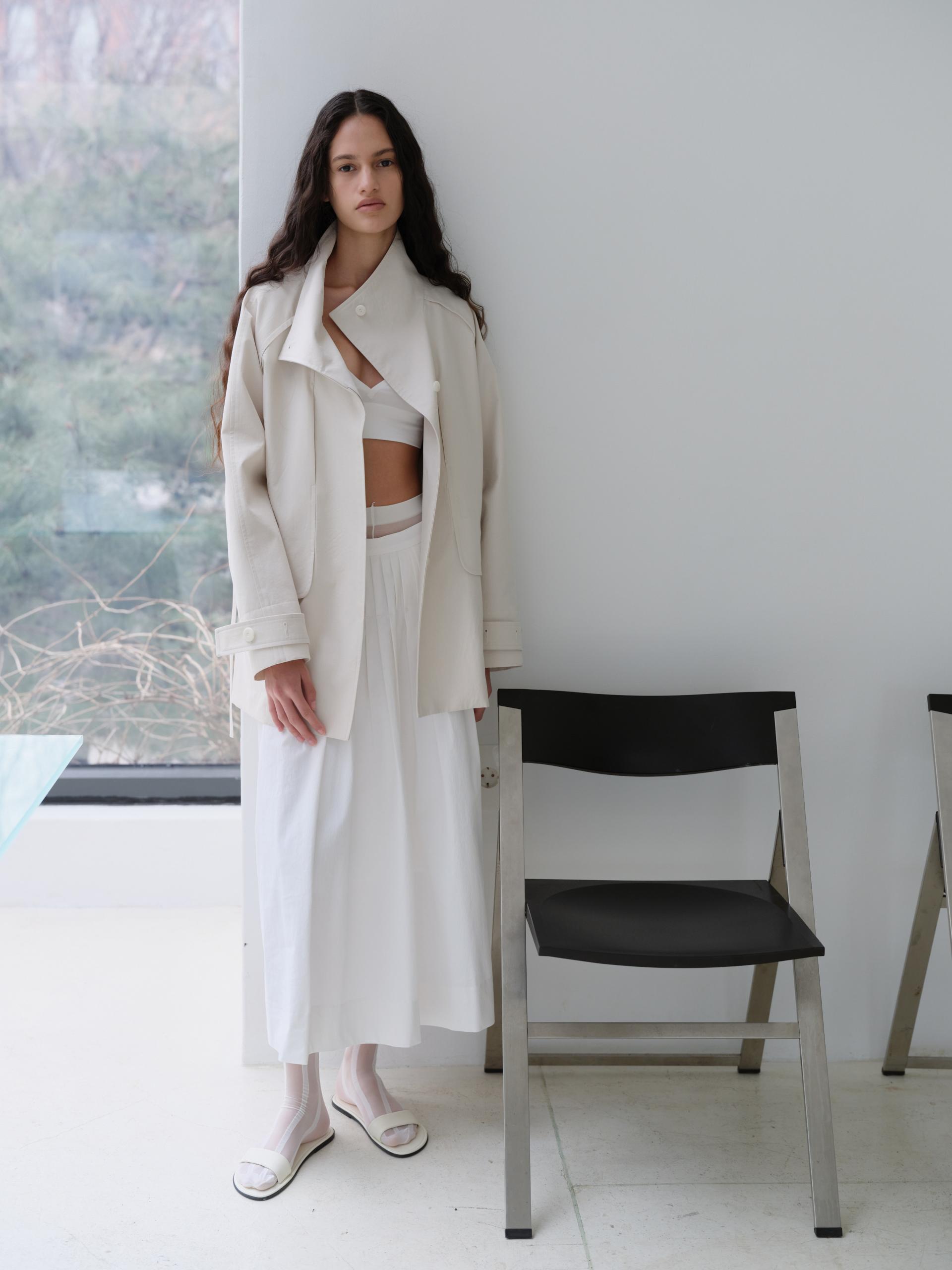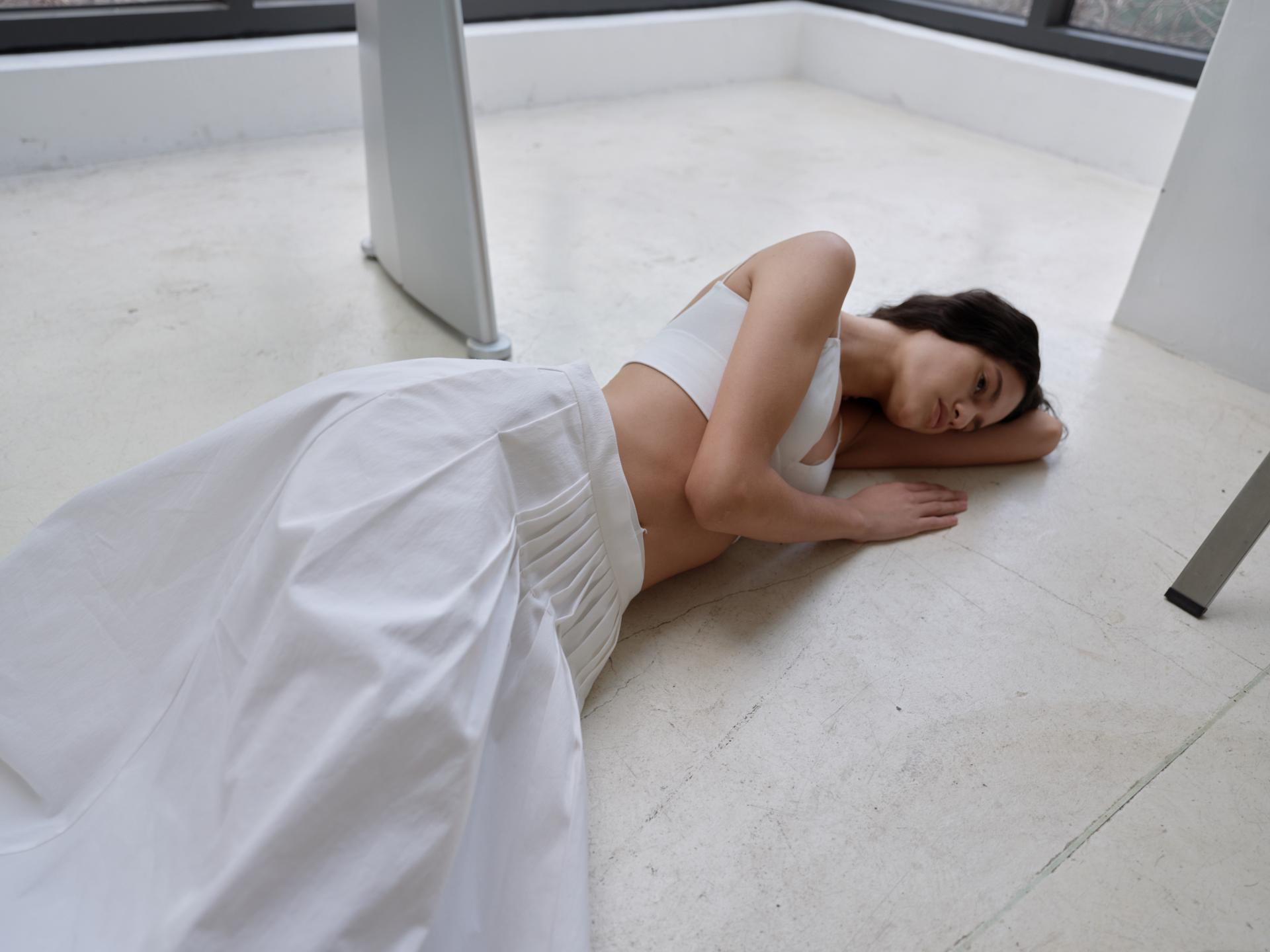 - 각기 다른 폭의 주름을 배치해 변주를 더한 스커트입니다.
